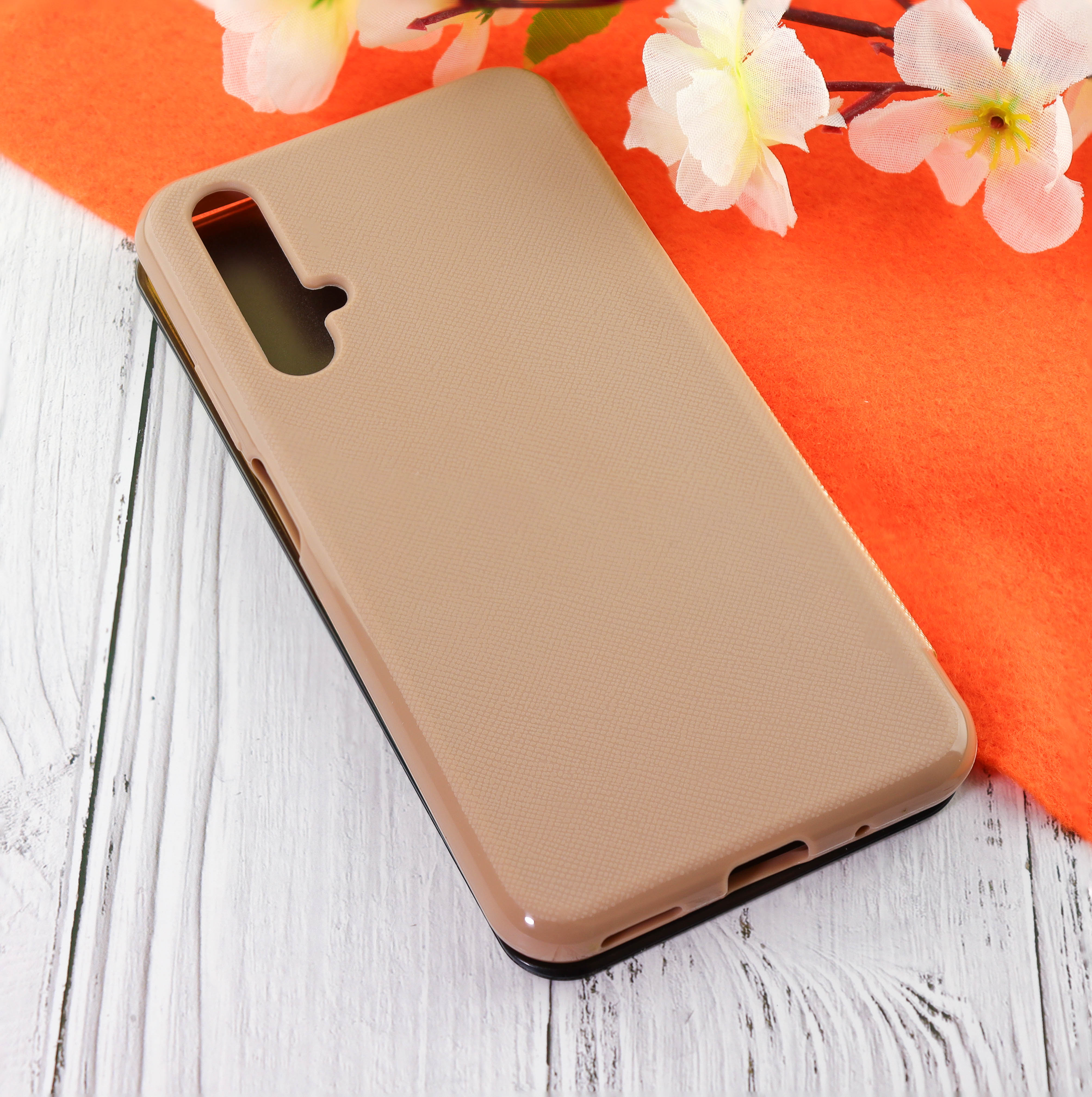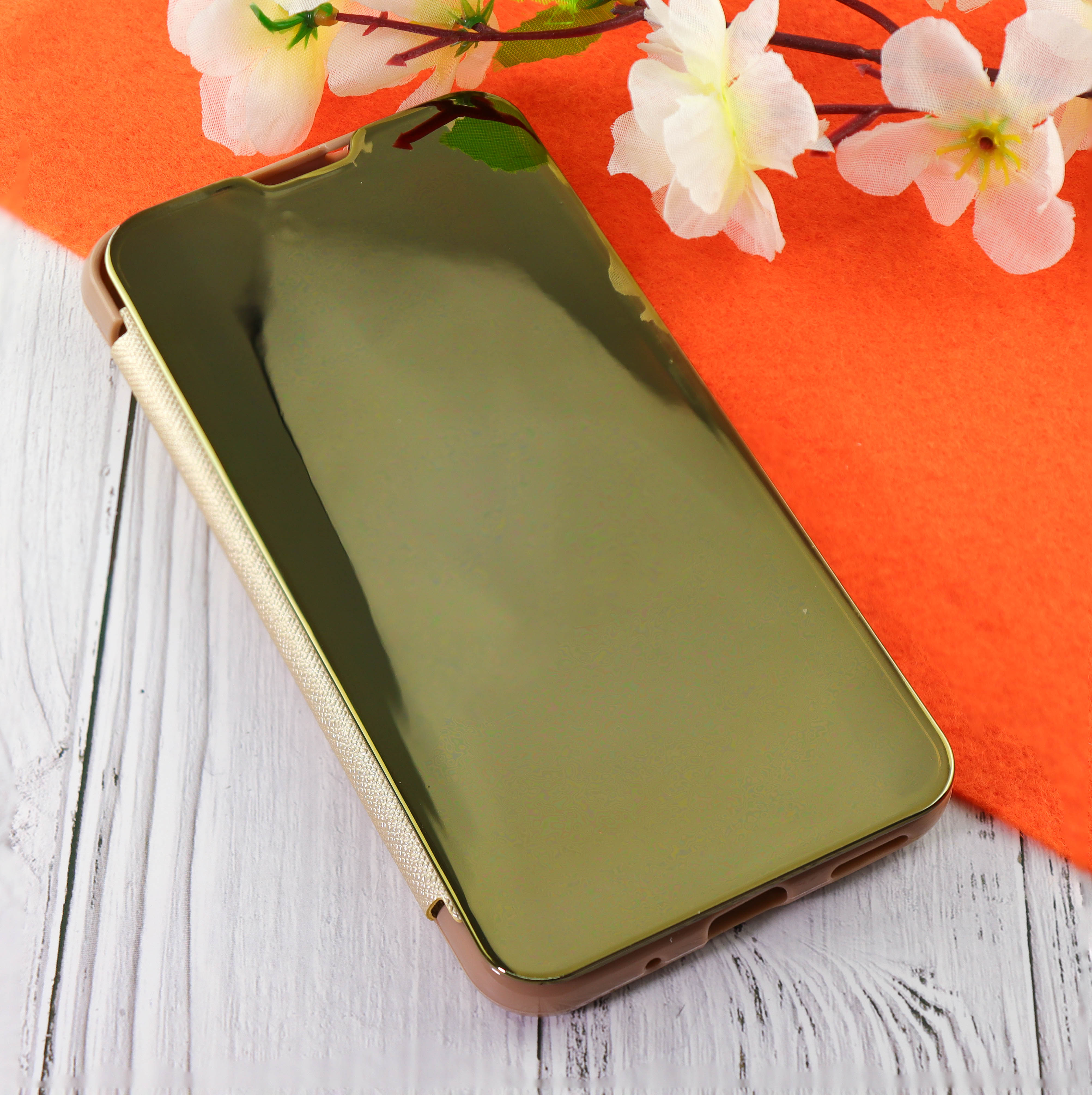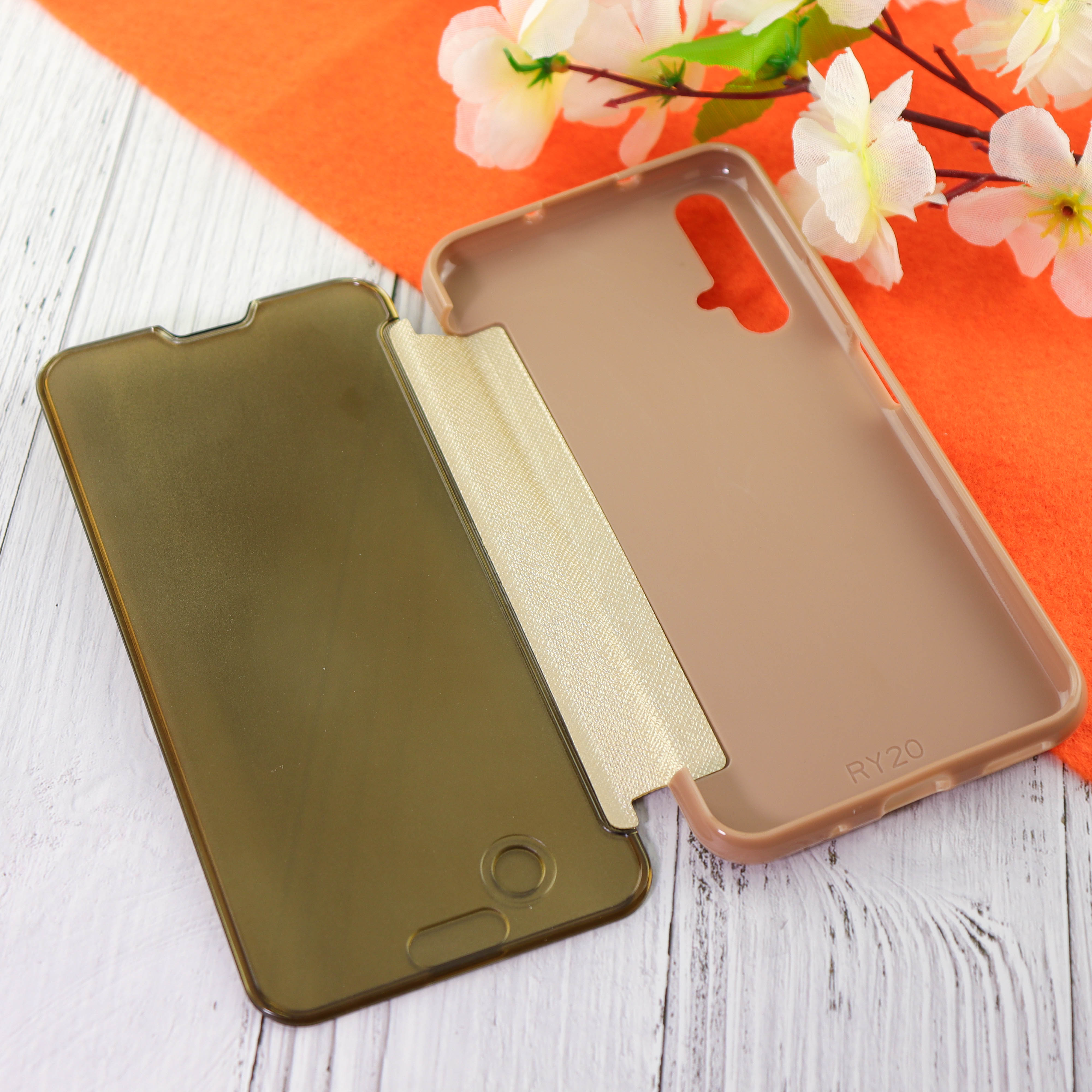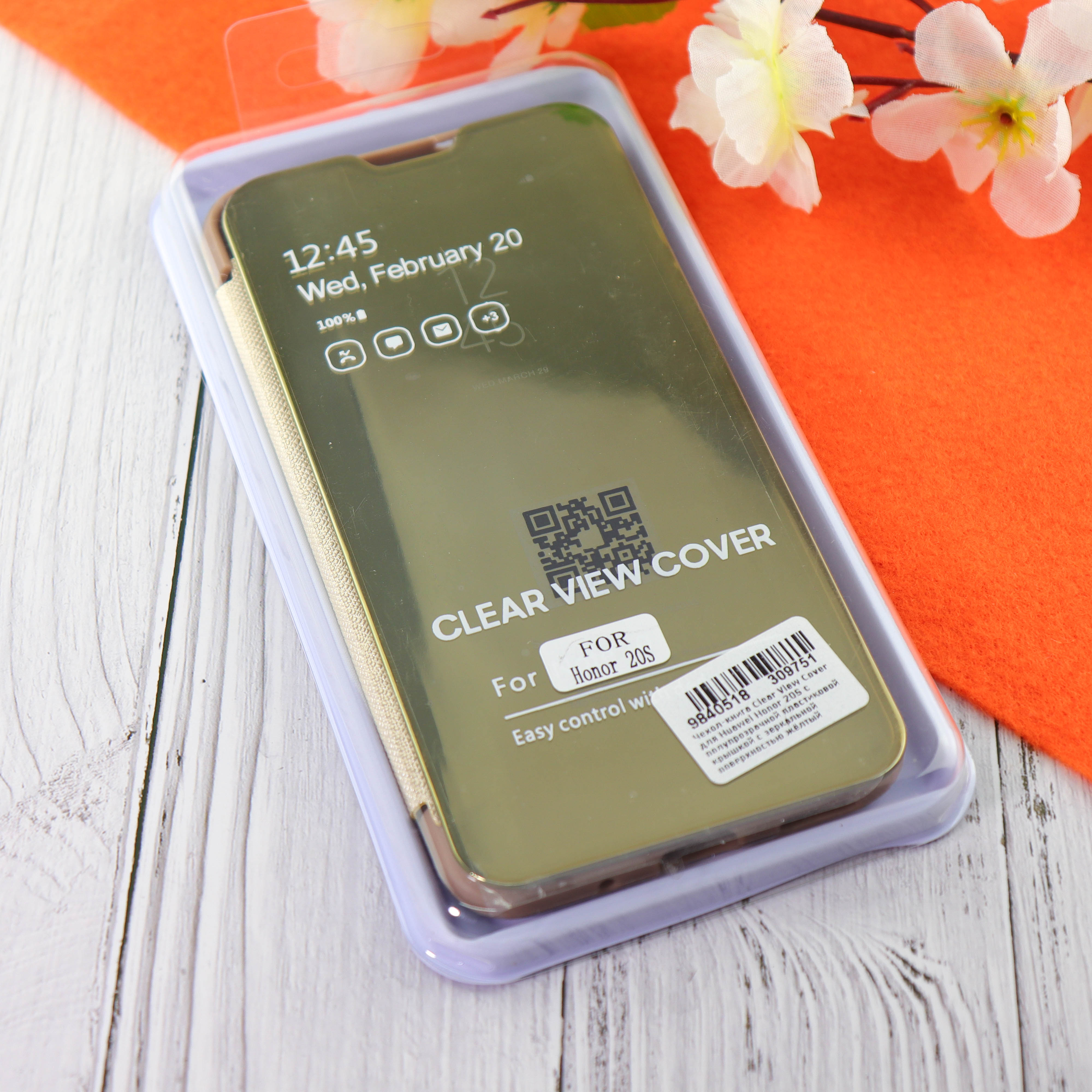 Чехол-книга Clear View Cover для Huawei Honor 20S с полупрозрачной пластиковой крышкой с зеркальной поверхностью жёлтый