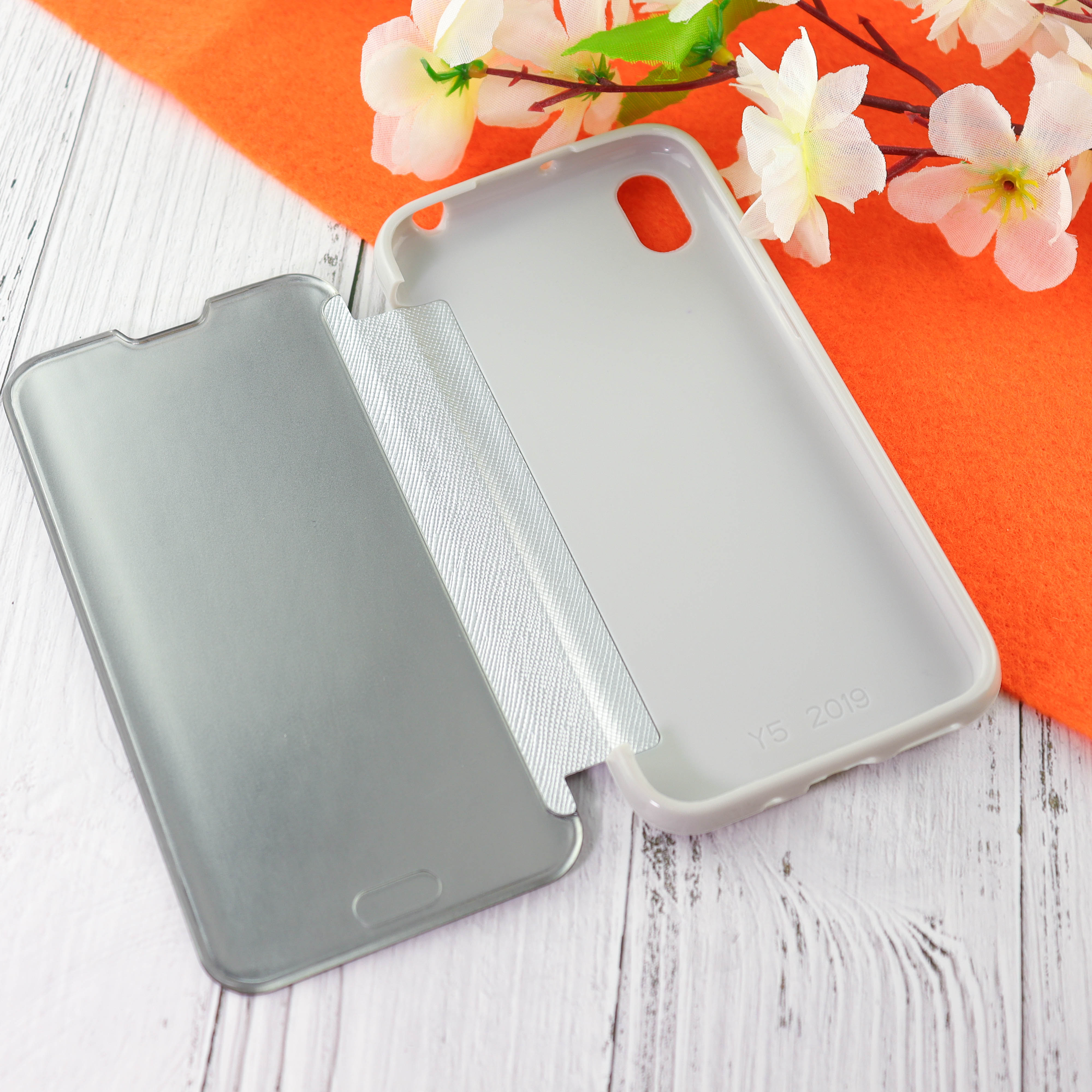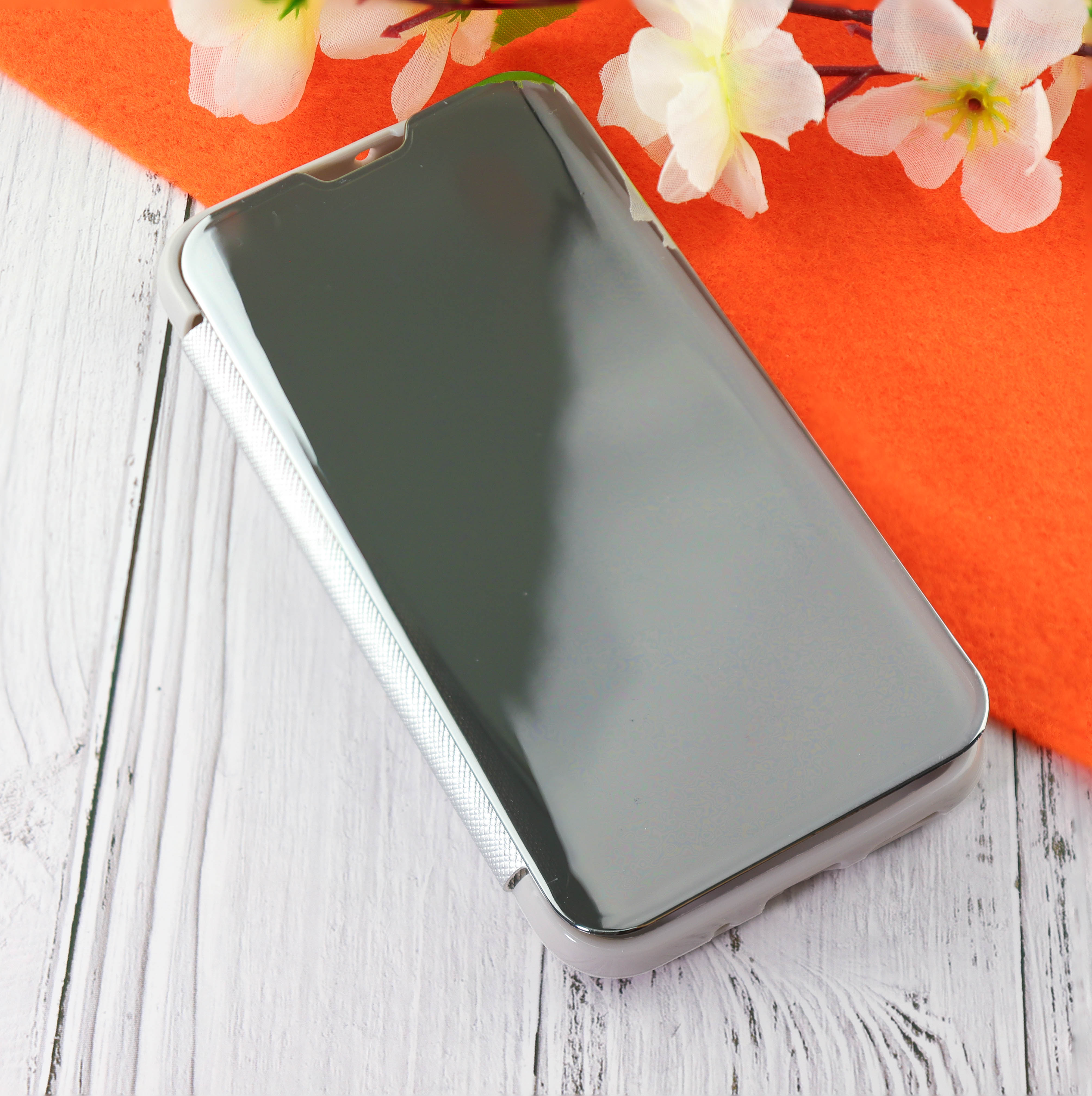 Чехол-книга Clear View Cover для Huawei Honor 8A с полупрозрачной пластиковой крышкой с зеркальной поверхностью серебряный