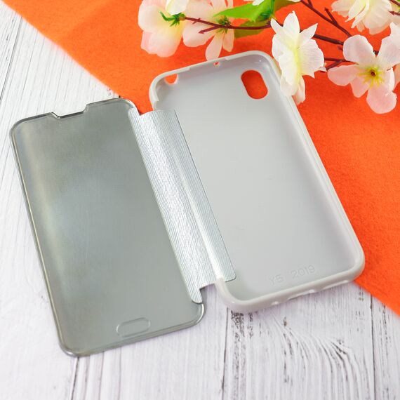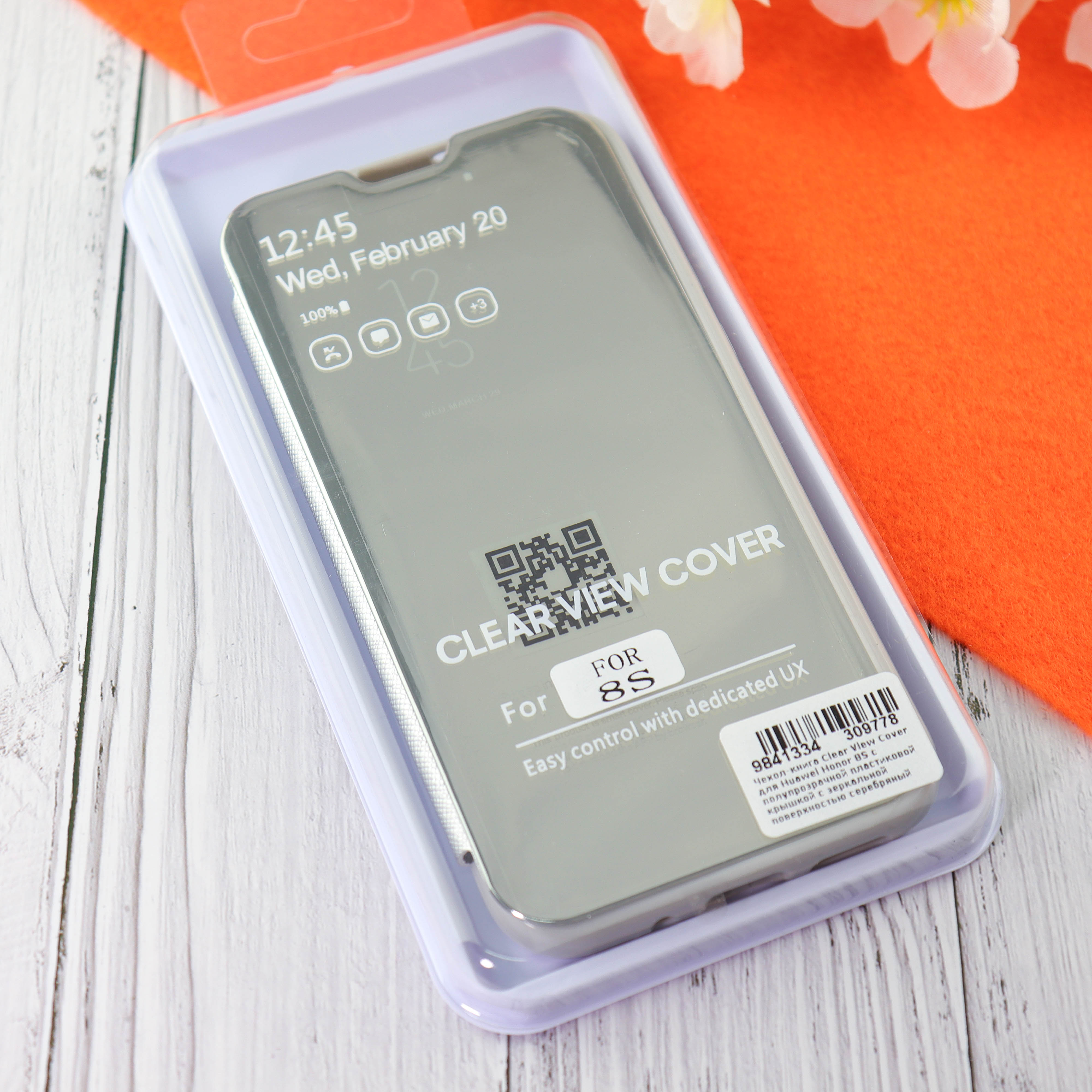 Чехол-книга Clear View Cover для Huawei Honor 8S с полупрозрачной пластиковой крышкой с зеркальной поверхностью серебряный