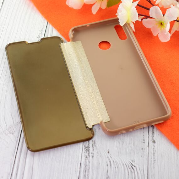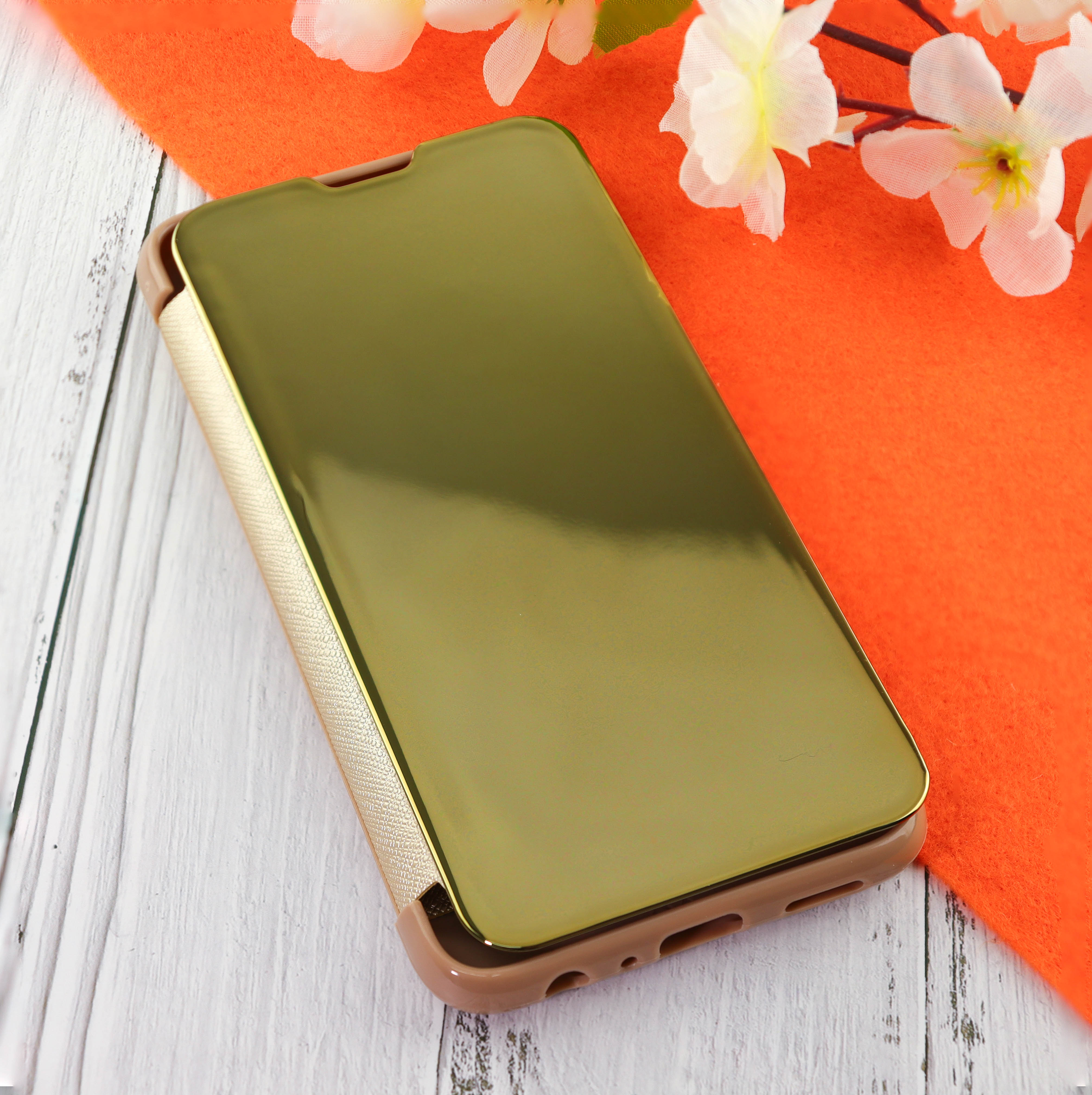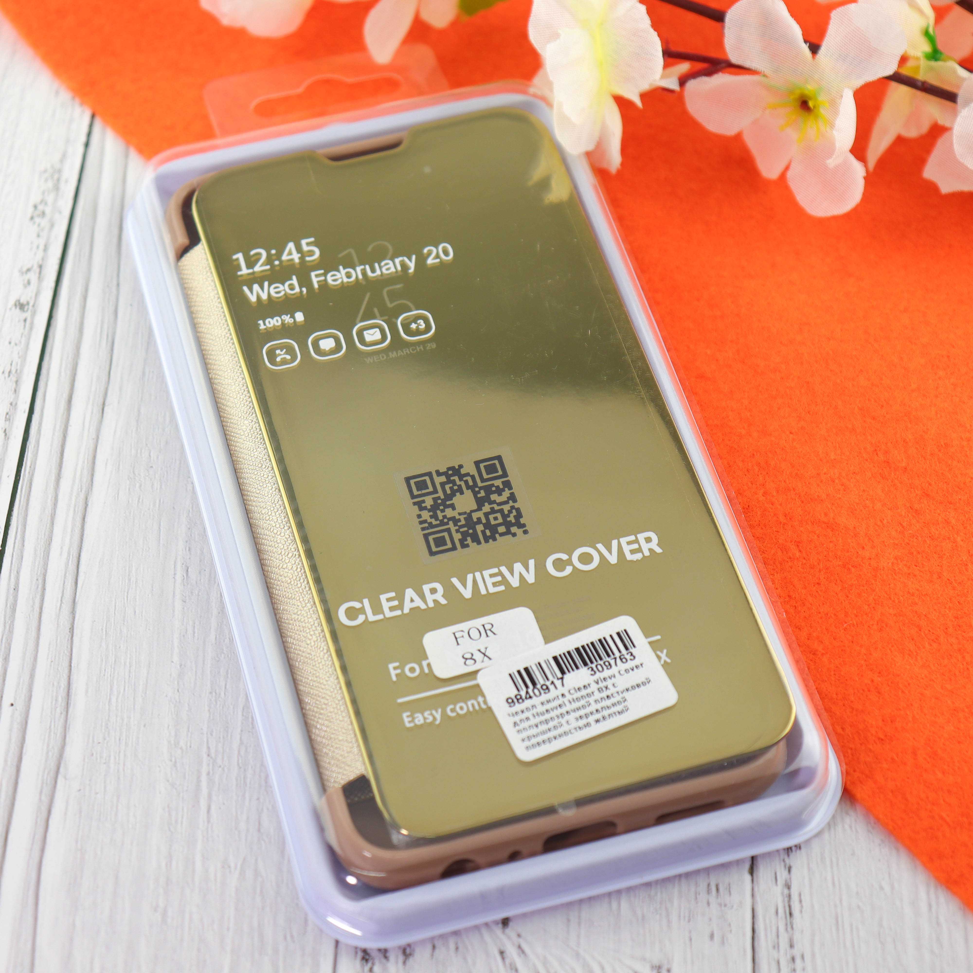 Чехол-книга Clear View Cover для Huawei Honor 8X с полупрозрачной пластиковой крышкой с зеркальной поверхностью жёлтый