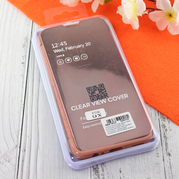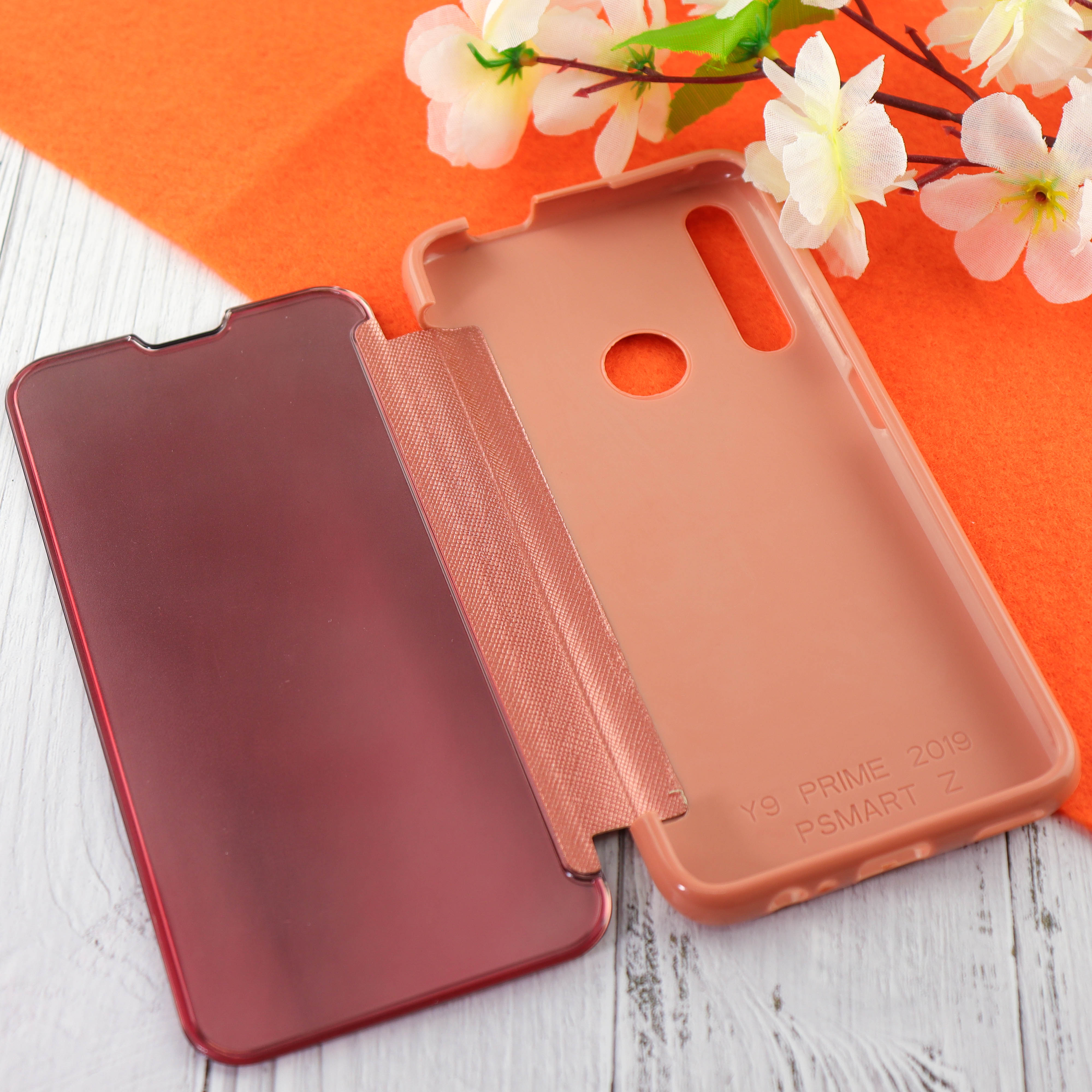Чехол-книга Clear View Cover для Huawei Honor 9X с полупрозрачной пластиковой крышкой с зеркальной поверхностью розовое золото