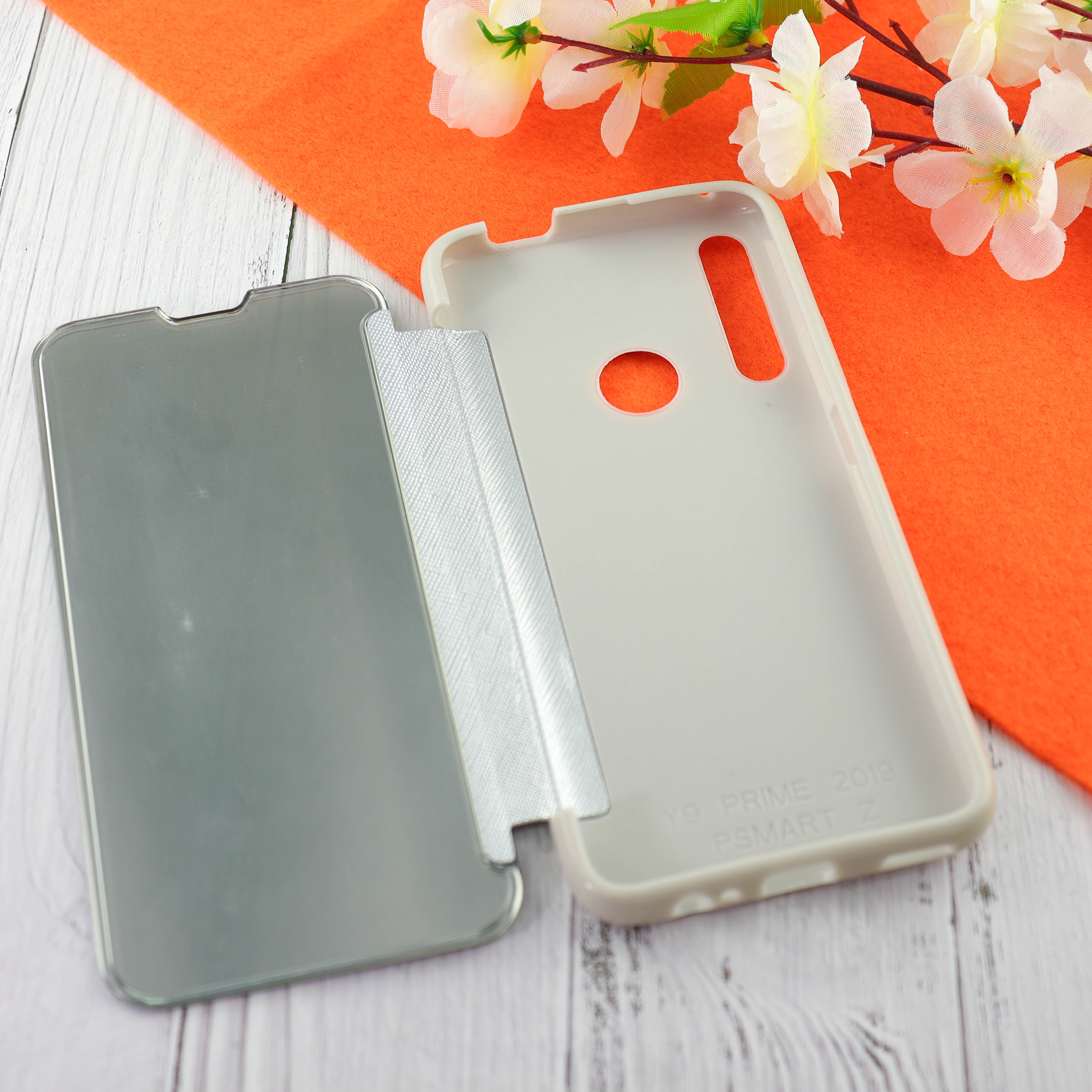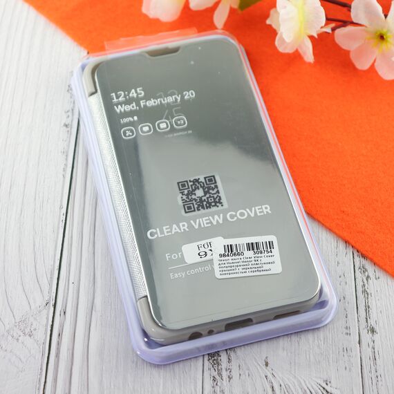 Чехол-книга Clear View Cover для Huawei Honor 9X с полупрозрачной пластиковой крышкой с зеркальной поверхностью серебряный