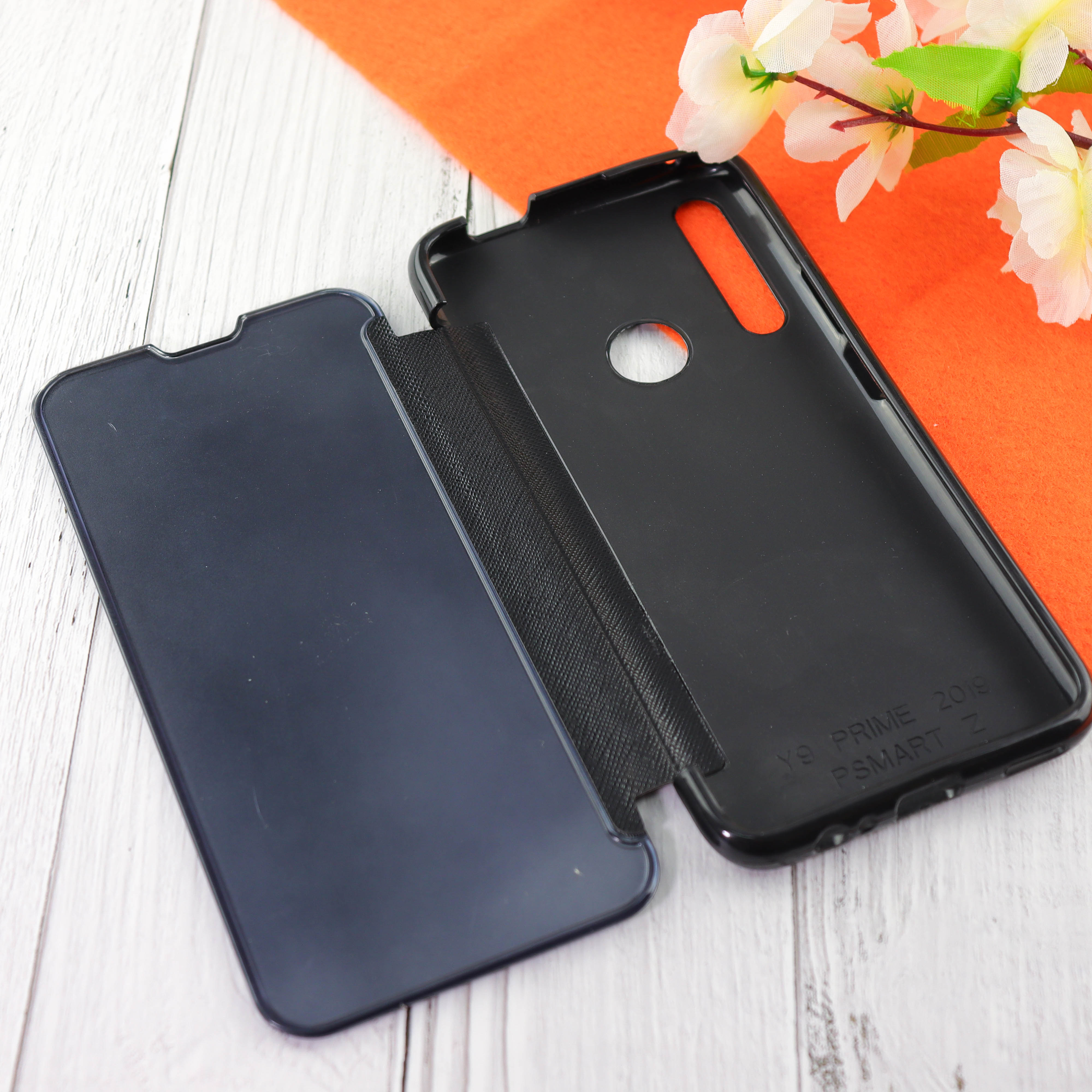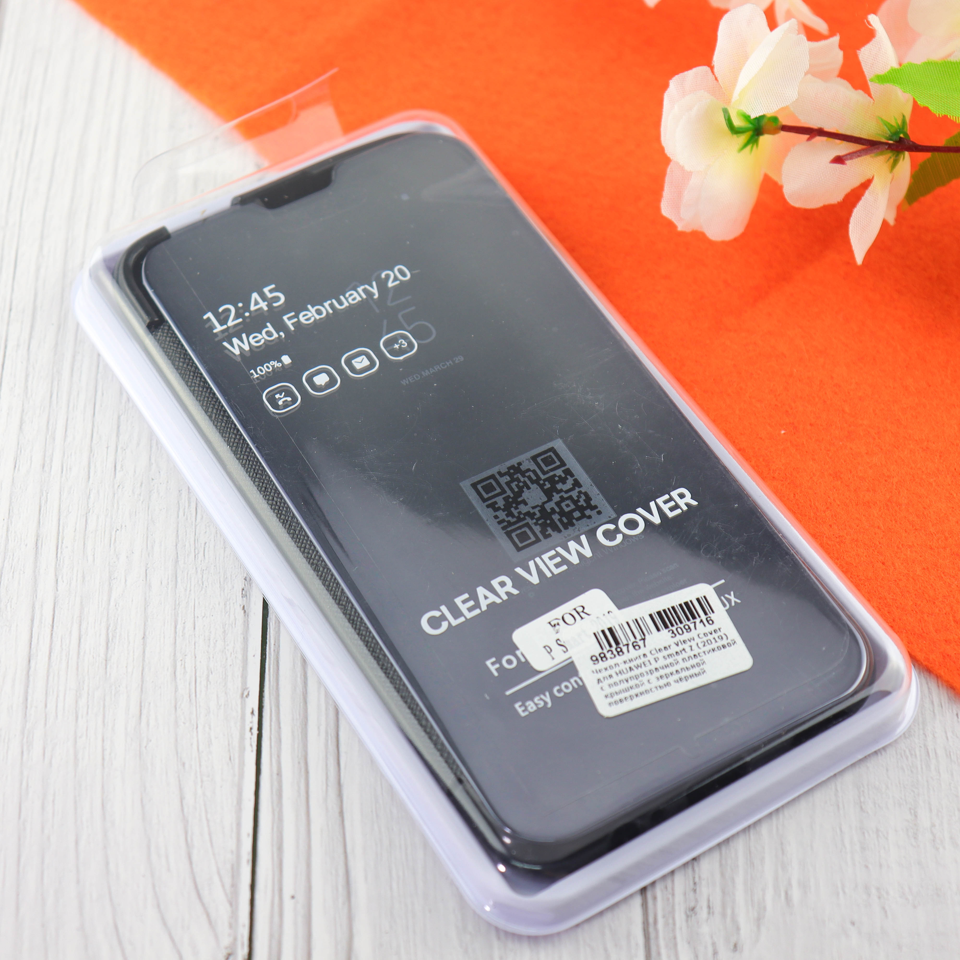 Чехол-книга Clear View Cover для HUAWEI P smart Z (2019) с полупрозрачной пластиковой крышкой с зеркальной поверхностью чёрный