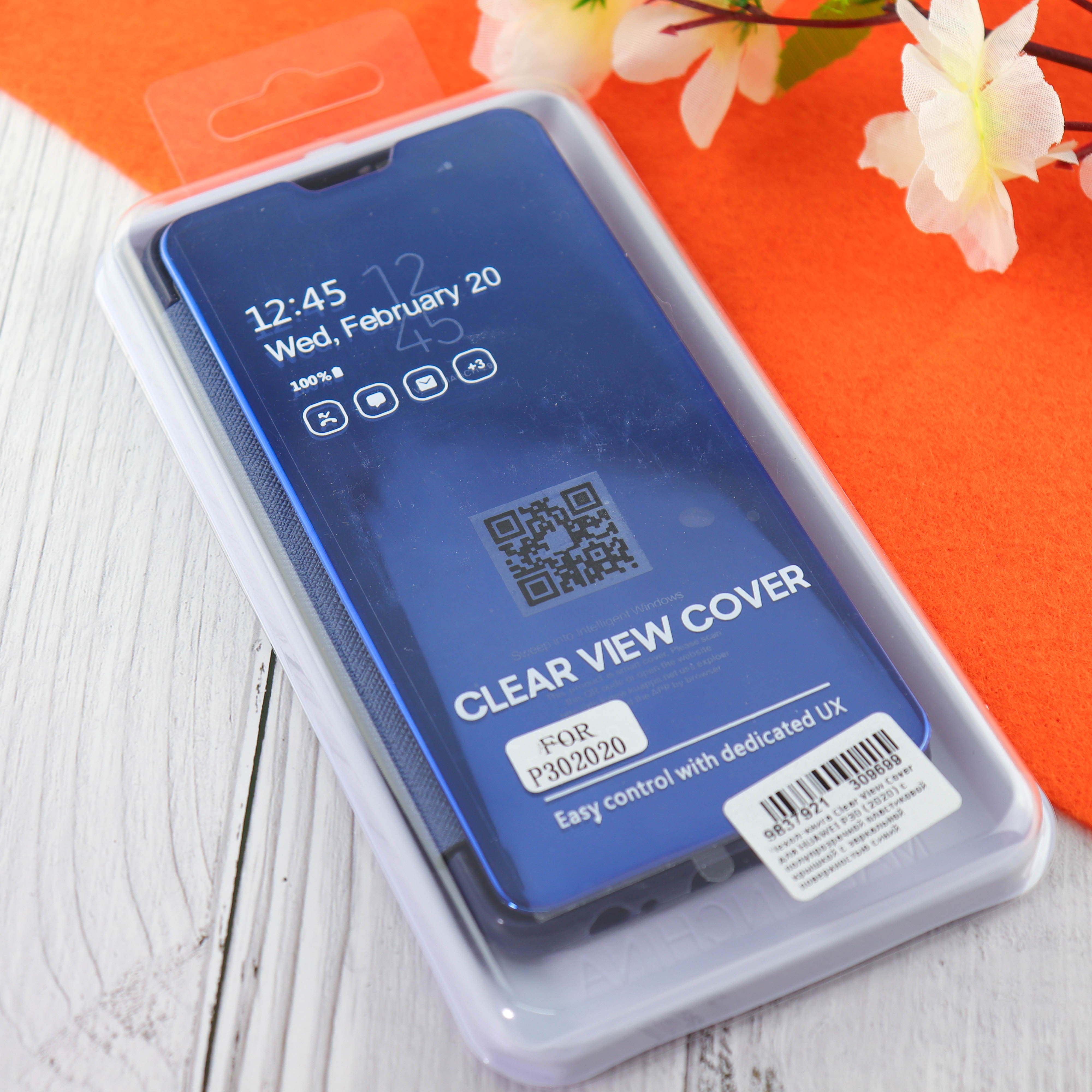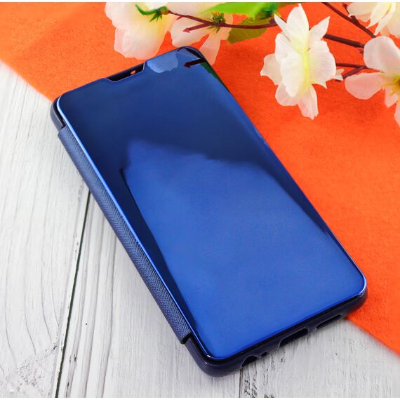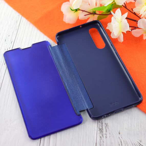 Чехол-книга Clear View Cover для HUAWEI P30 (2020) с полупрозрачной пластиковой крышкой с зеркальной поверхностью синий