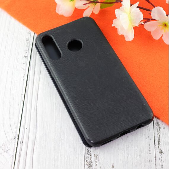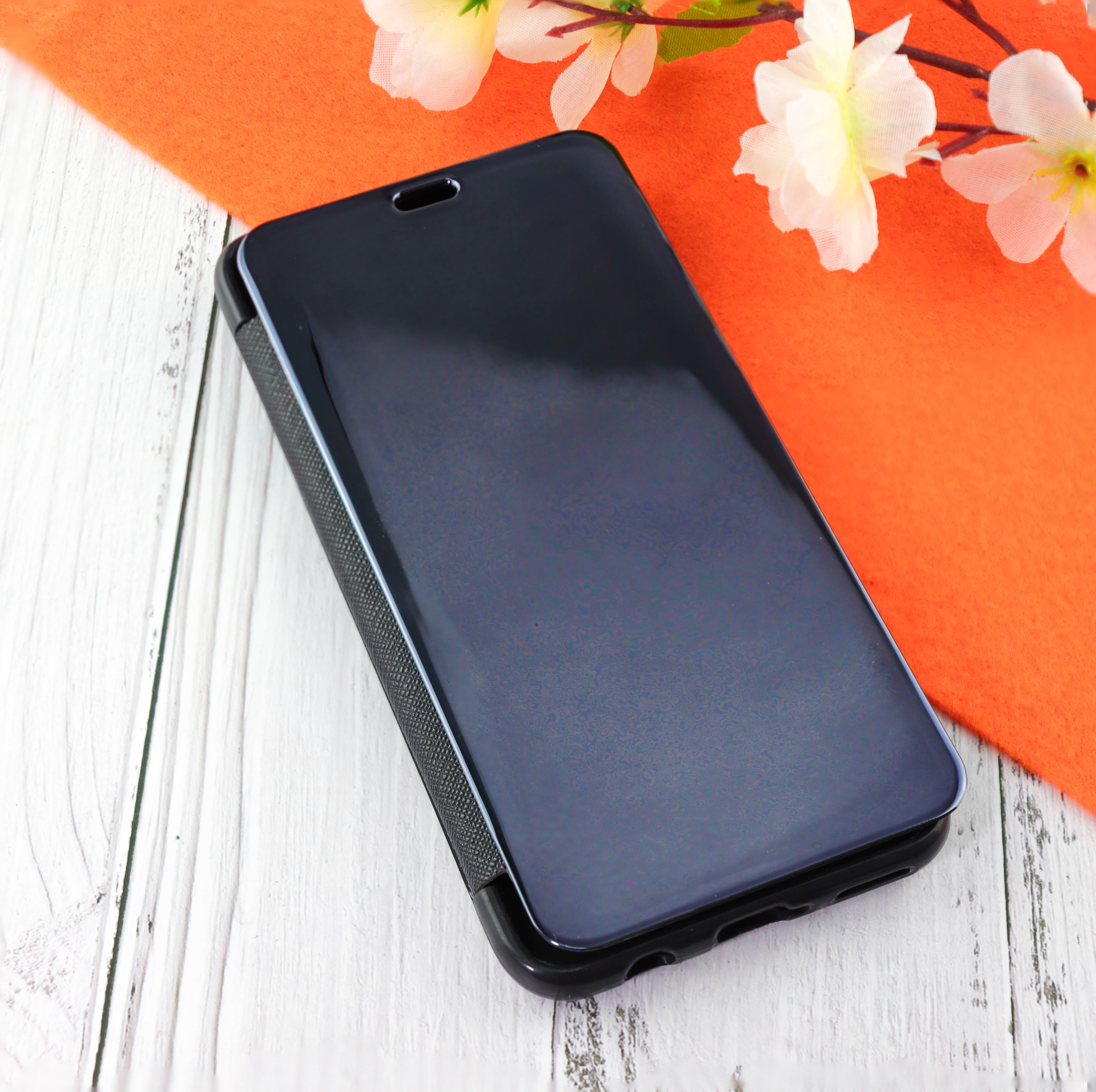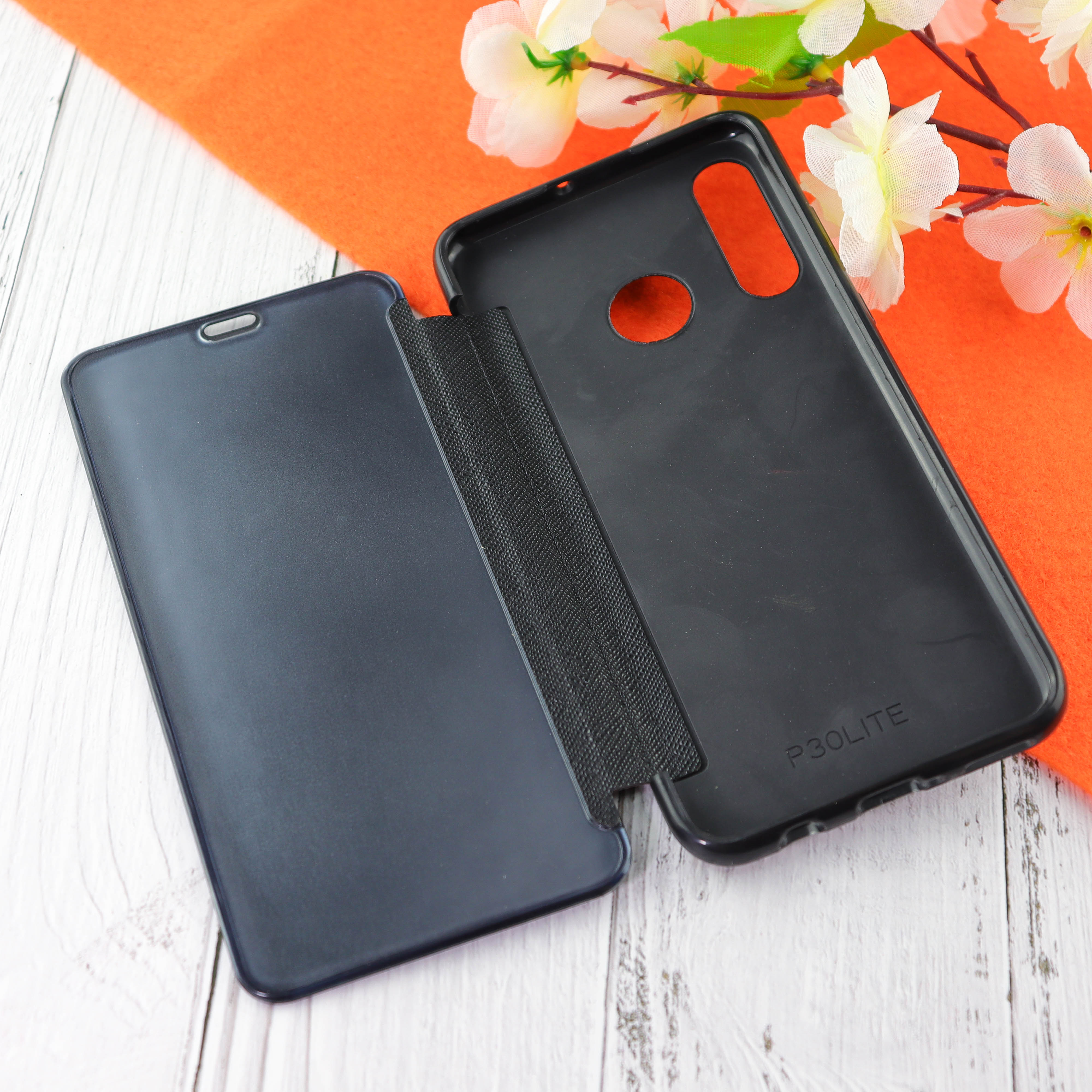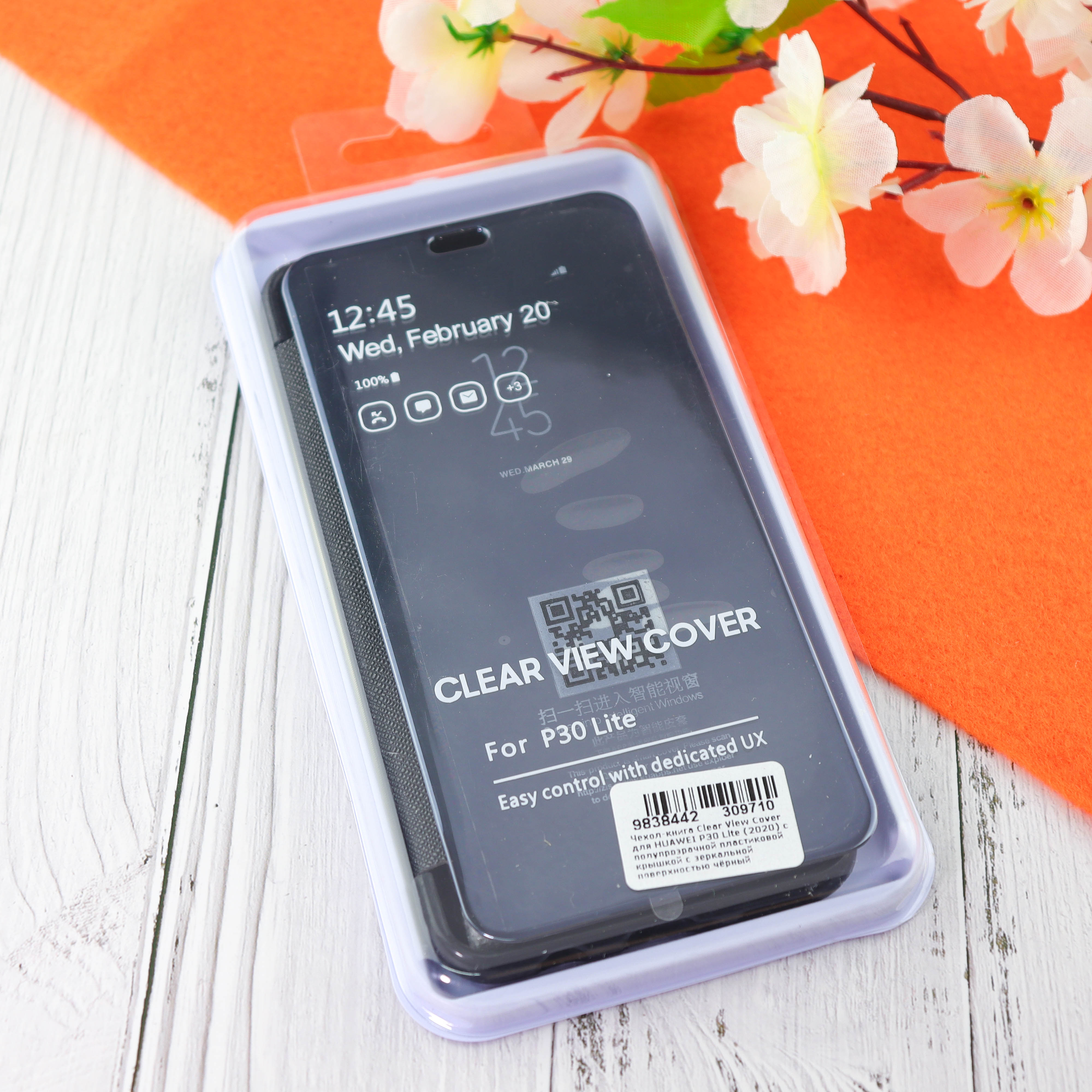 Чехол-книга Clear View Cover для HUAWEI P30 Lite (2020) с полупрозрачной пластиковой крышкой с зеркальной поверхностью чёрный