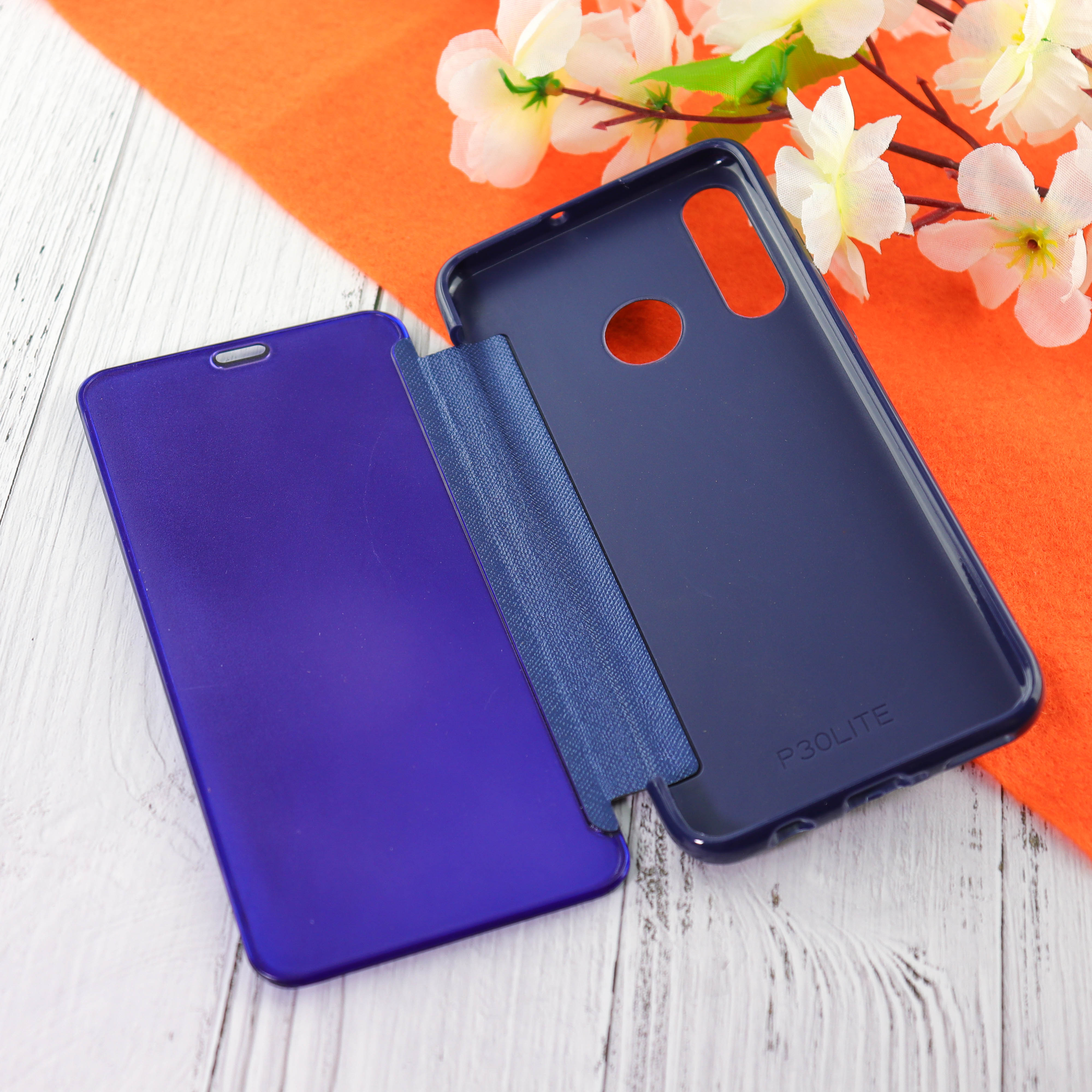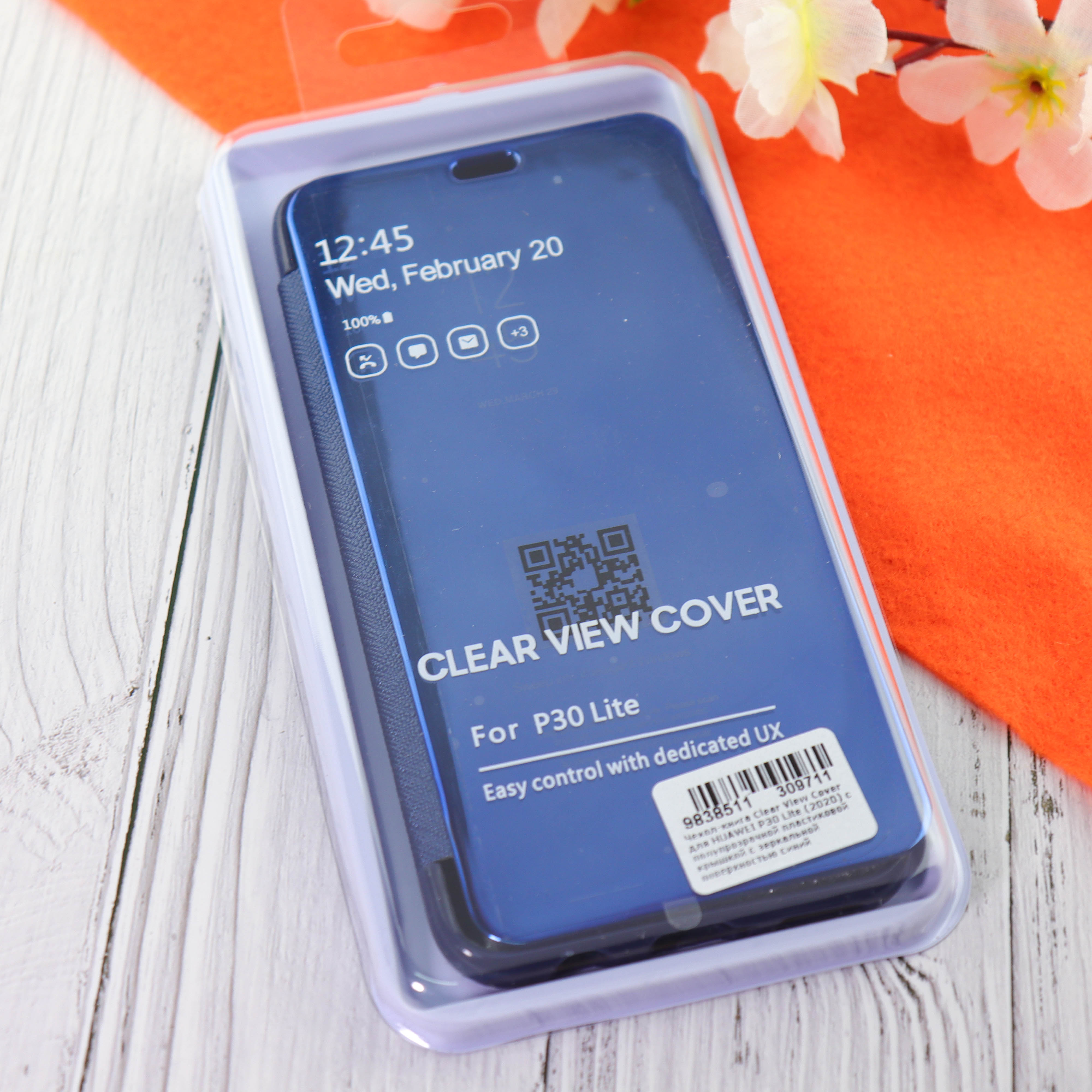 Чехол-книга Clear View Cover для HUAWEI P30 Lite (2020) с полупрозрачной пластиковой крышкой с зеркальной поверхностью синий