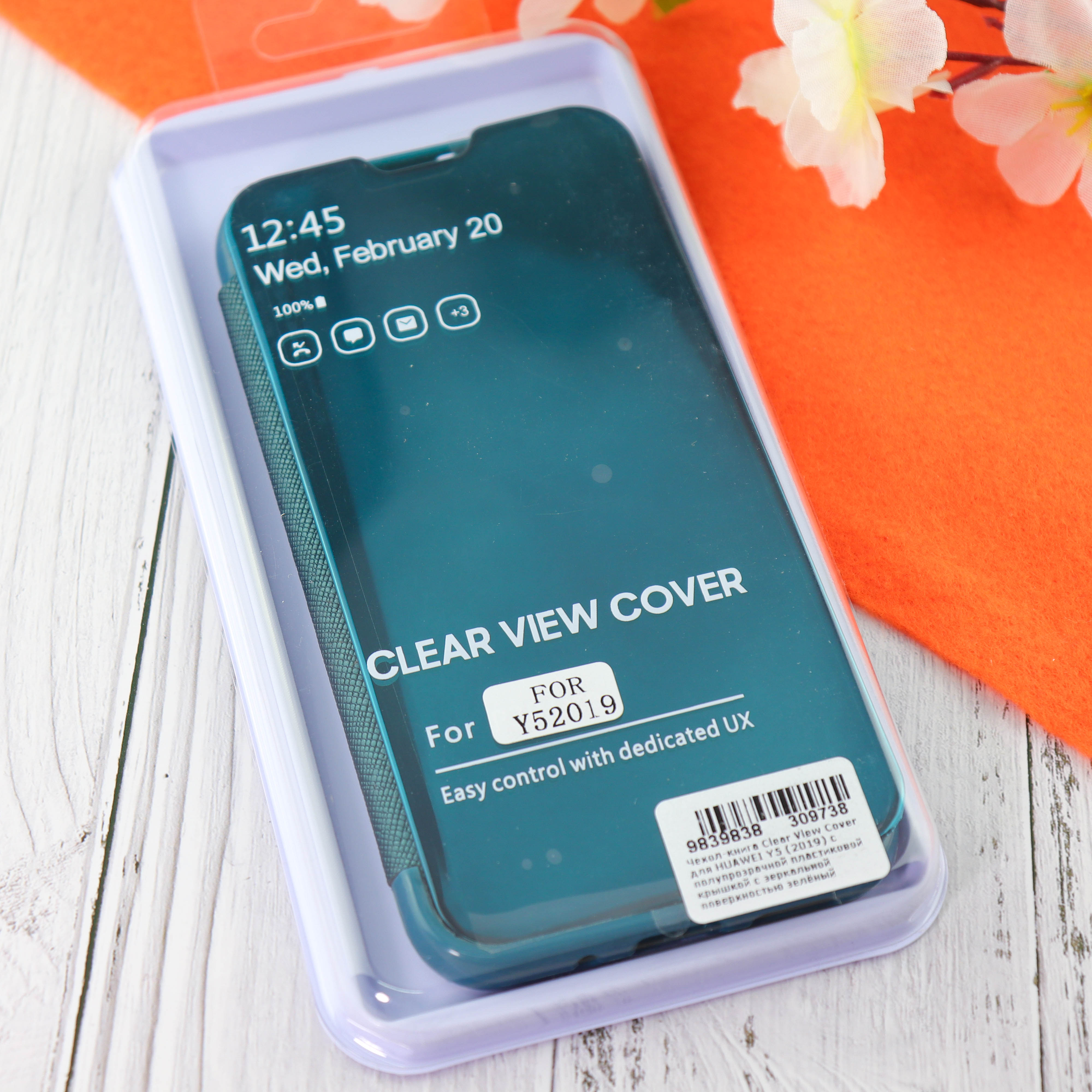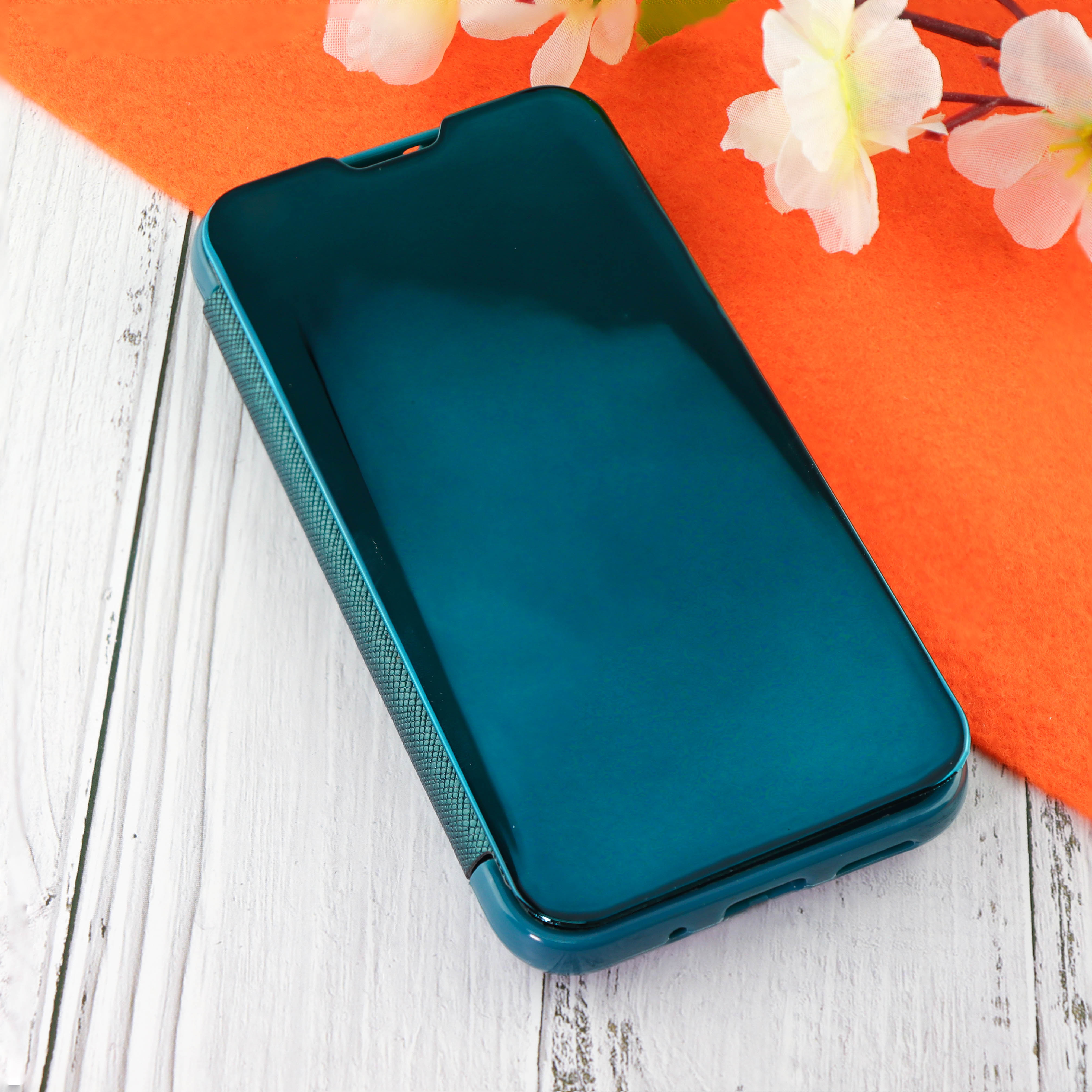 Чехол-книга Clear View Cover для HUAWEI Y5 (2019) с полупрозрачной пластиковой крышкой с зеркальной поверхностью зелёный