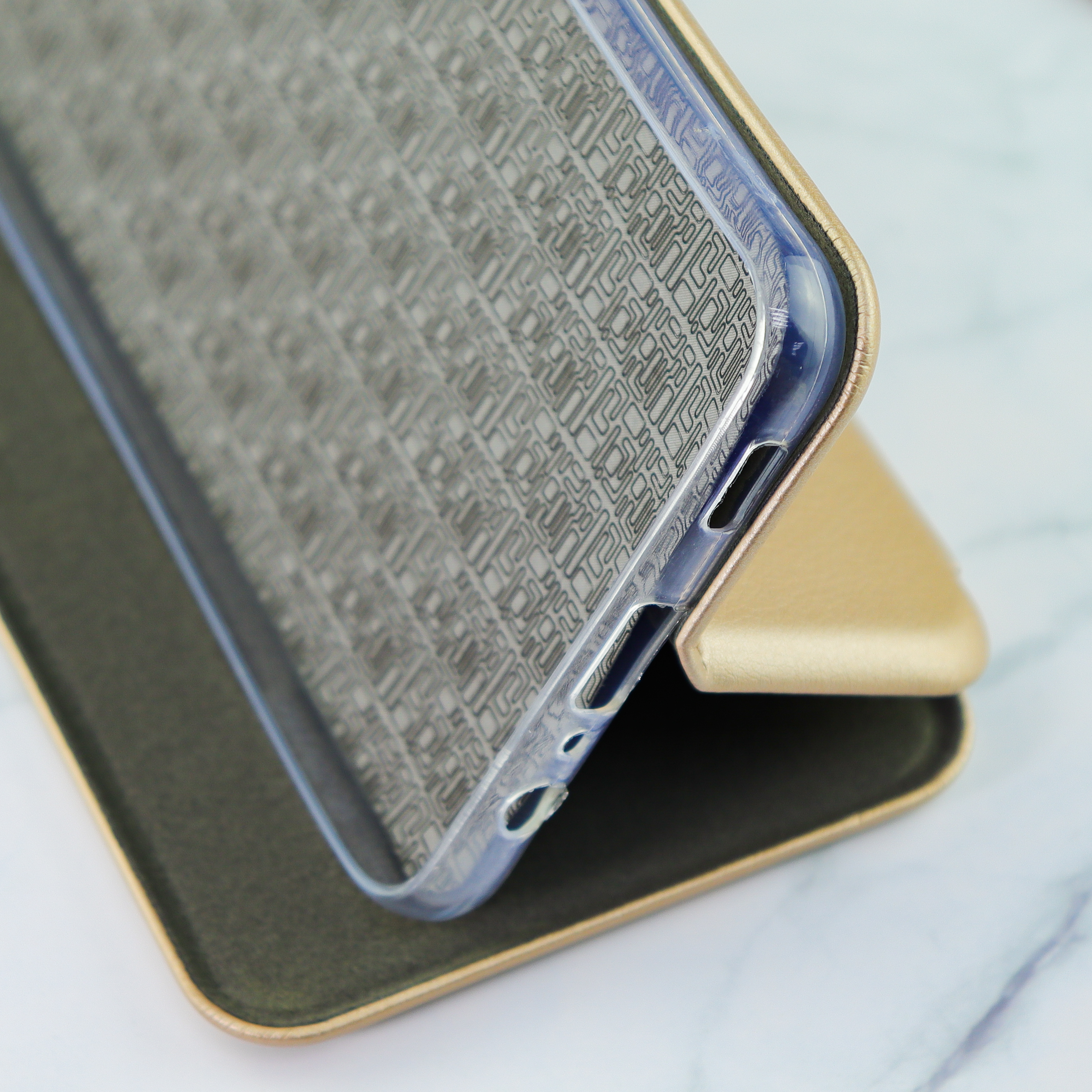 Чехол-книга для Samsung A02 (2021)/отдел под пластик.карту,силикон/ золото