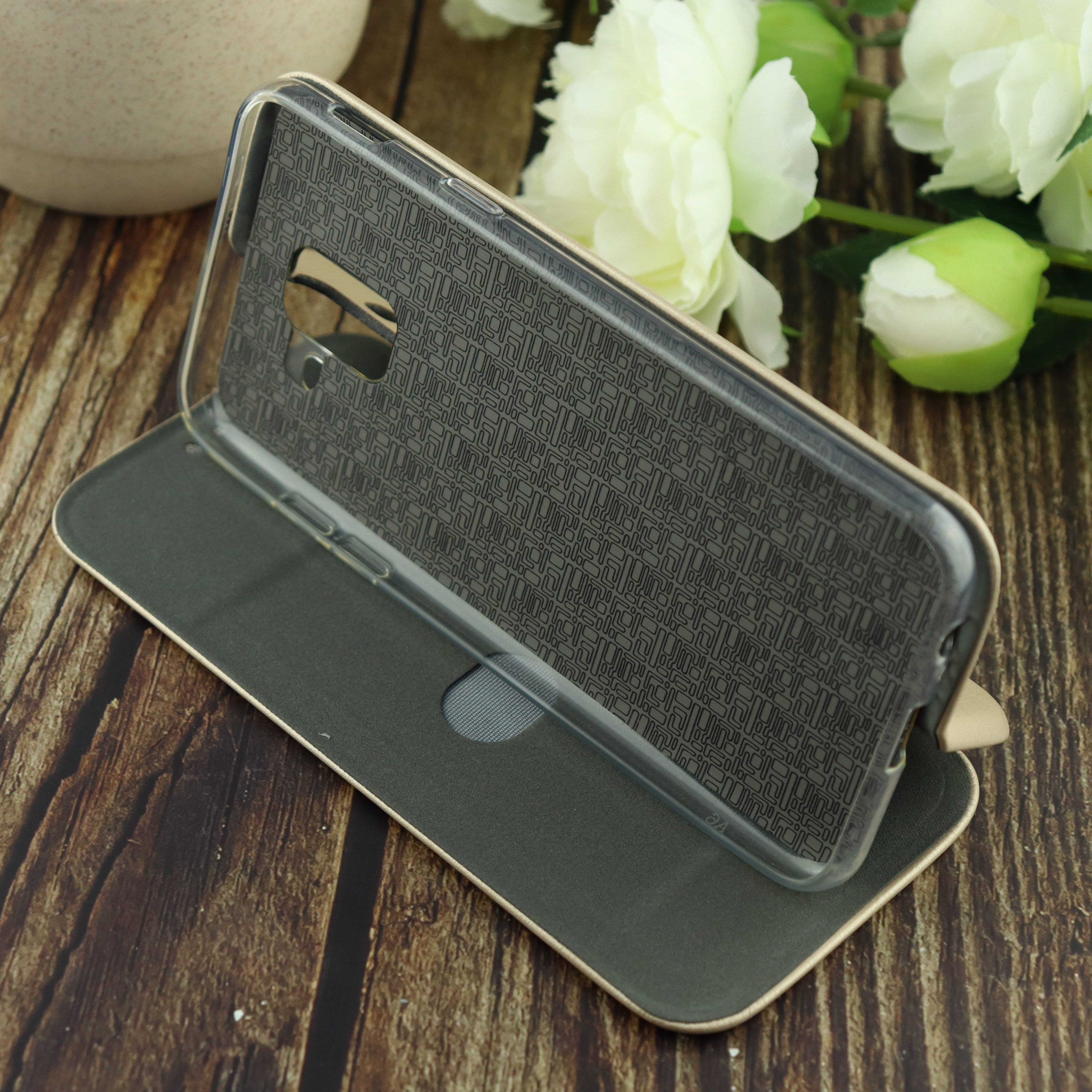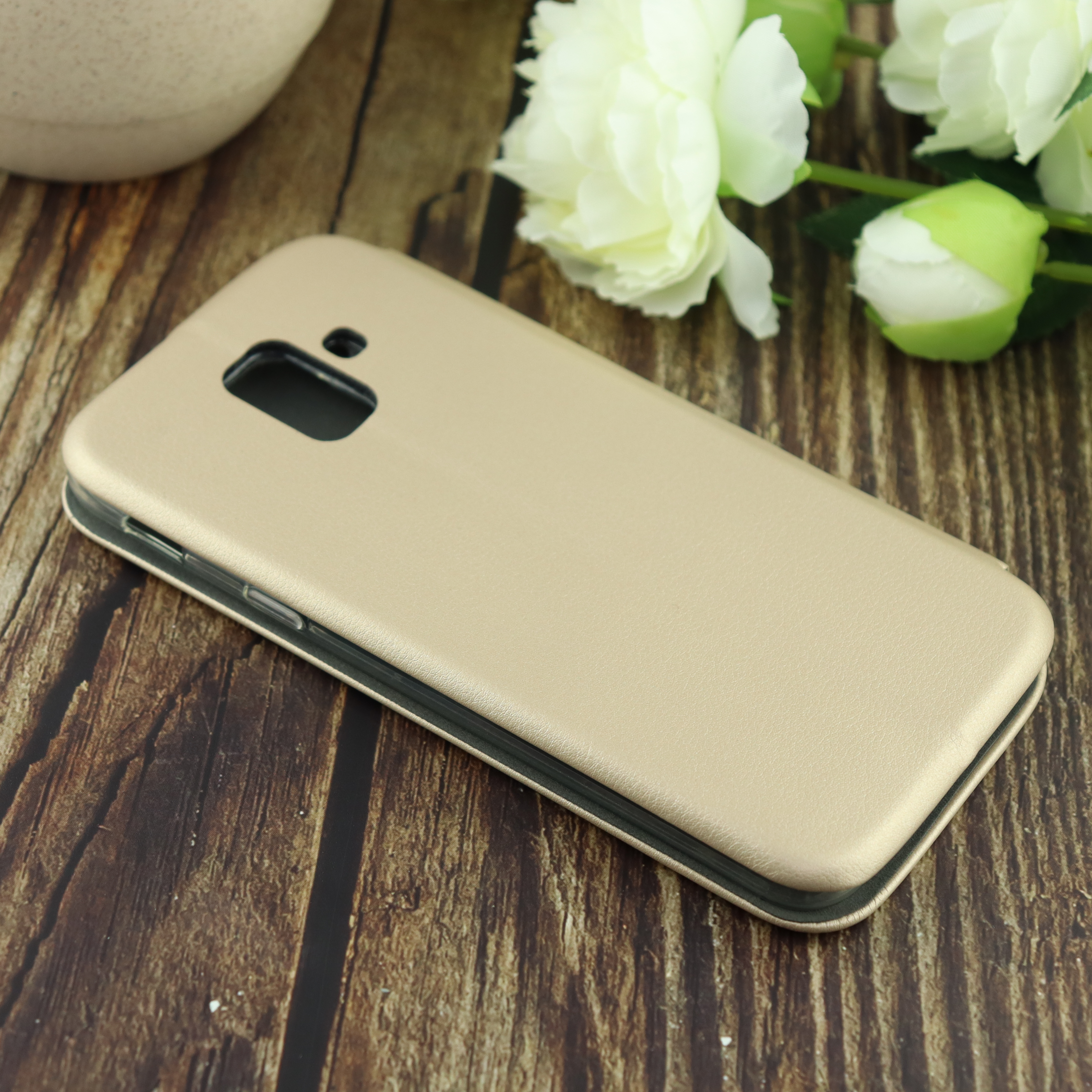 Чехол-книга для Samsung A6 2018/A600F /отдел под пластик.карту,силикон/ золото