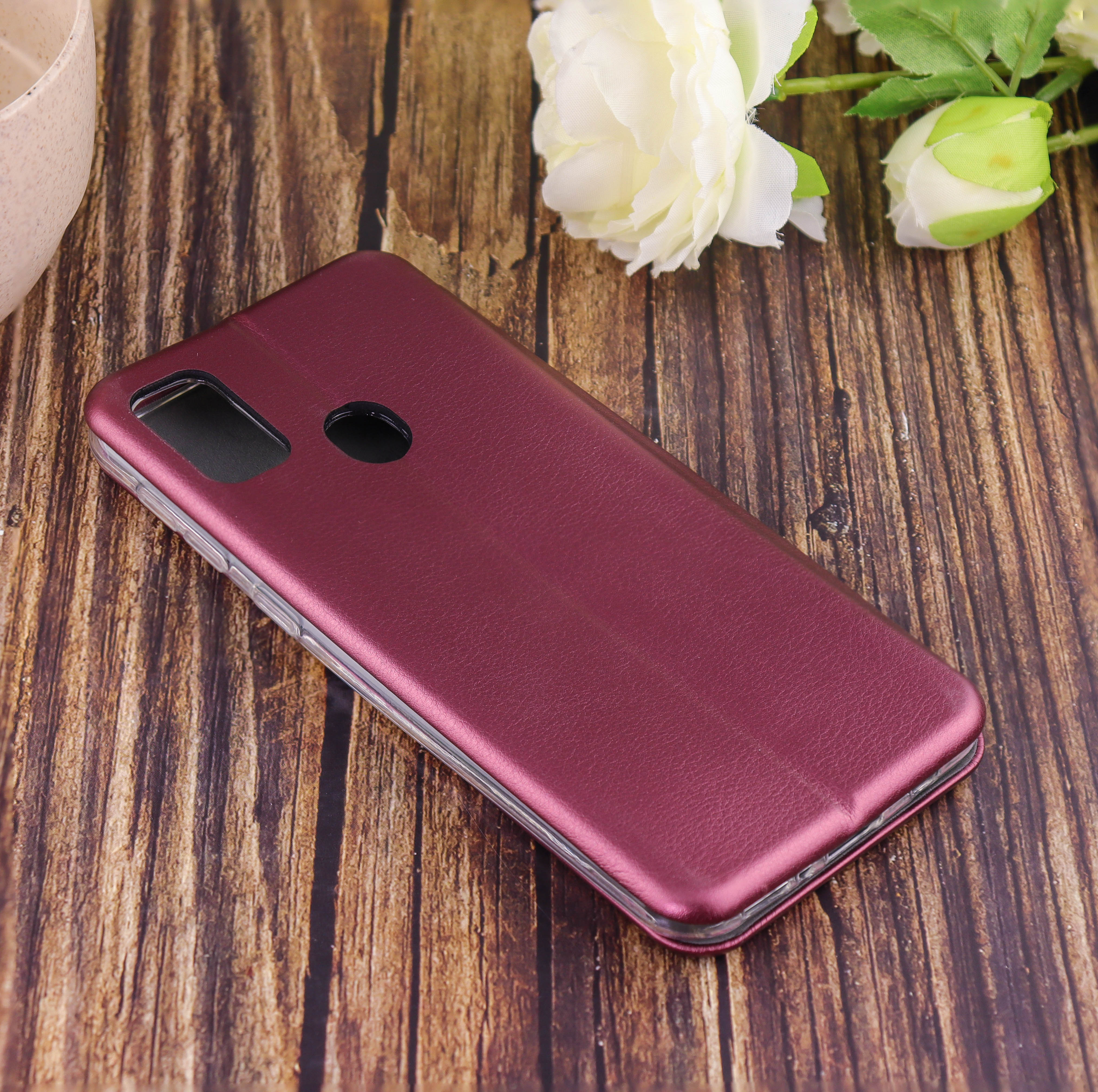 Чехол-книга для Samsung M21 (2020)/отдел под пластик.карту,силикон/ бордовый