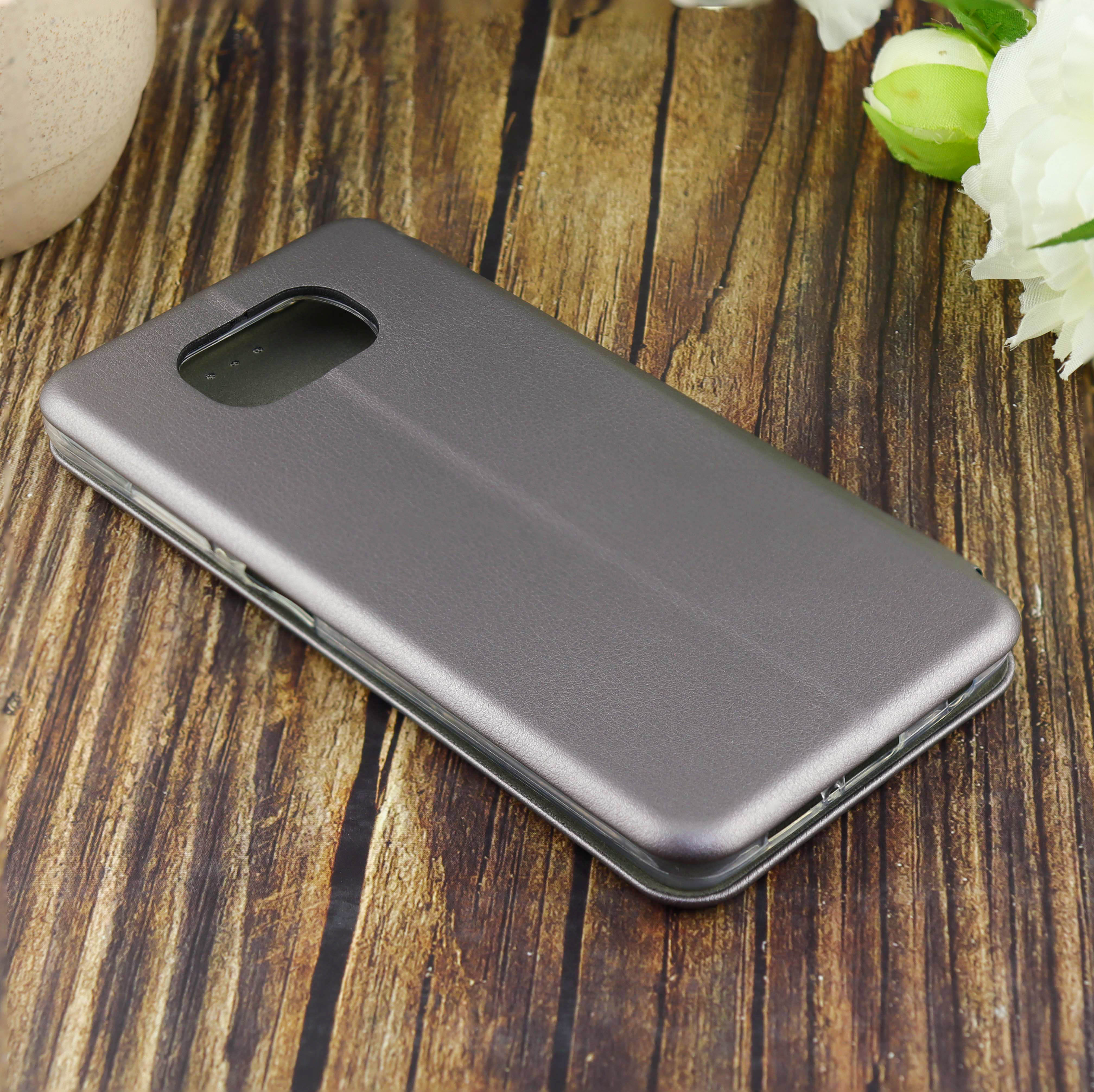 Чехол-книга для Xiaomi POCO X3 /отдел под пластик.карту,силикон/ серебро