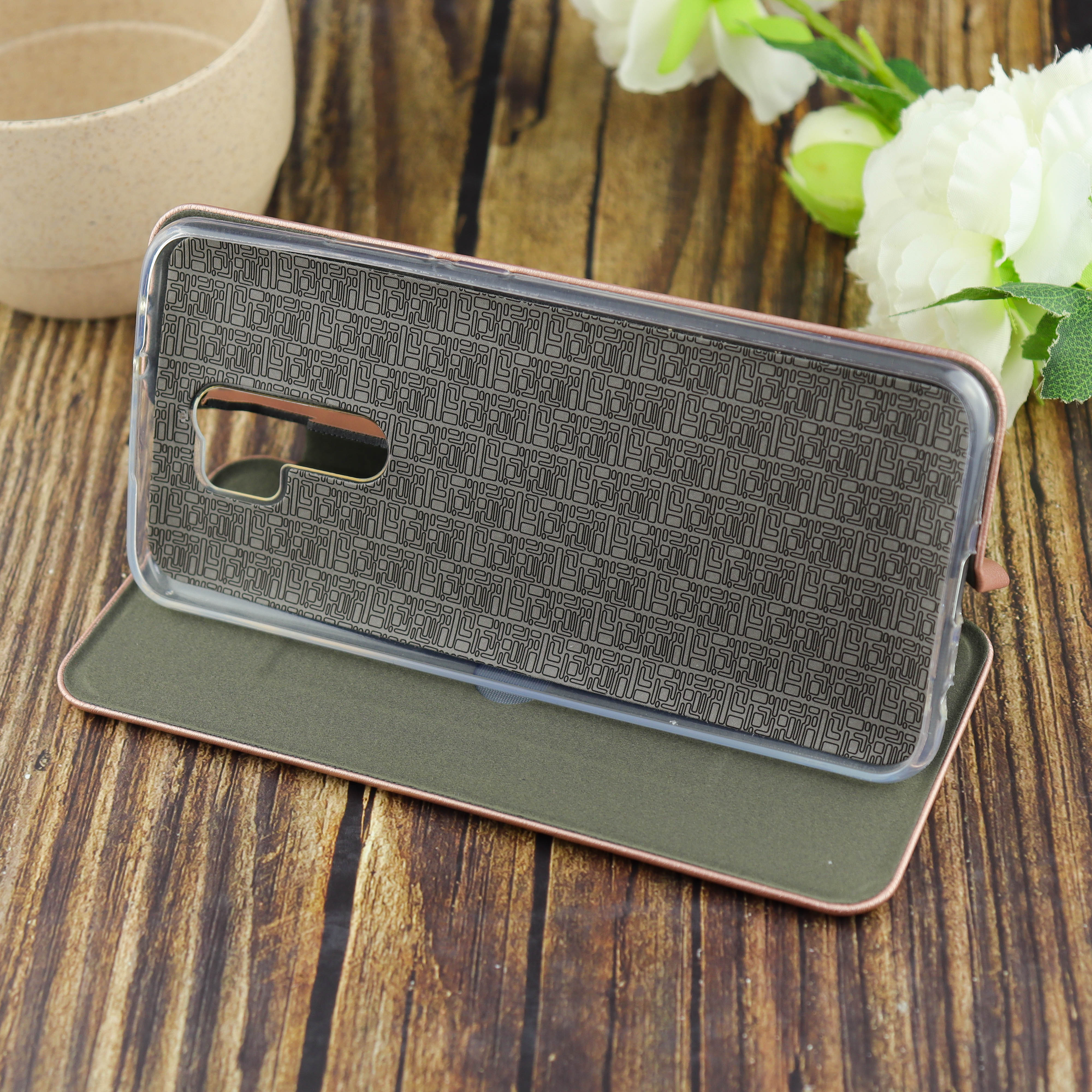 Чехол-книга для Xiaomi Redmi 9 /отдел под пластик.карту,силикон/ розовое золото