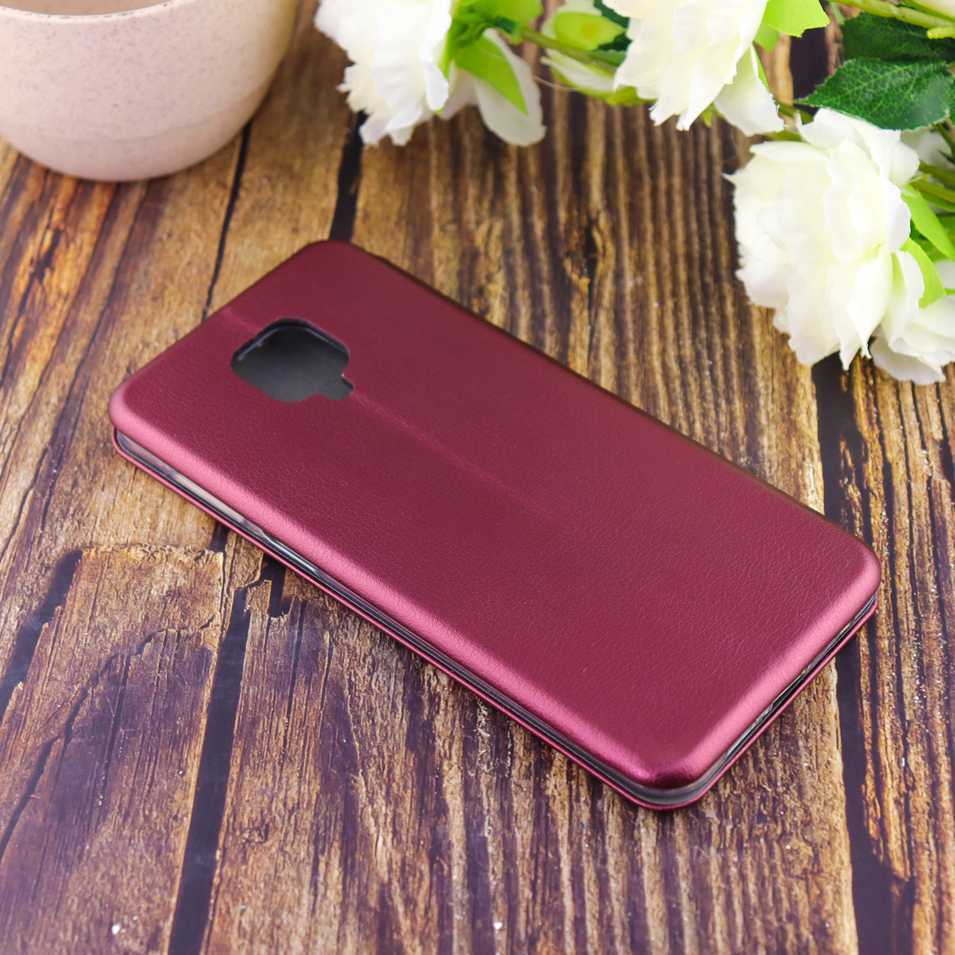 Чехол-книга для Xiaomi Redmi Note 9 Pro Max (2020) /отдел под пластик.карту,силикон/ бордовый