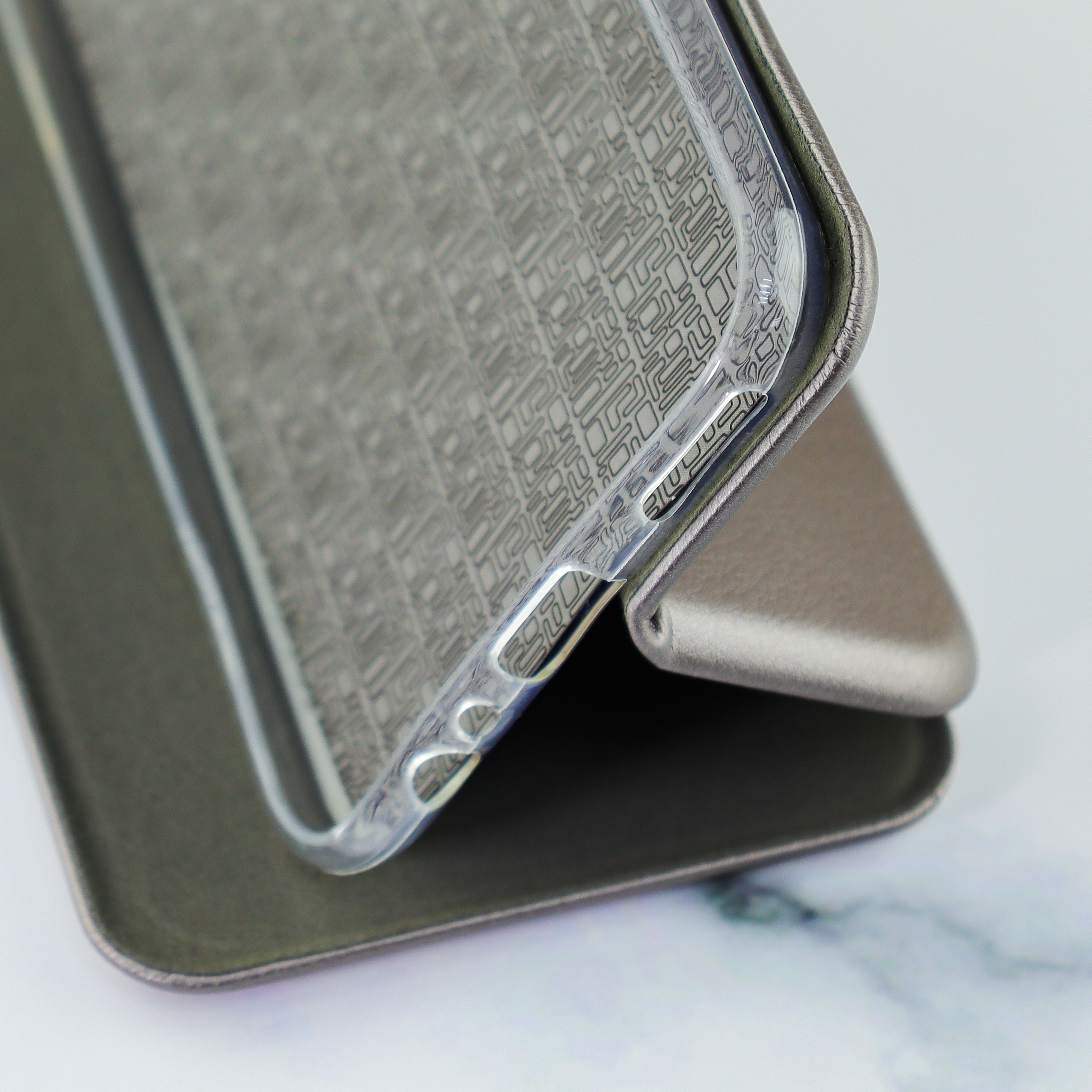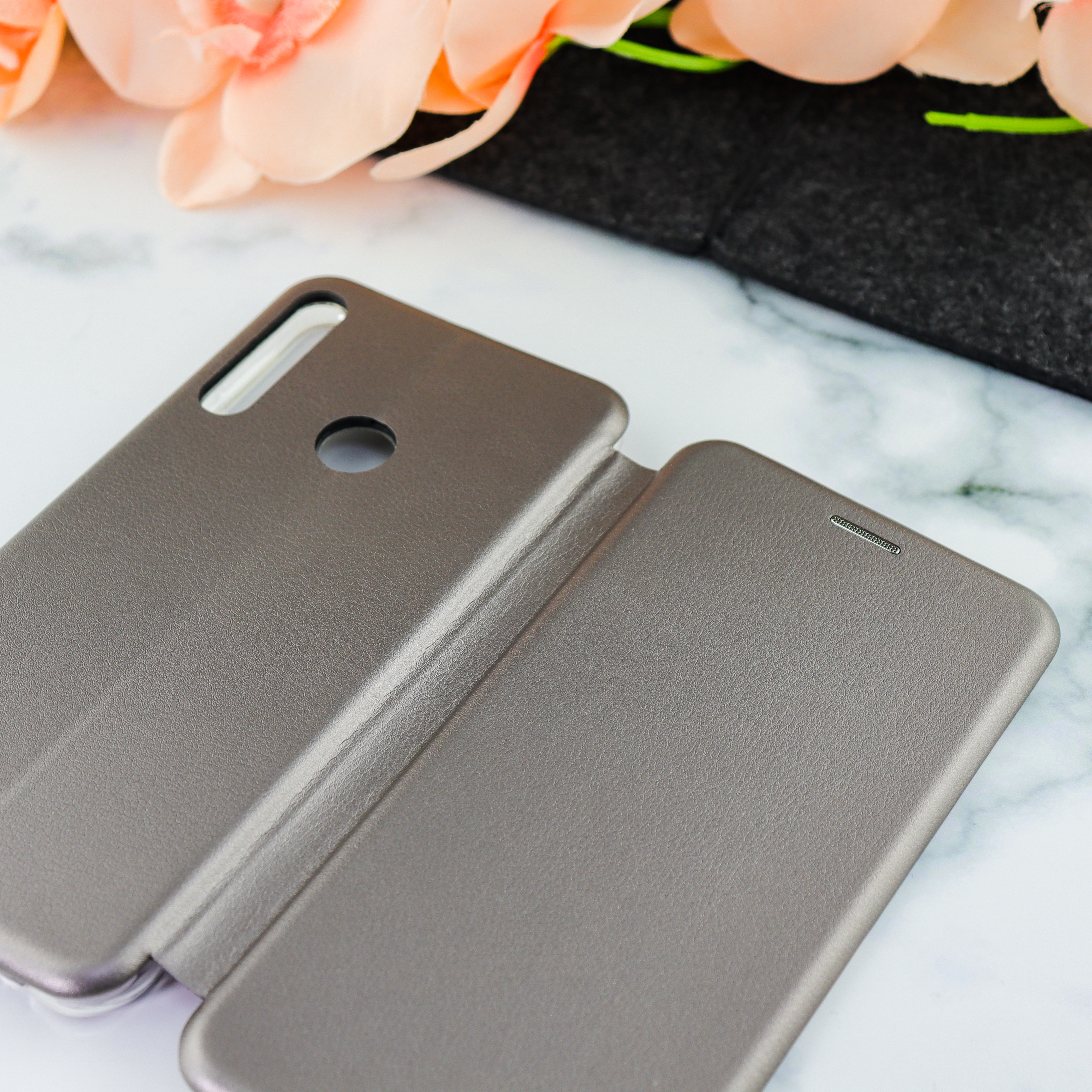 Чехол книга на силиконовой основе и магните для Huawei Honor P40 Lite E/9C Book, с округленными краями, серебряный