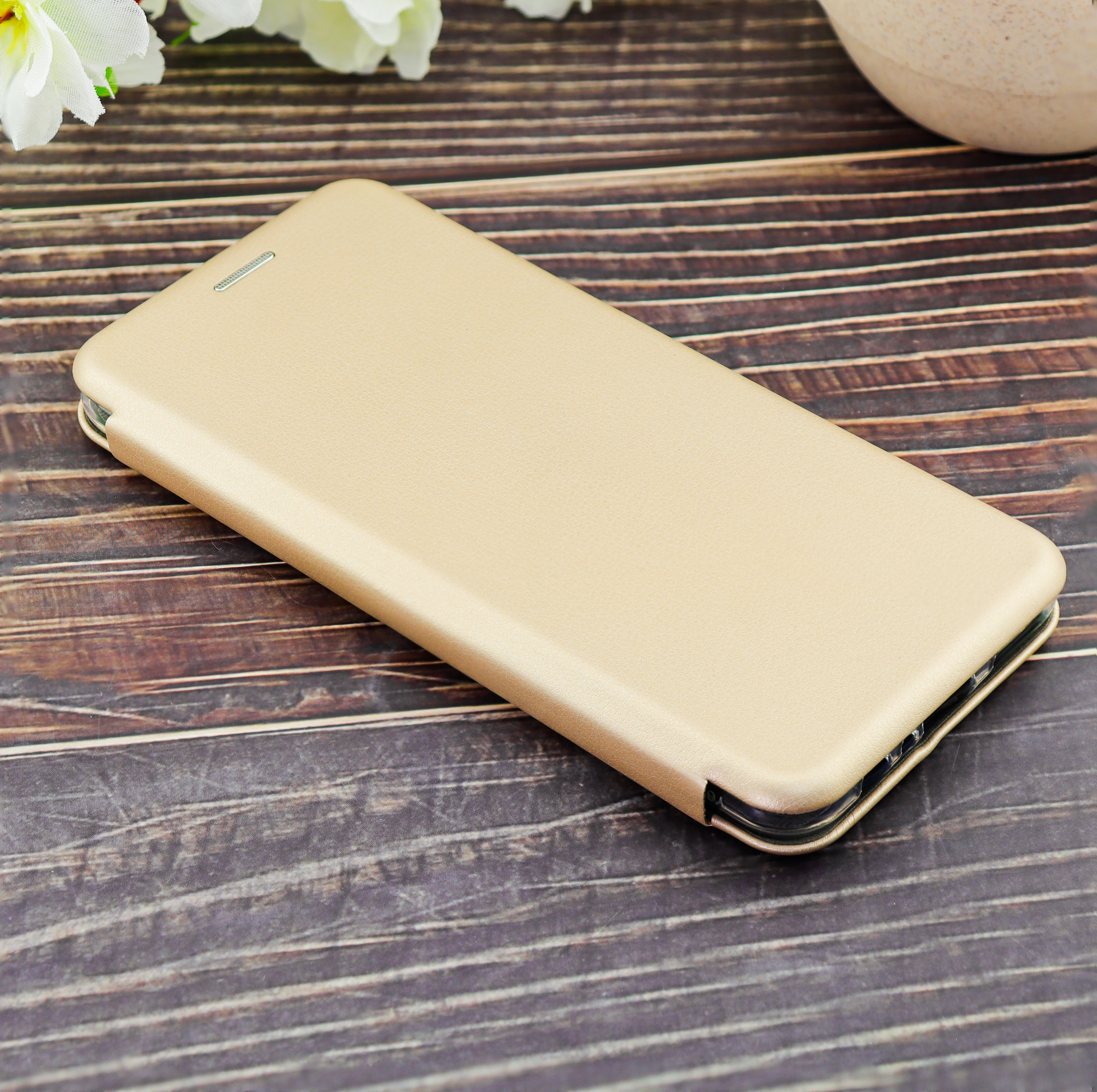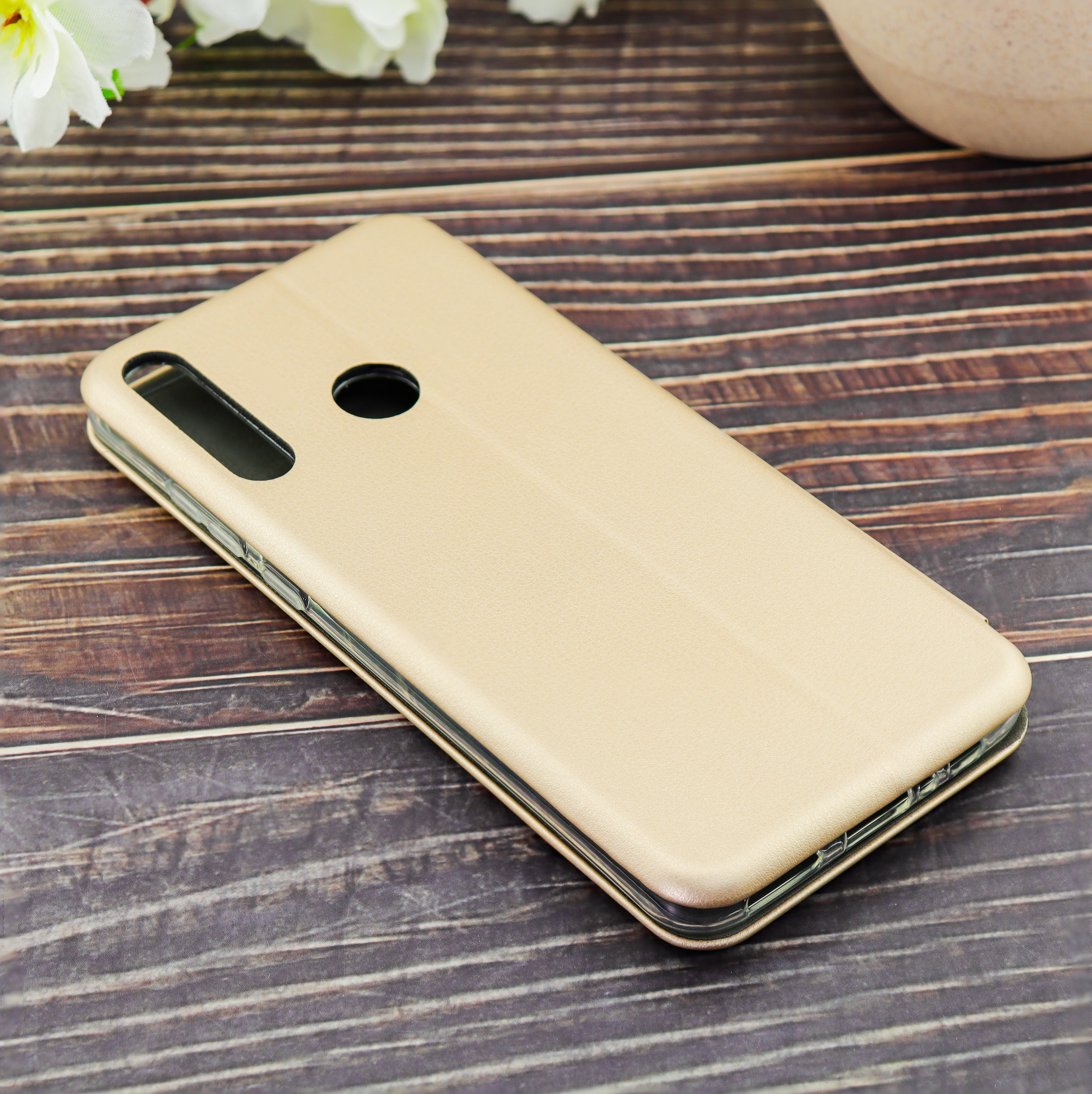 Чехол книга на силиконовой основе и магните для Huawei Honor Y6P (2020) Book, с округленными краями, золотой