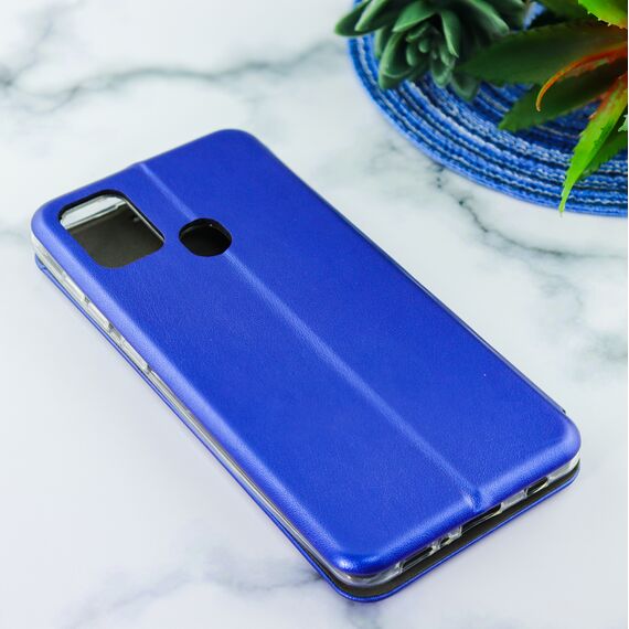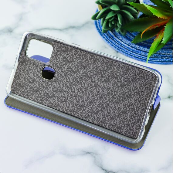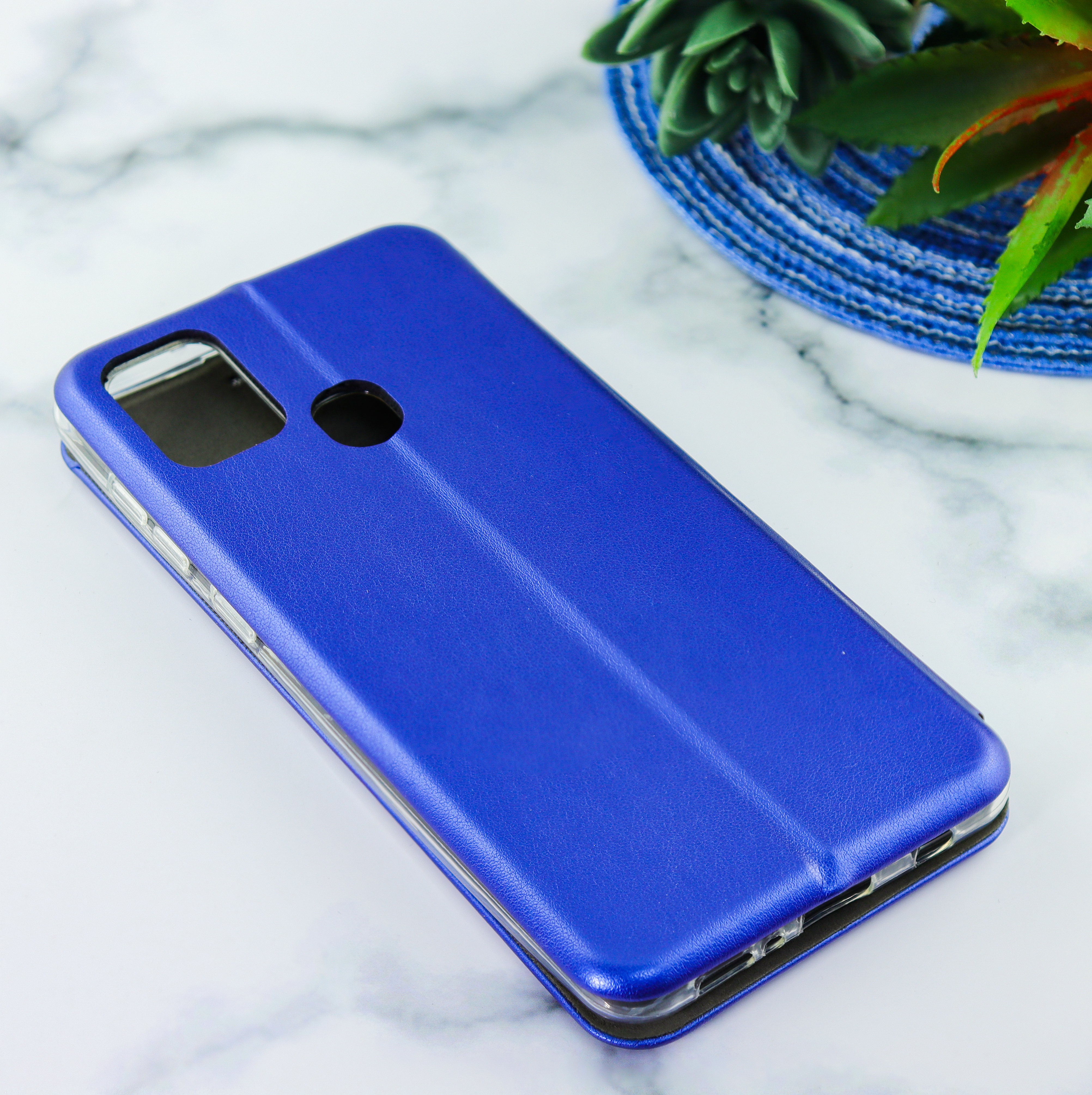 Чехол книга на силиконовой основе и магните для Samsung Galaxy A21S Book, с округленными краями, синий