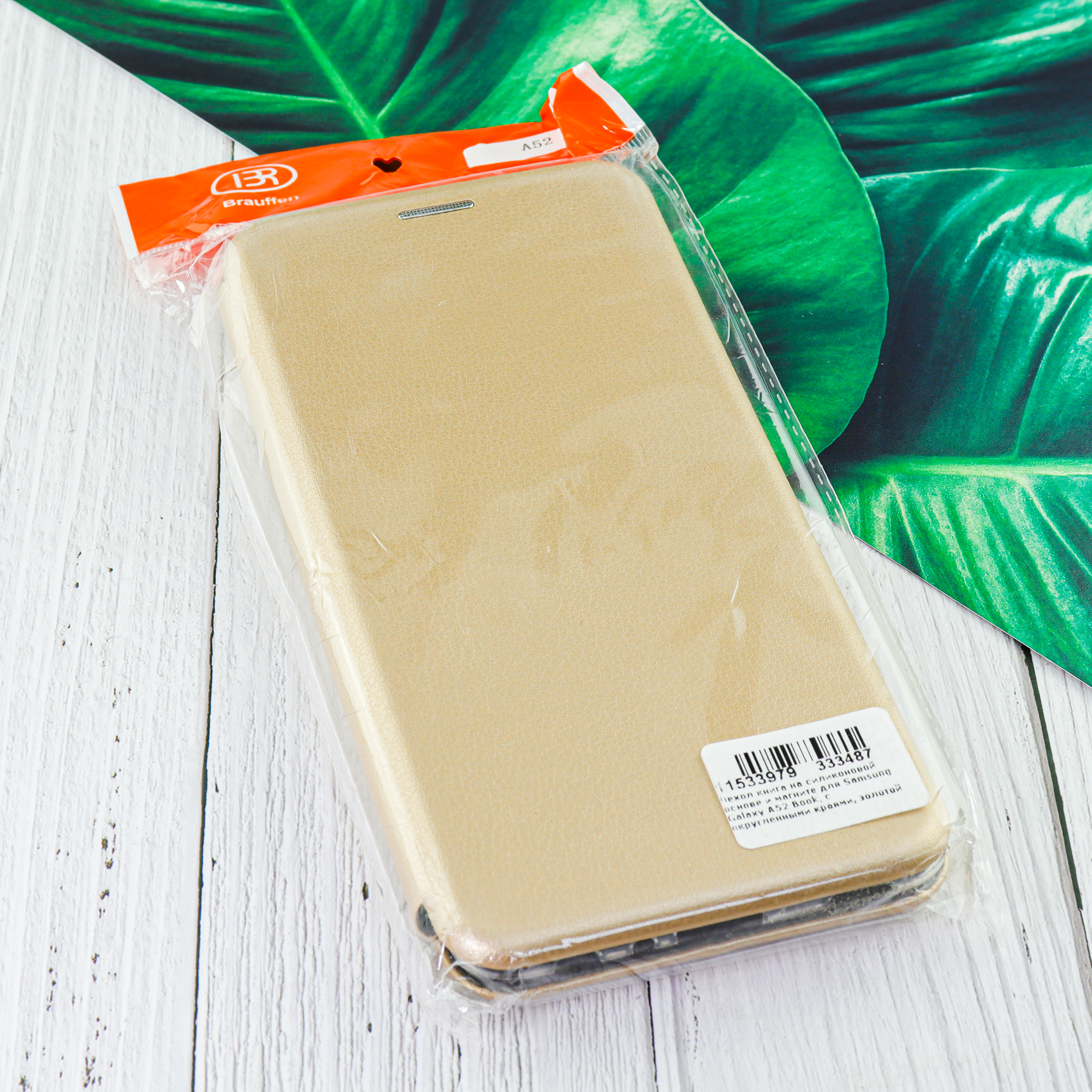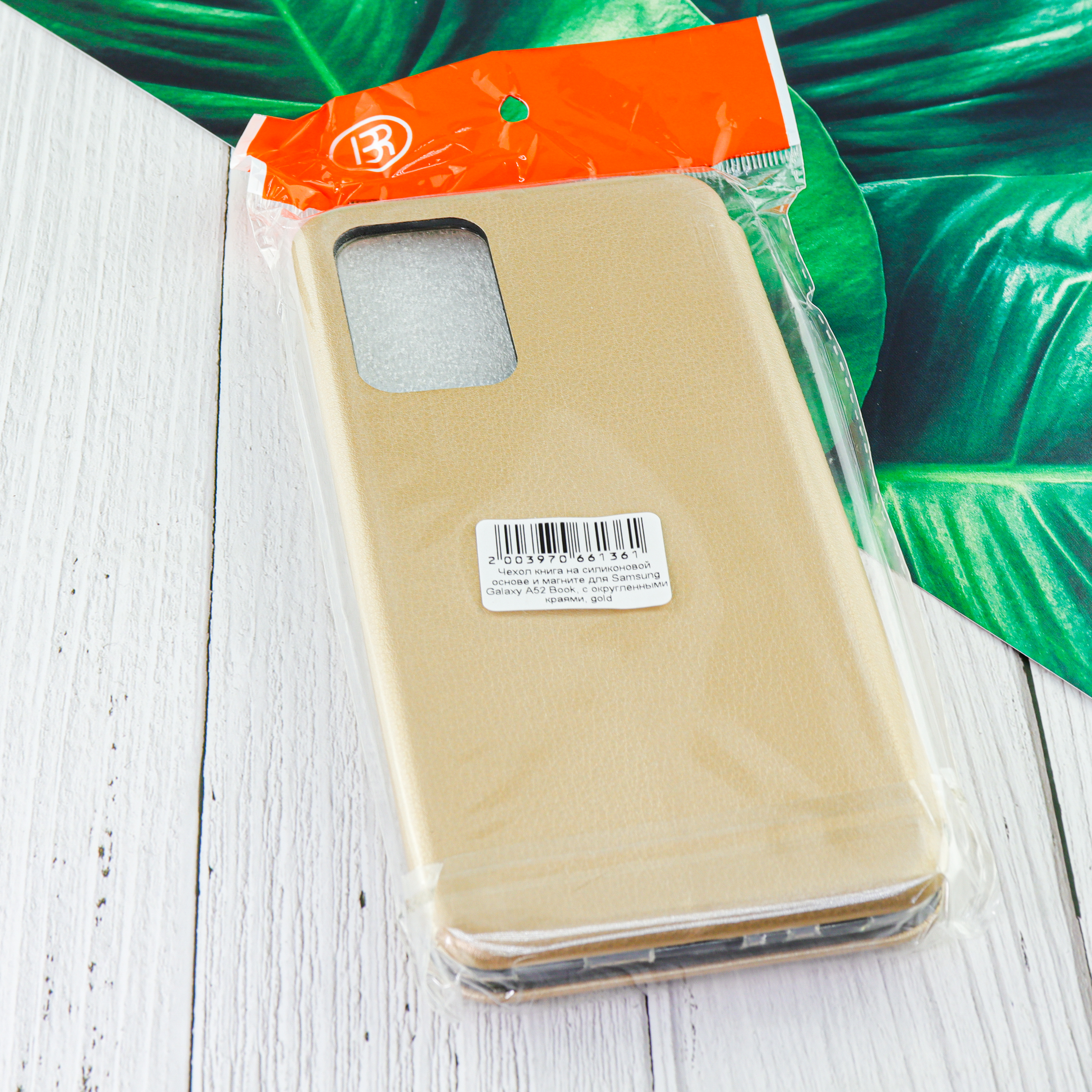 Чехол книга на силиконовой основе и магните для Samsung Galaxy A52 Book, с округленными краями, золотой
