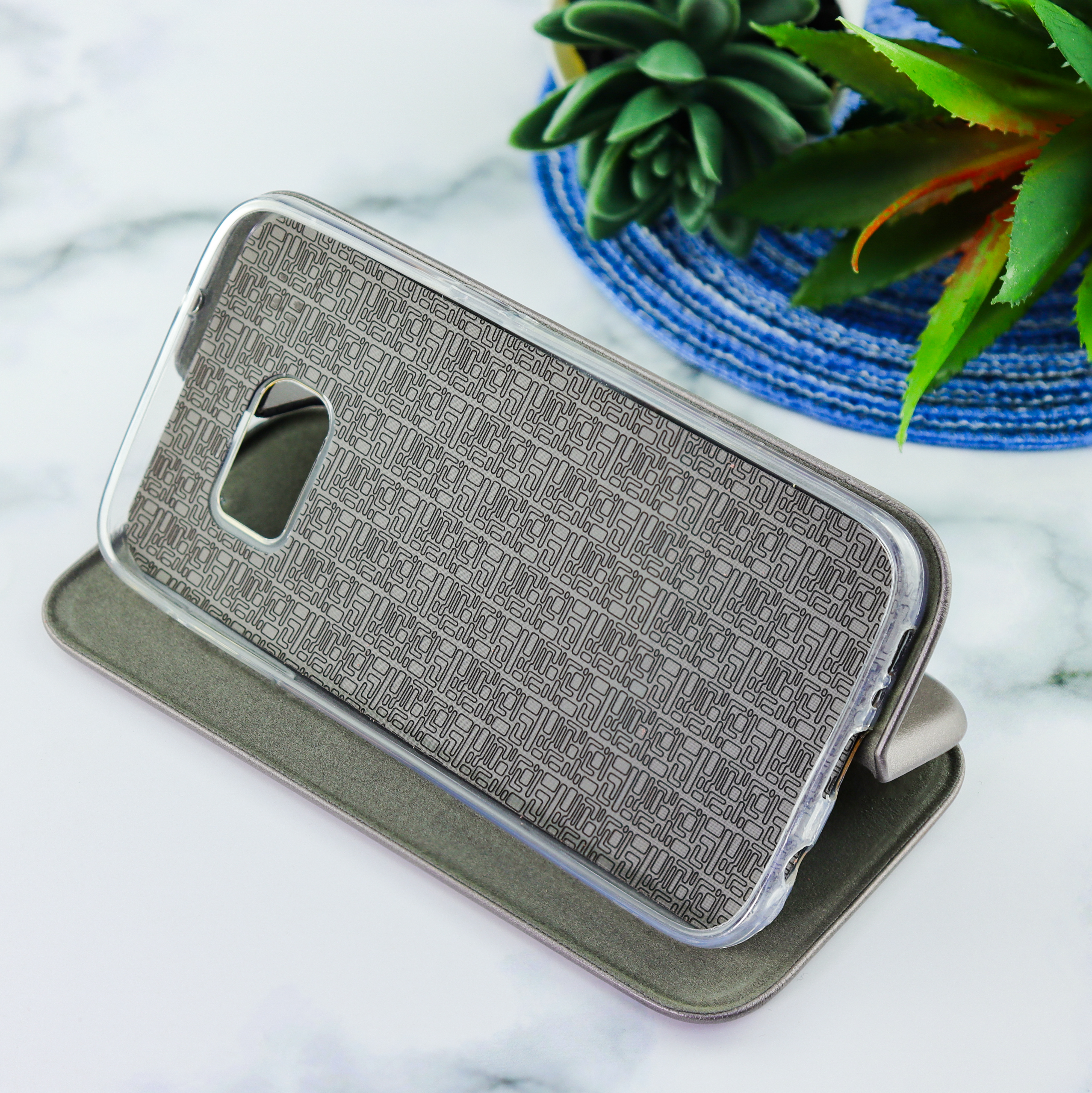 Чехол книга на силиконовой основе и магните для Samsung Galaxy S7 Book, с округленными краями, серебряный