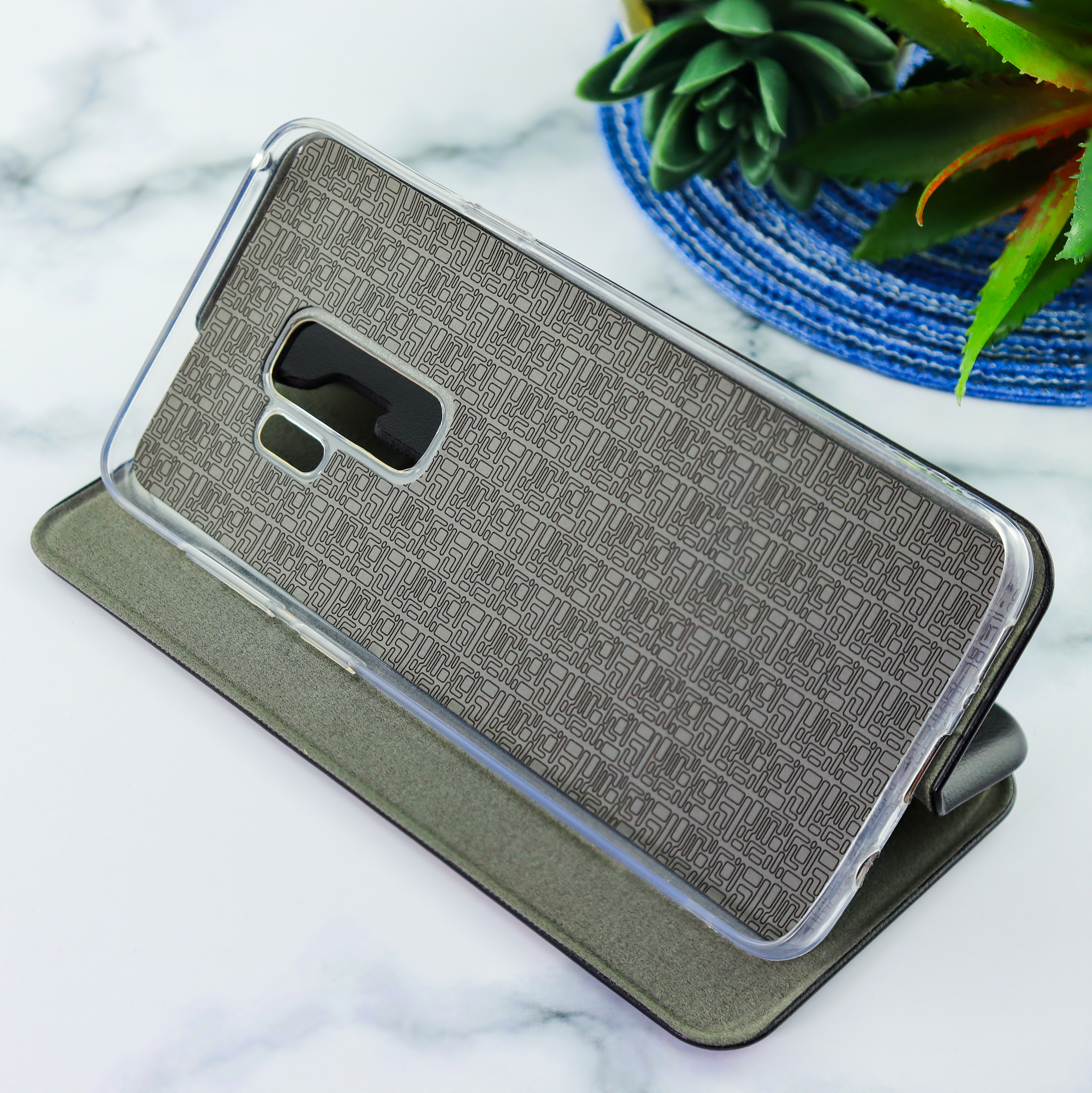 Чехол книга на силиконовой основе и магните для Samsung Galaxy S9 Plus Book, с округленными краями, черный