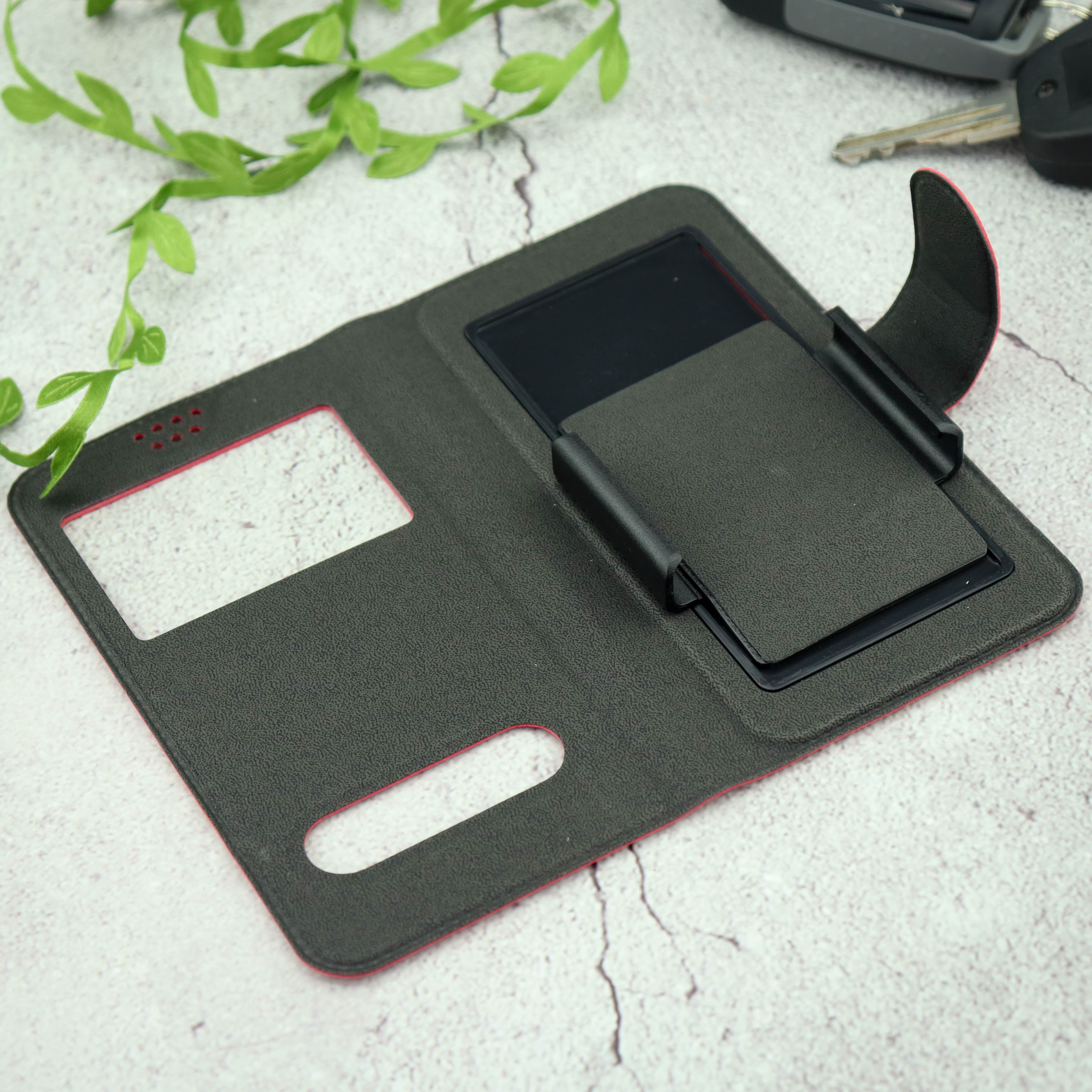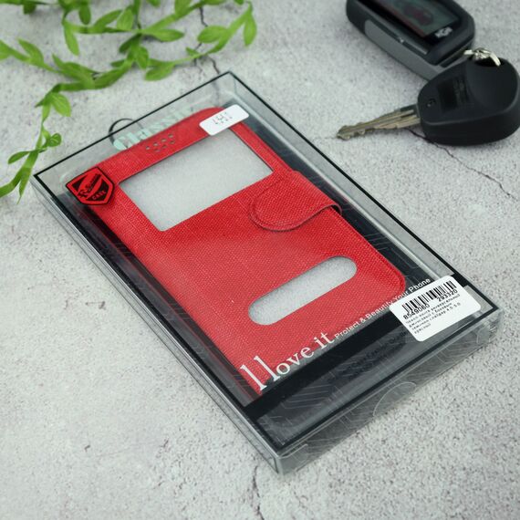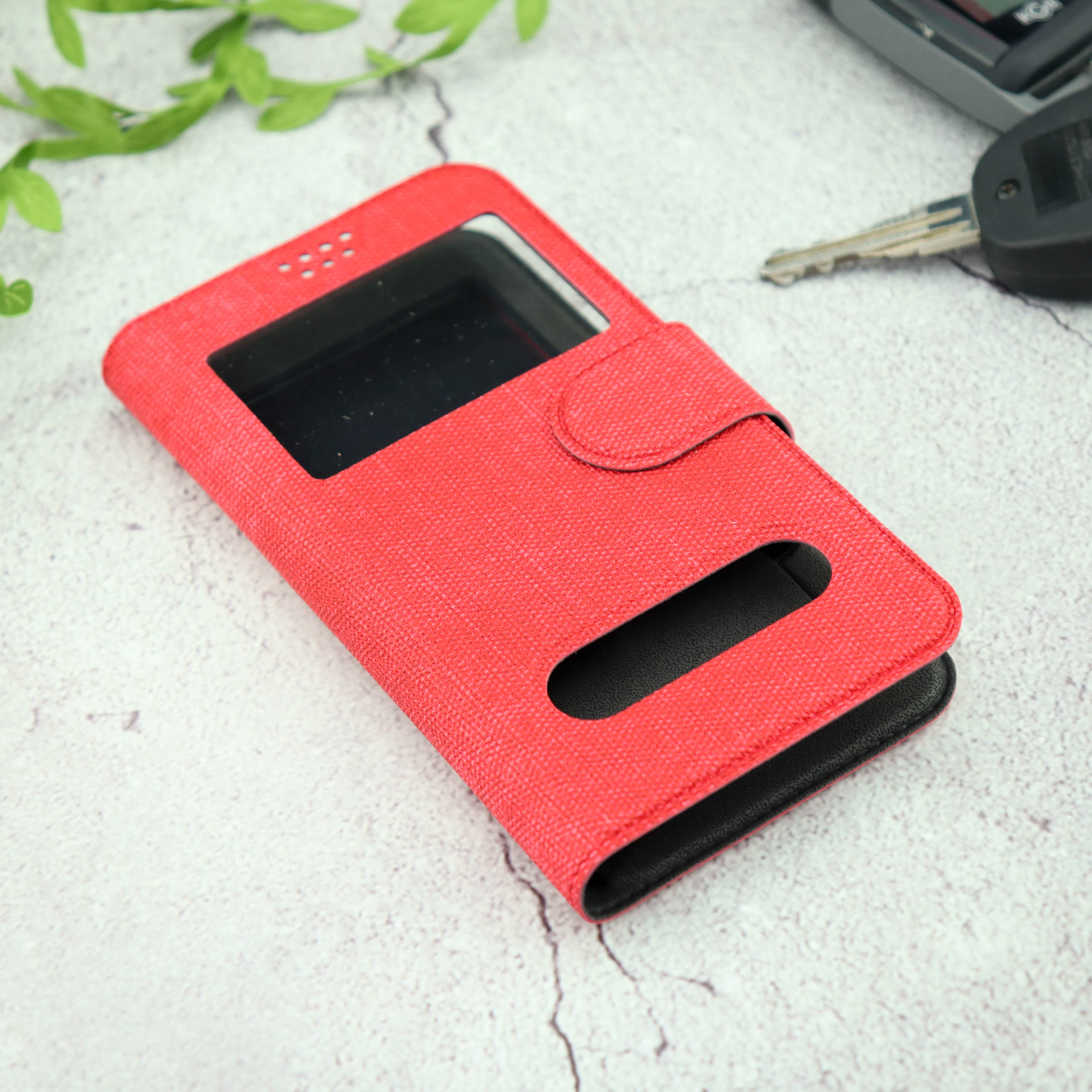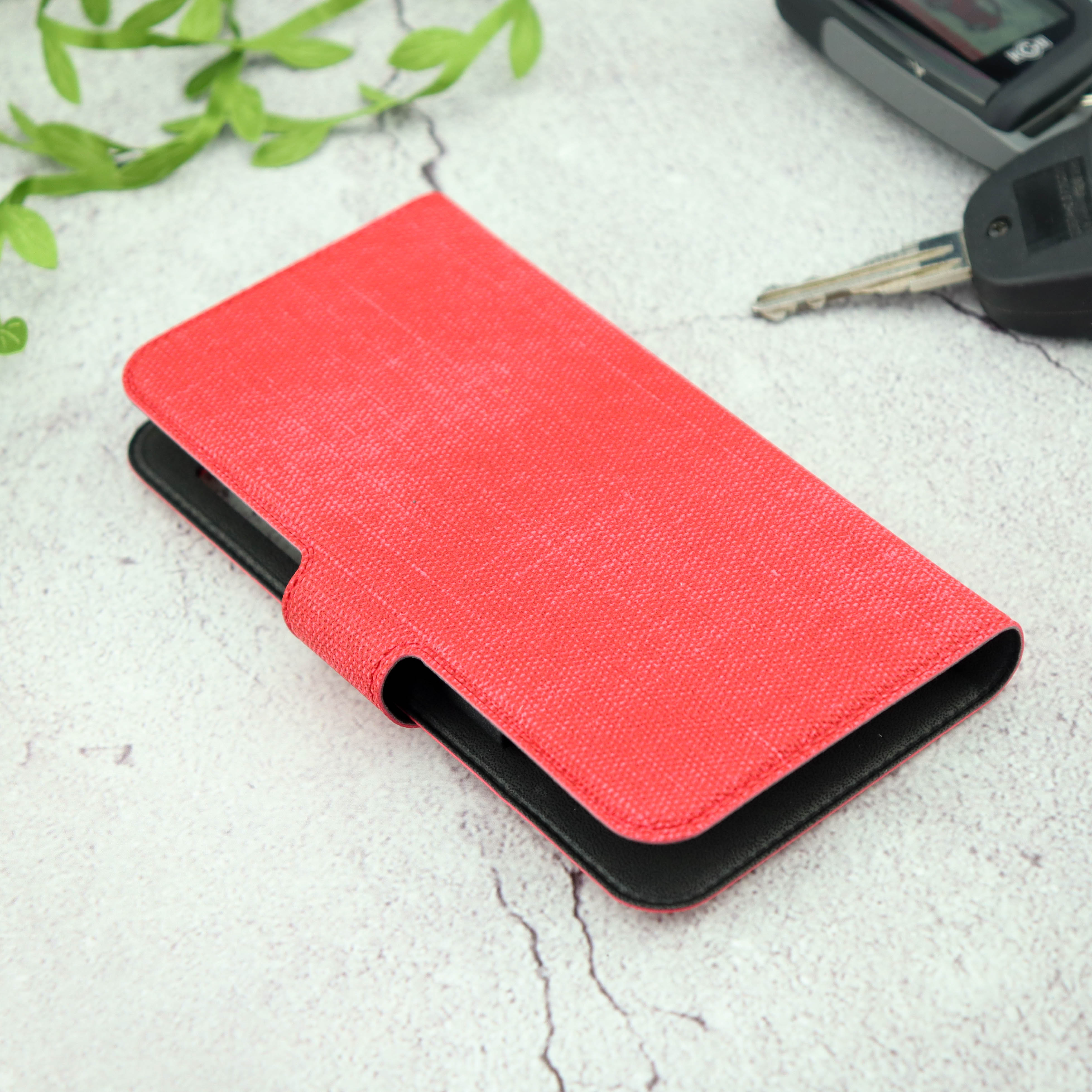 Чехол-книга универсальный джинсовый с боковым зажимом слайдер 4.5-5.0 красный