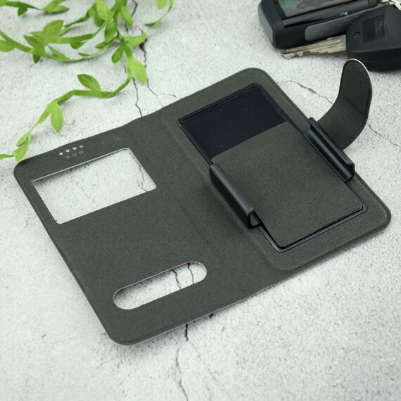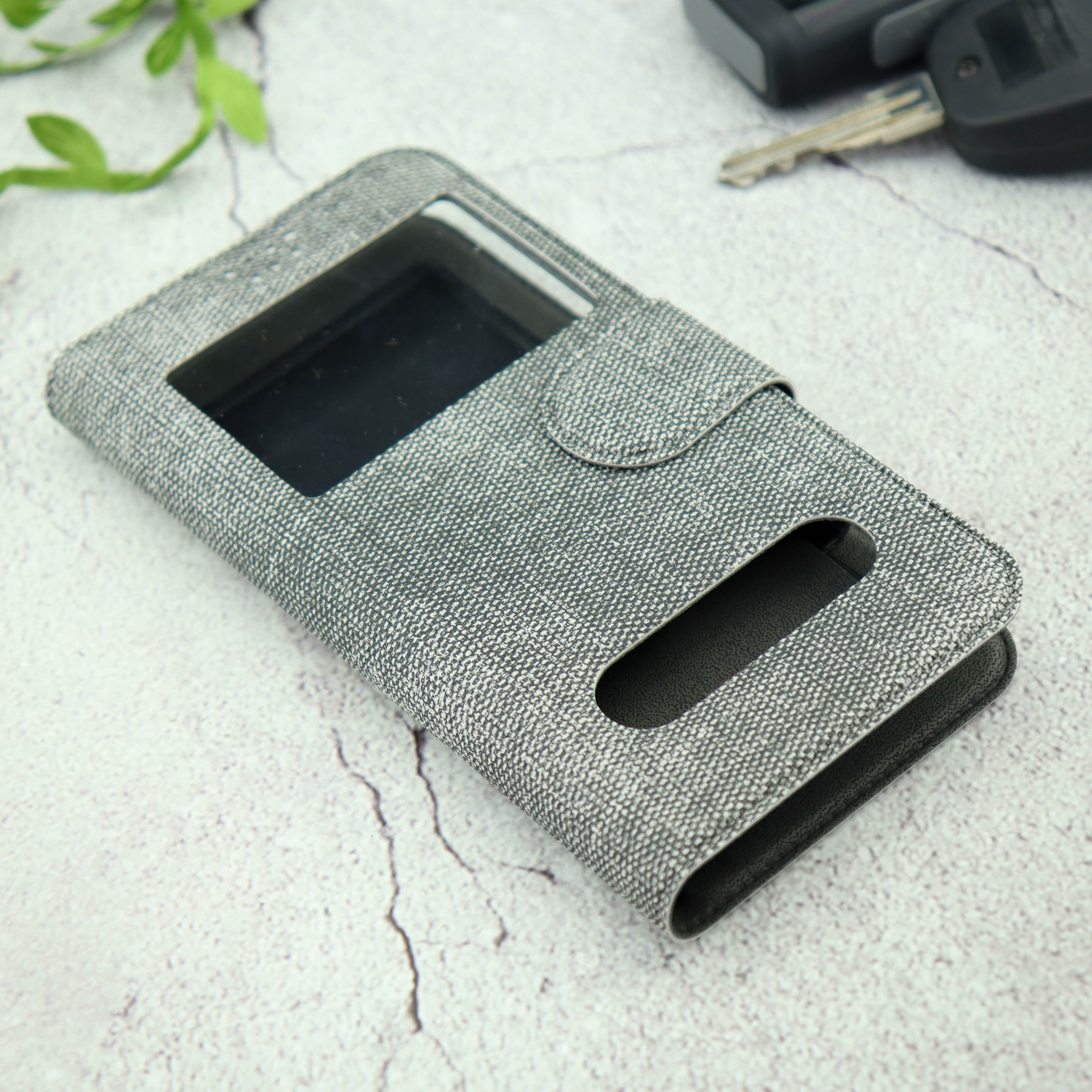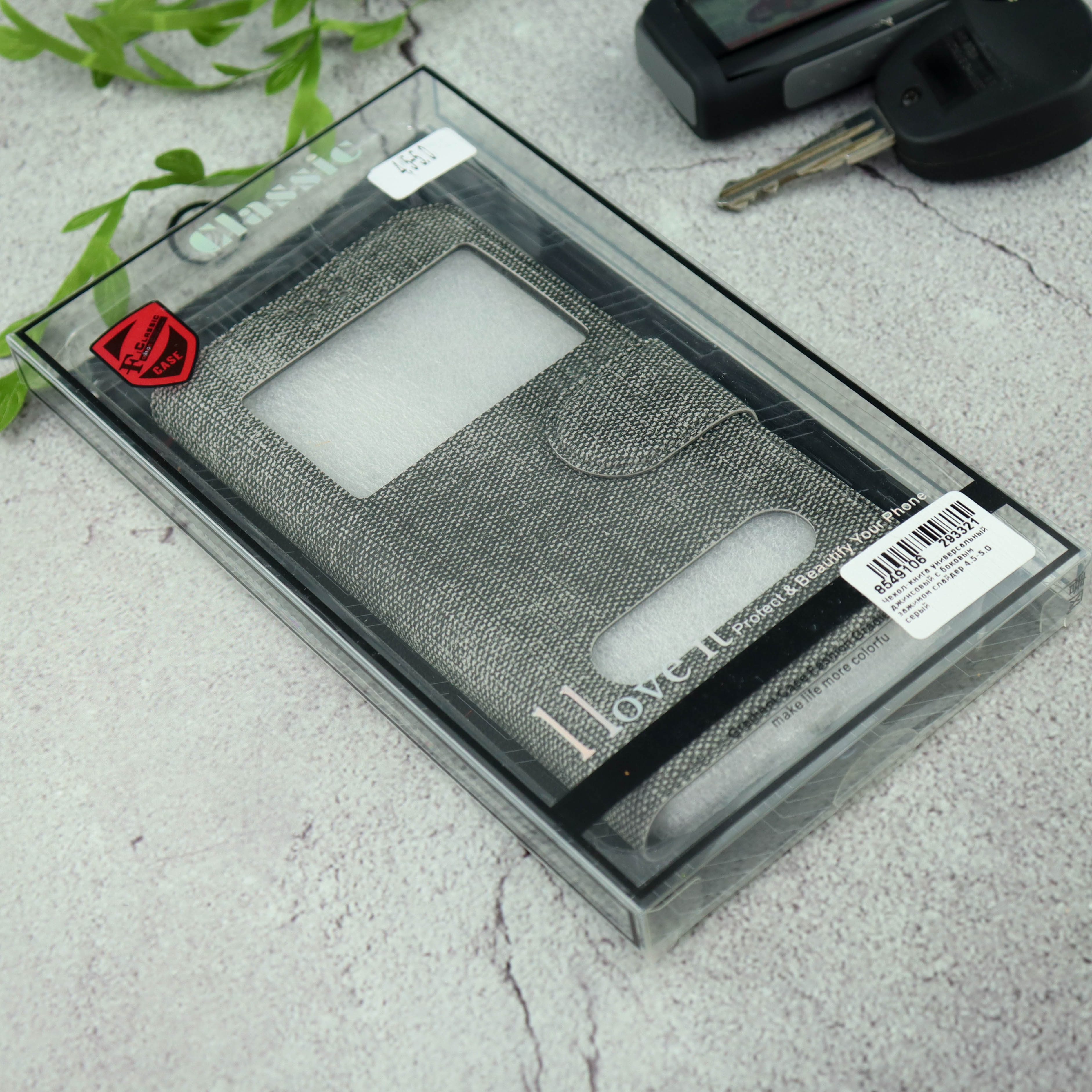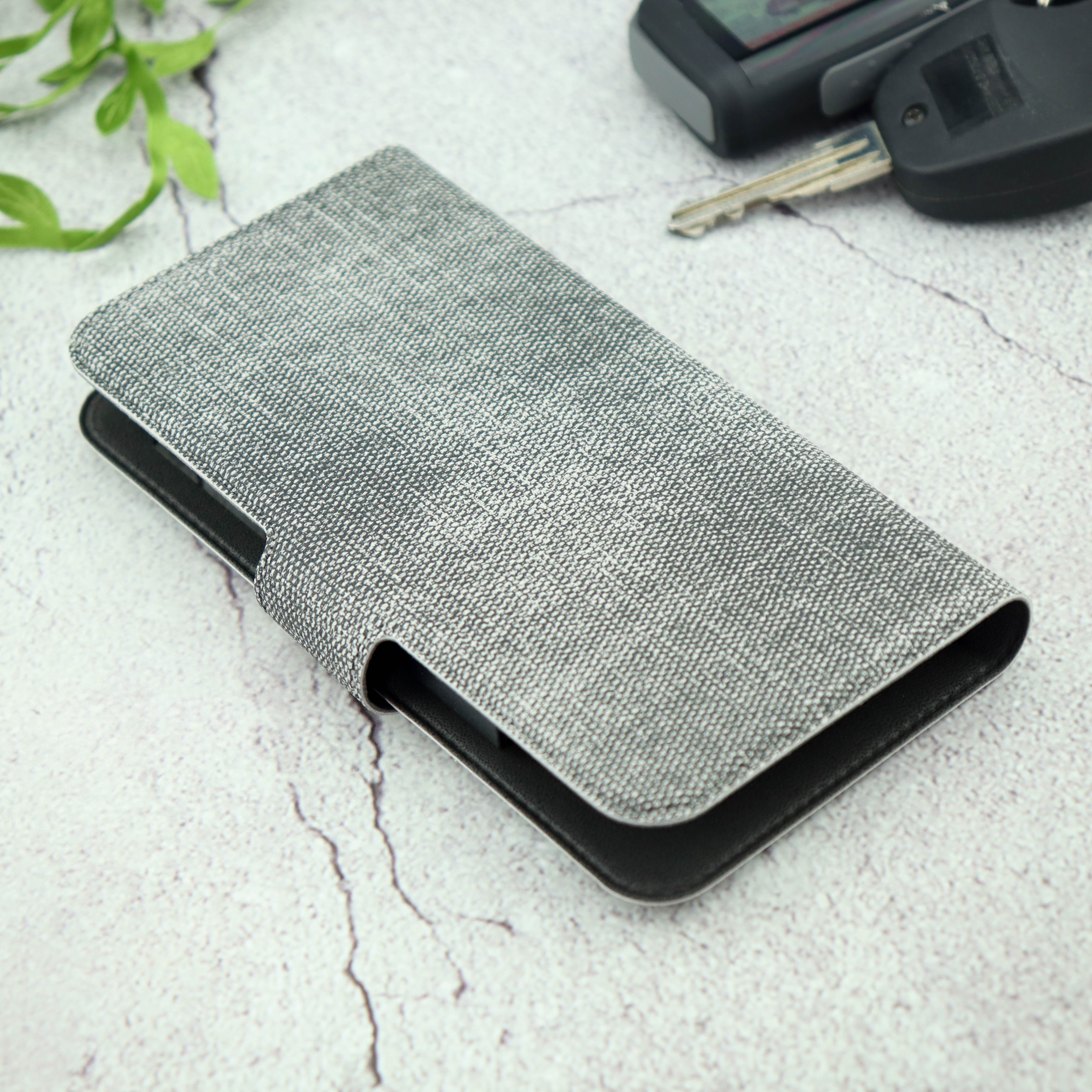 Чехол-книга универсальный джинсовый с боковым зажимом слайдер 4.5-5.0 серый
