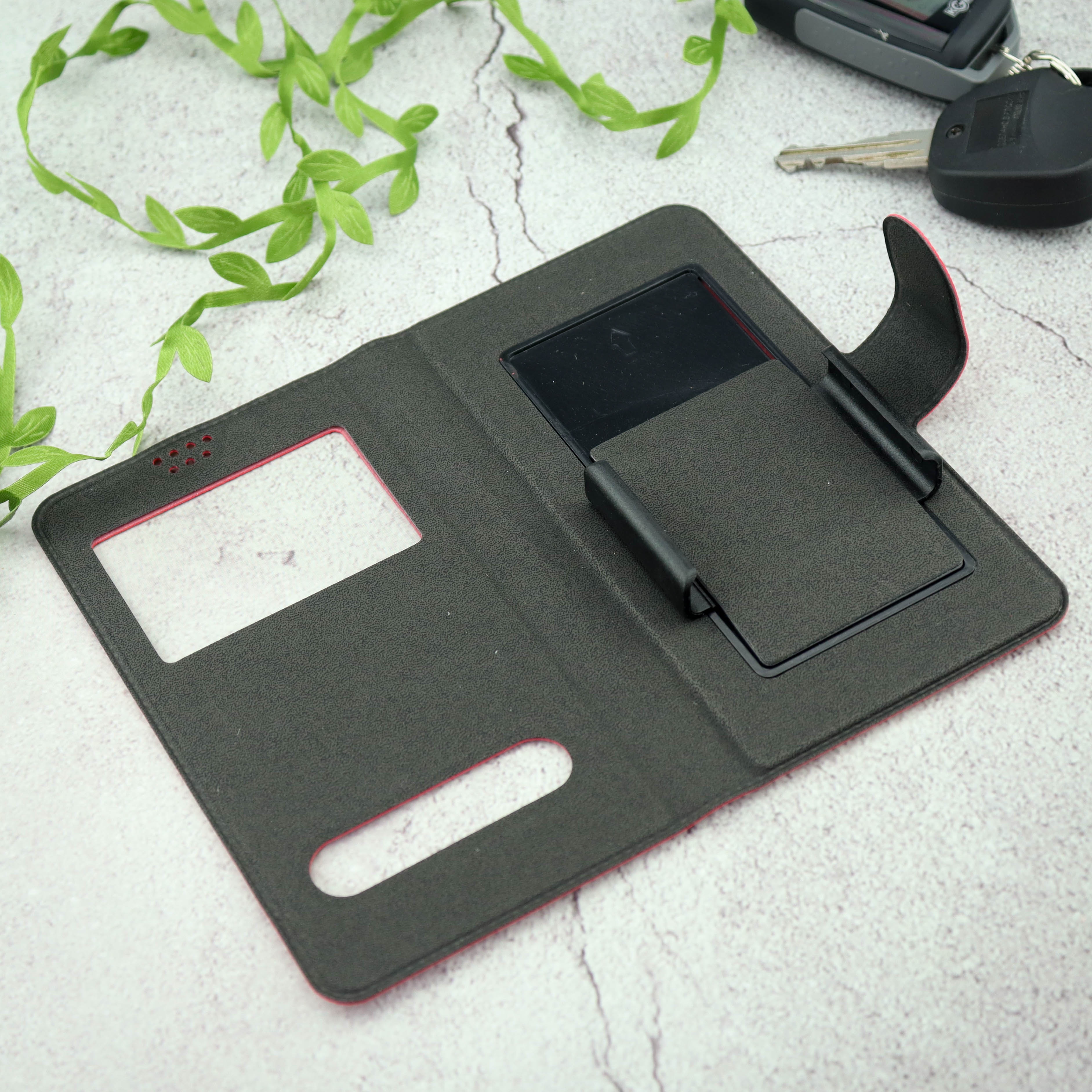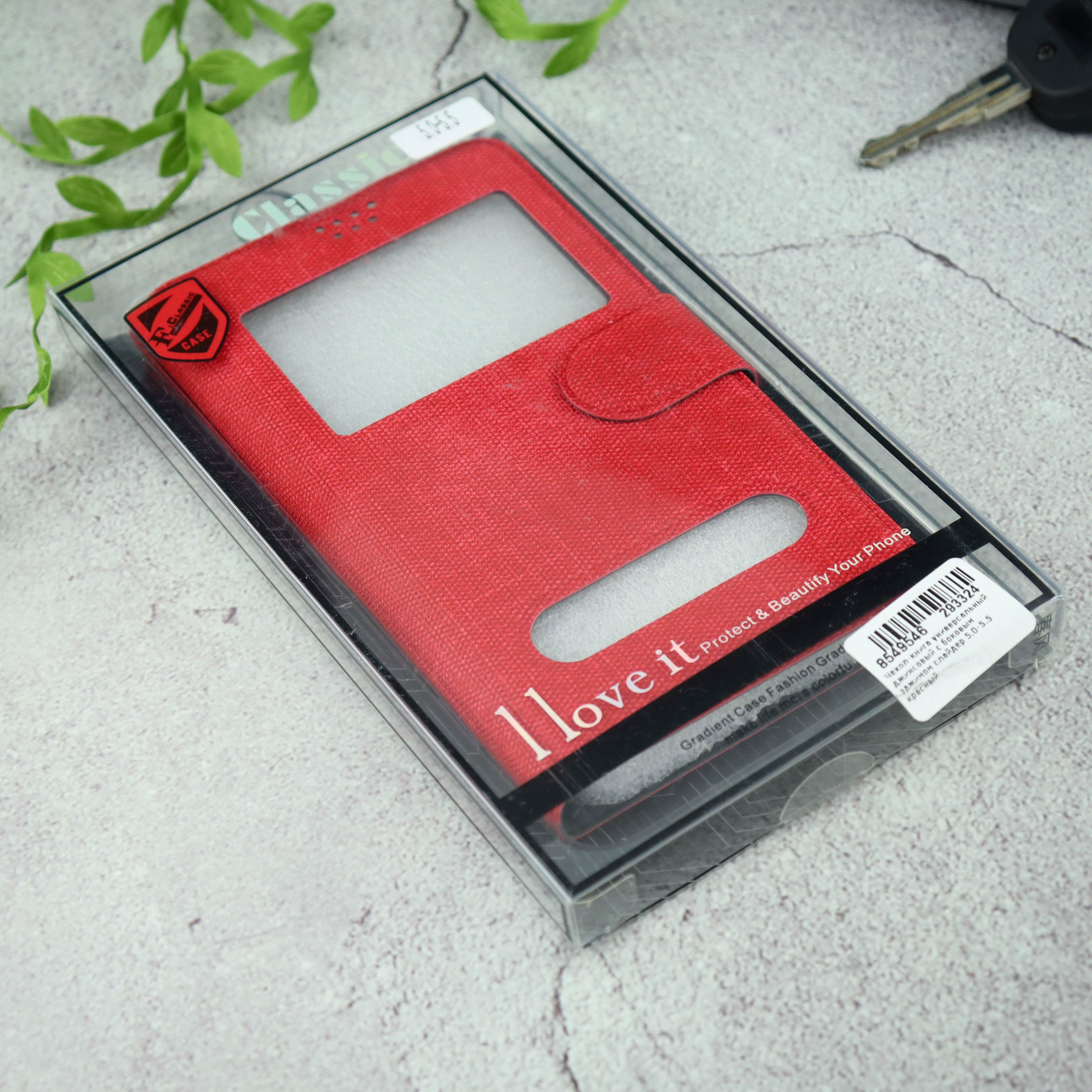 Чехол-книга универсальный джинсовый с боковым зажимом слайдер 5.0-5.5 красный