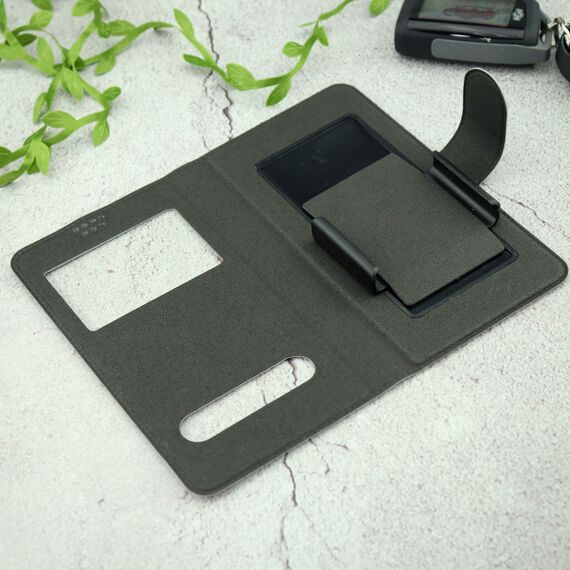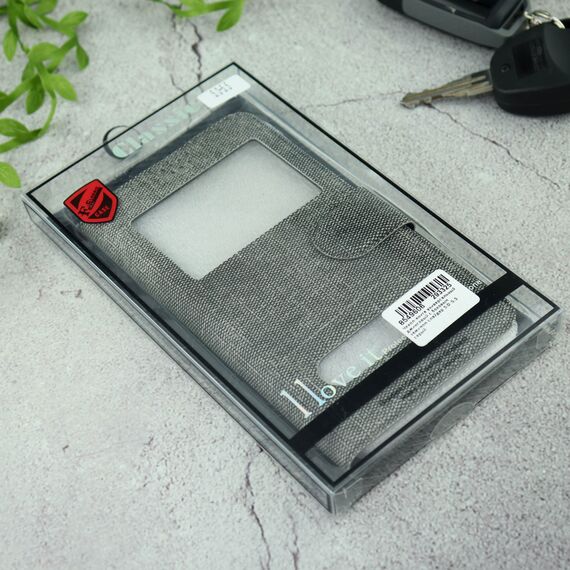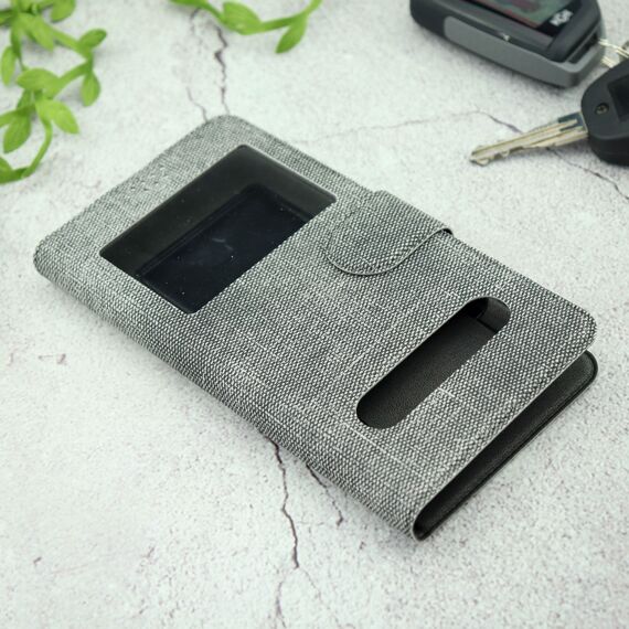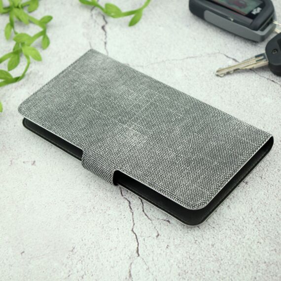Чехол-книга универсальный джинсовый с боковым зажимом слайдер 5.0-5.5 серый