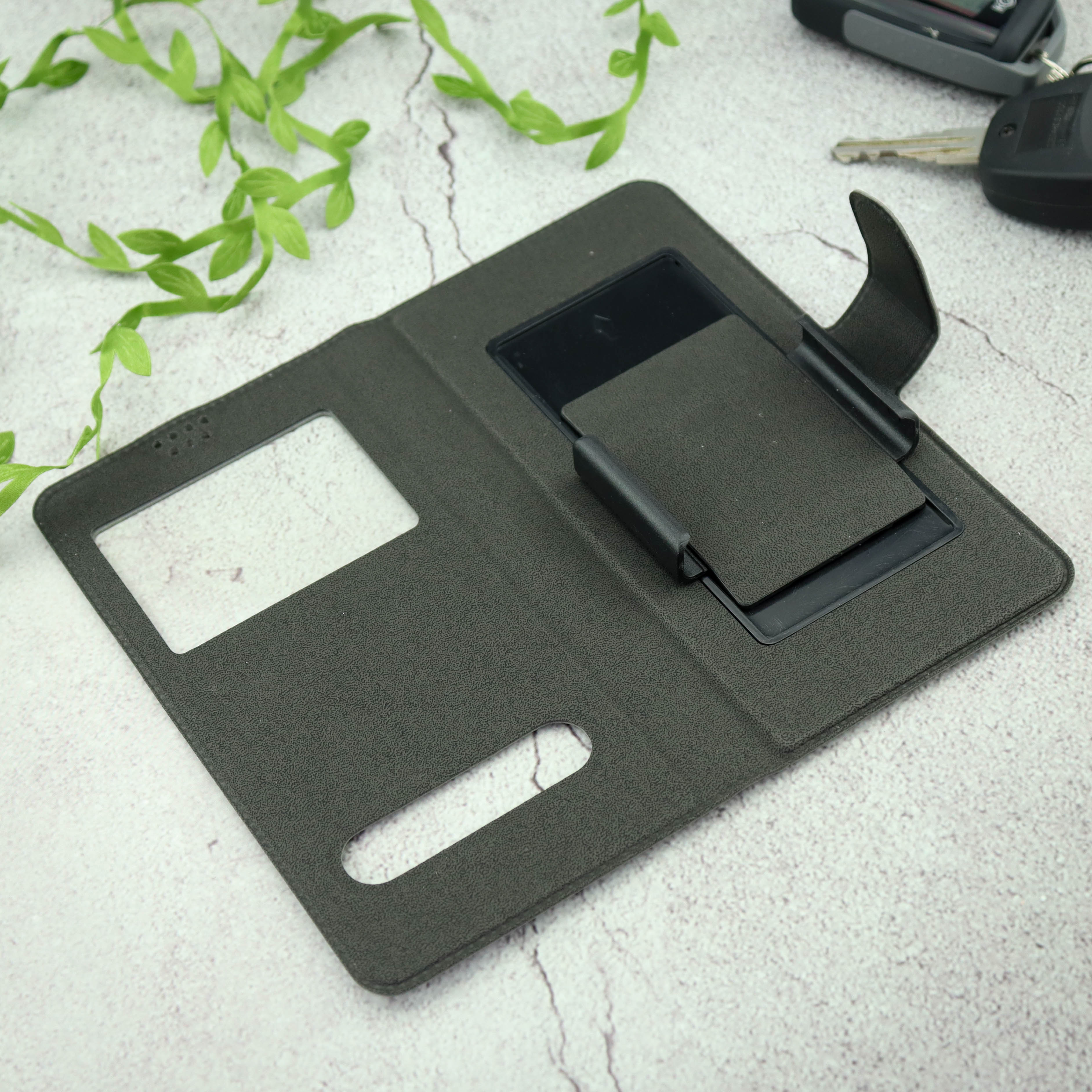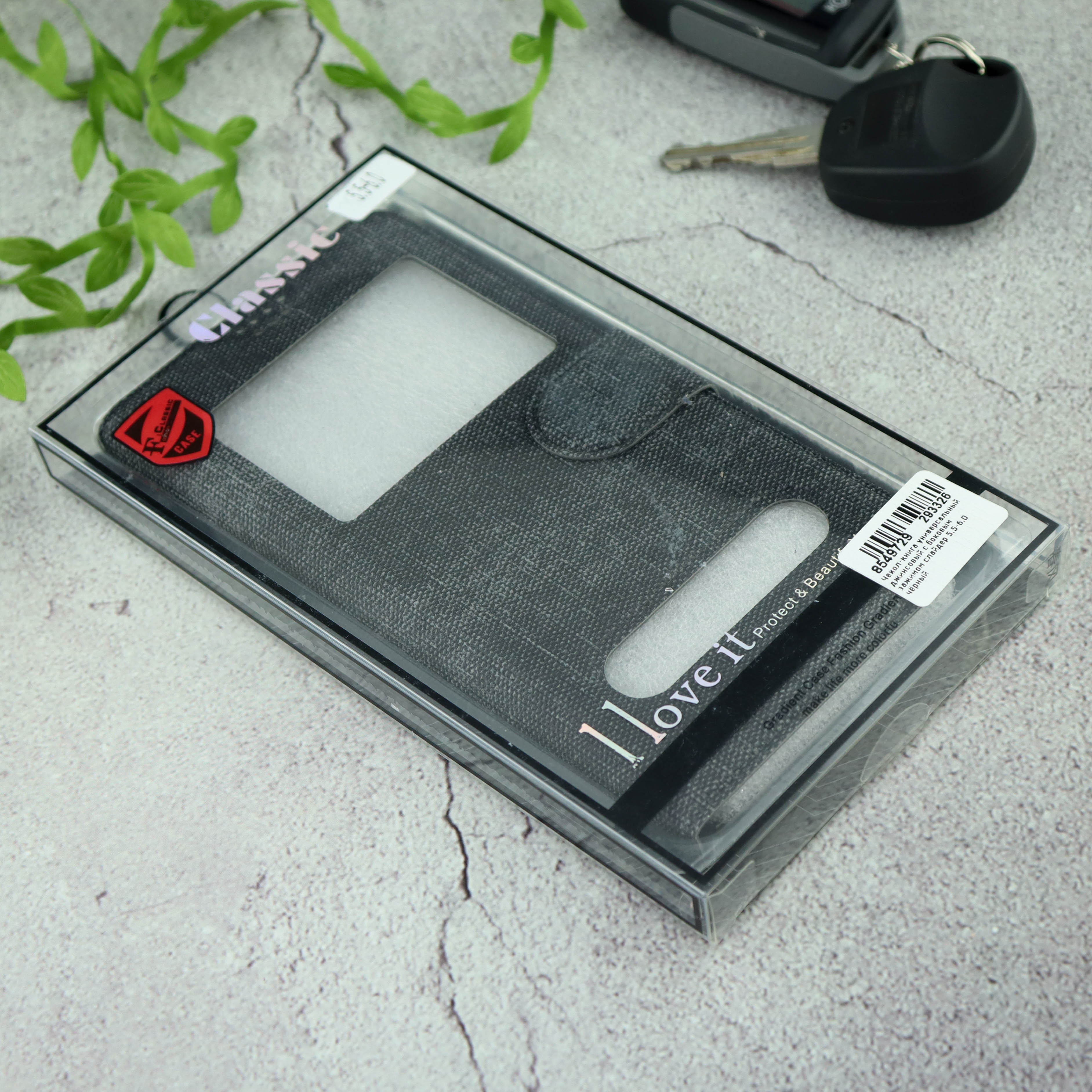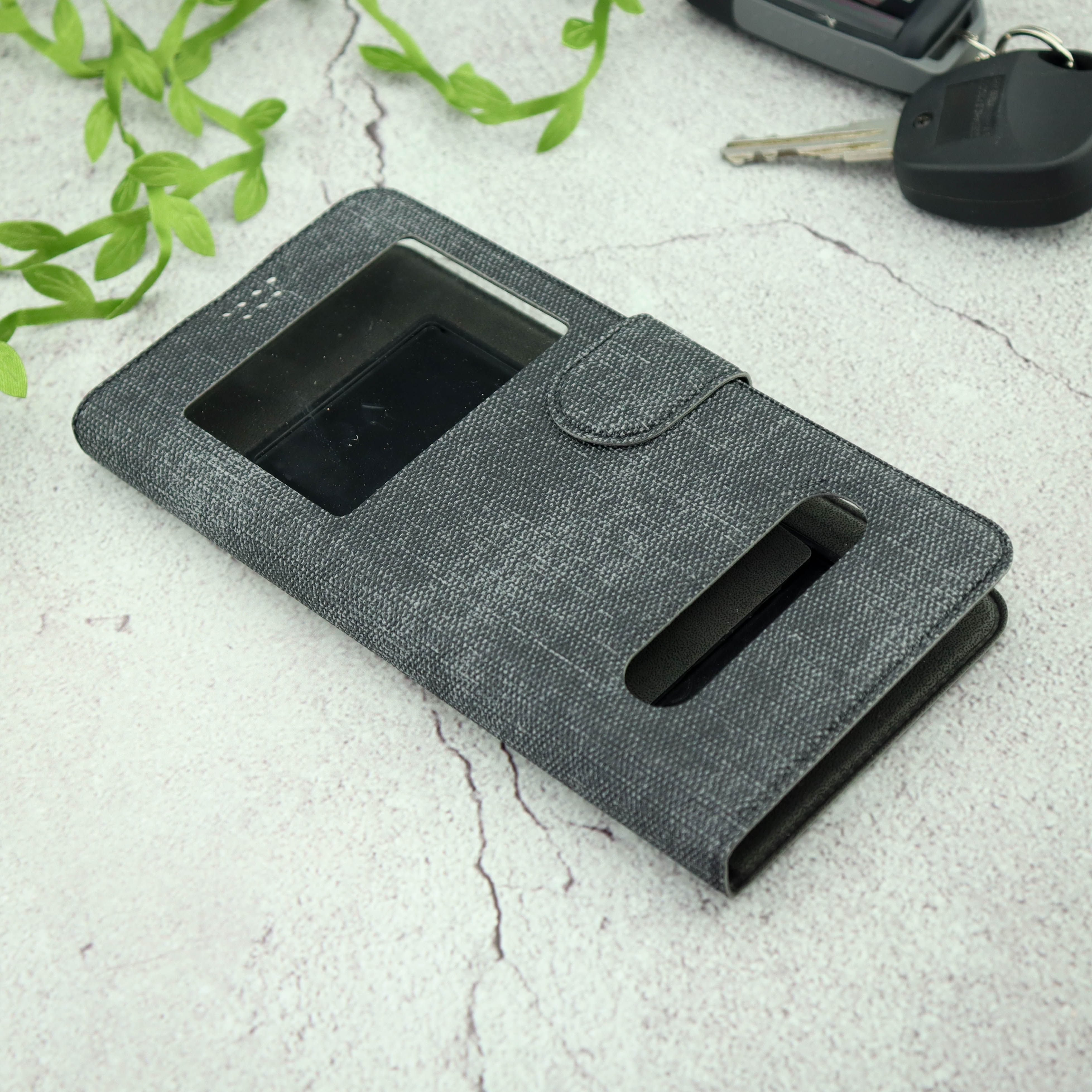 Чехол-книга универсальный джинсовый с боковым зажимом слайдер 5.5-6.0 чёрный