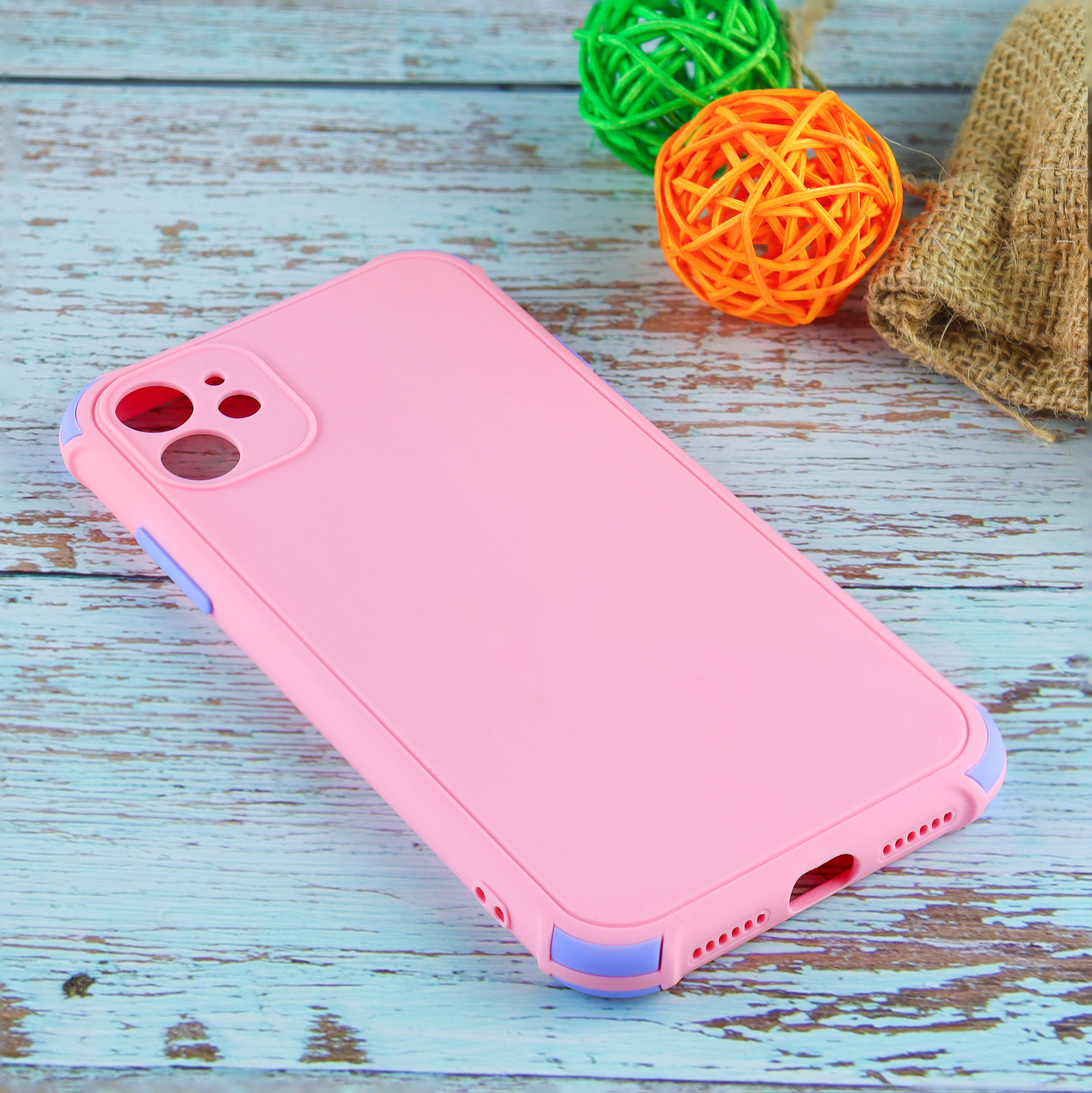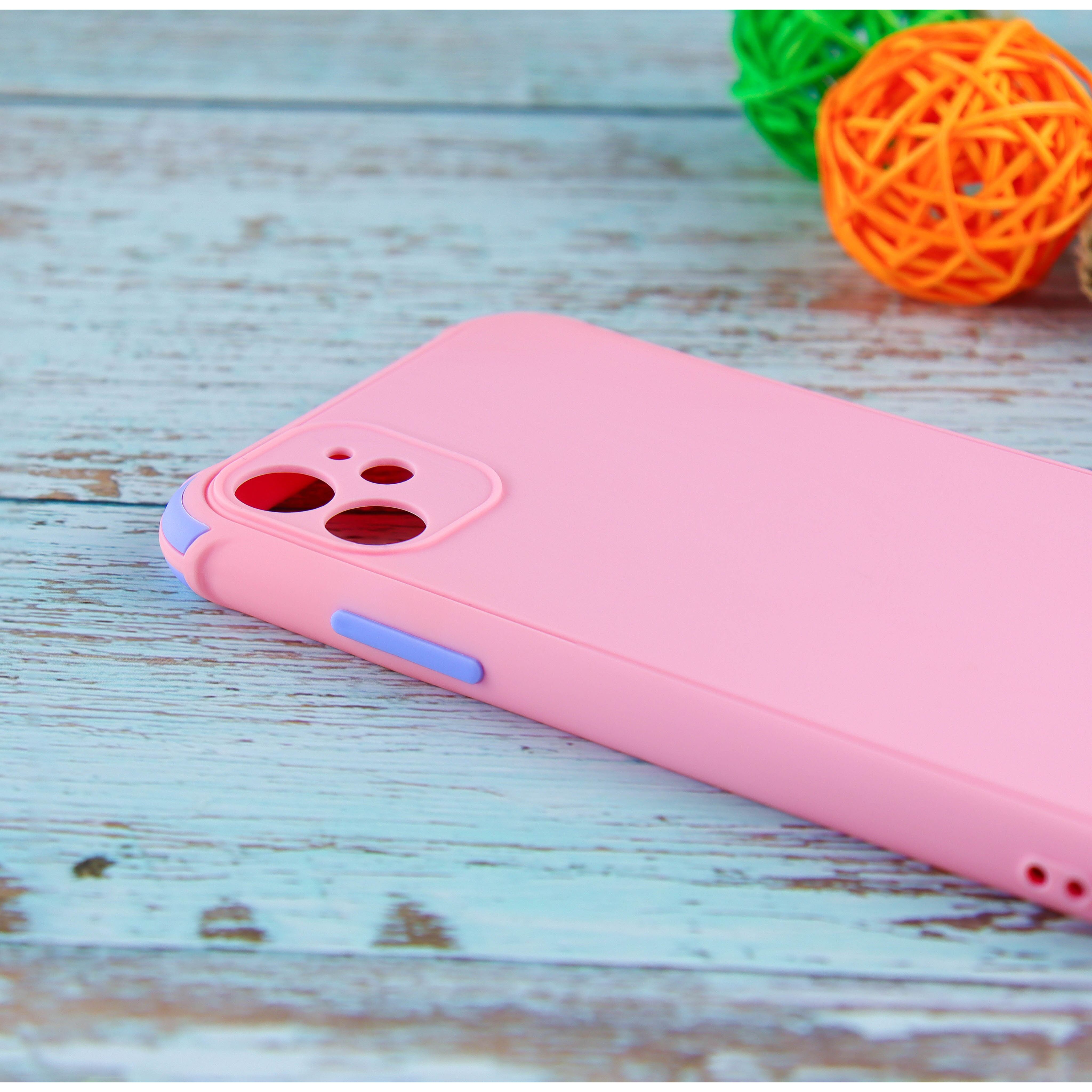 Чехол накладка силикон для iPhone 11 цветные углы и кнопки (012423) розовый