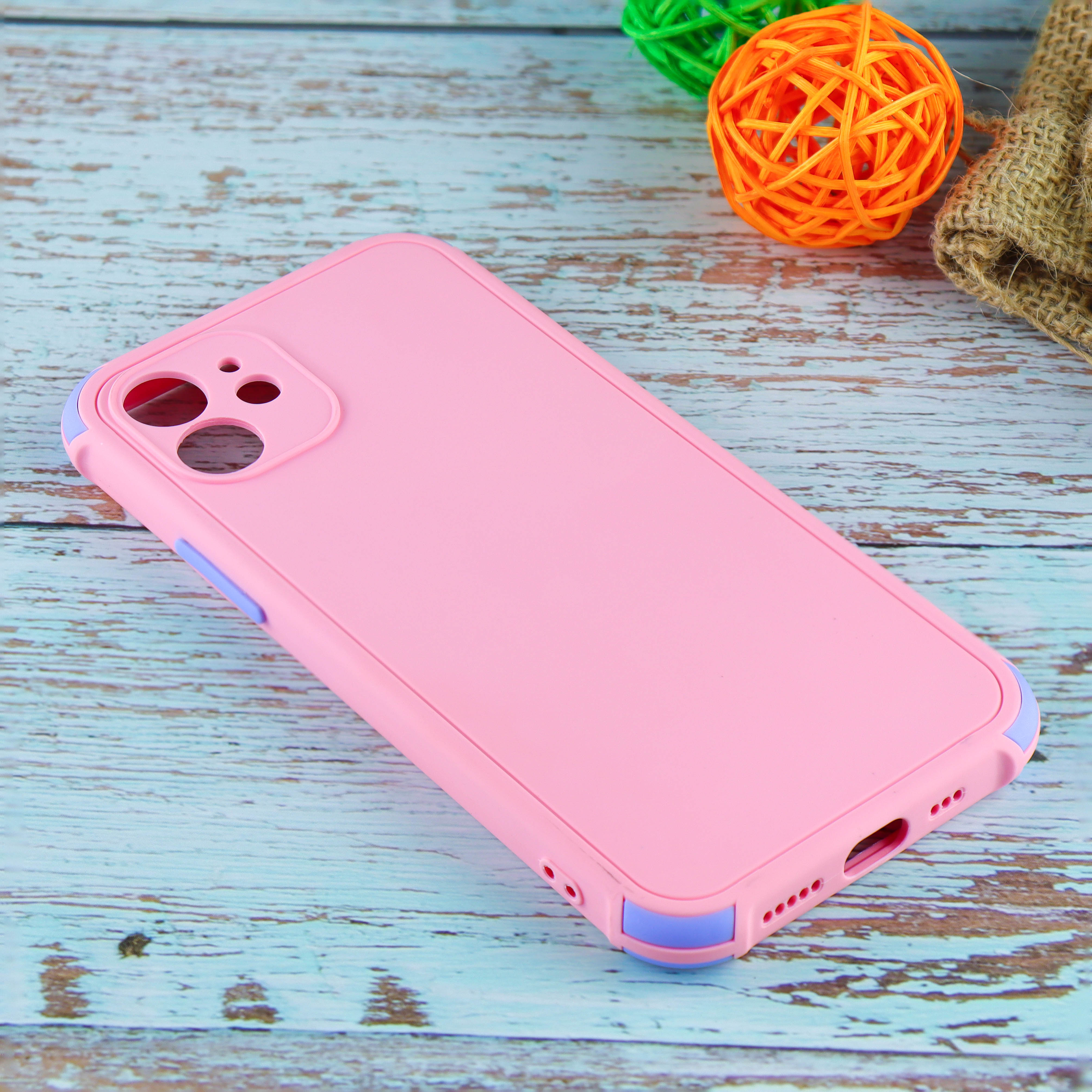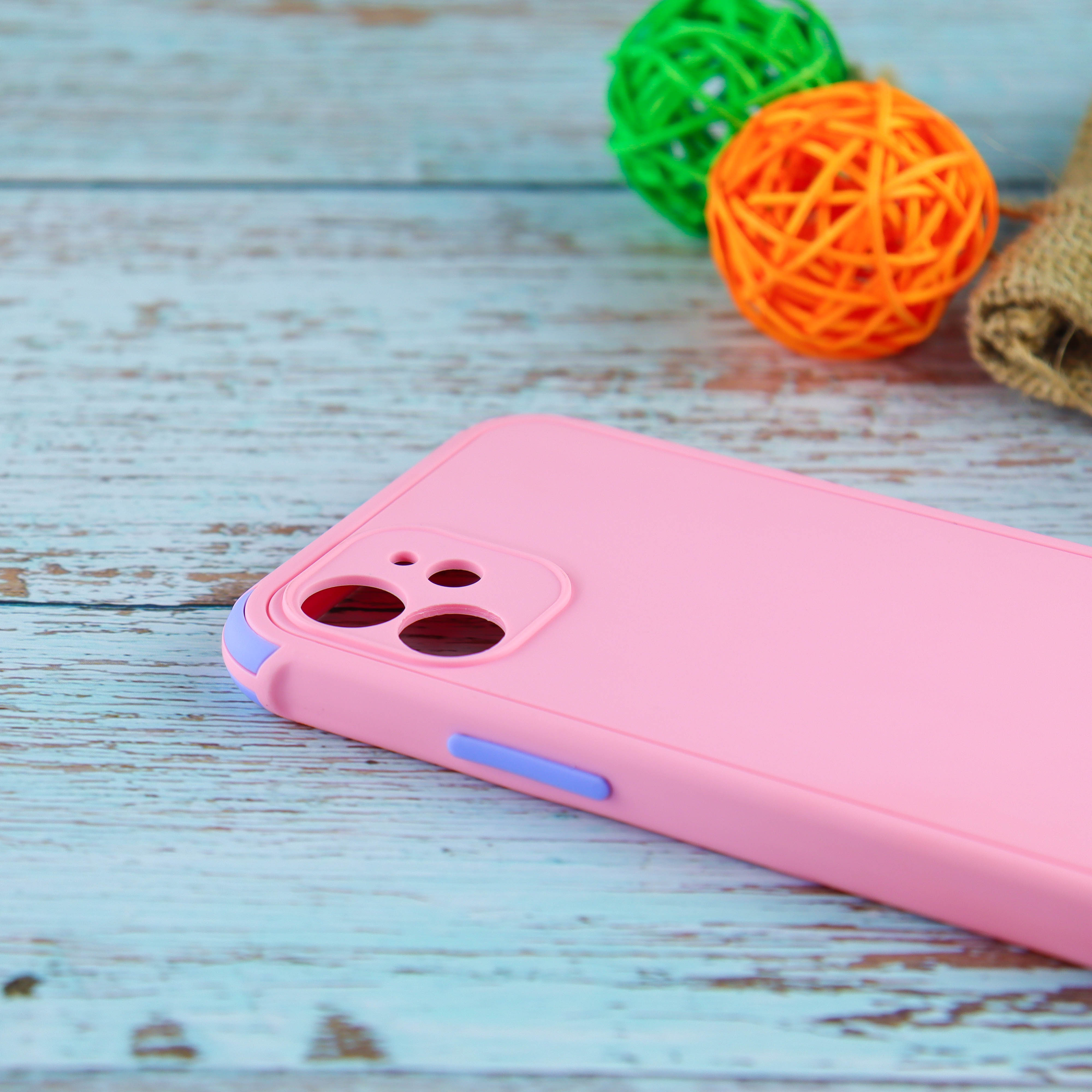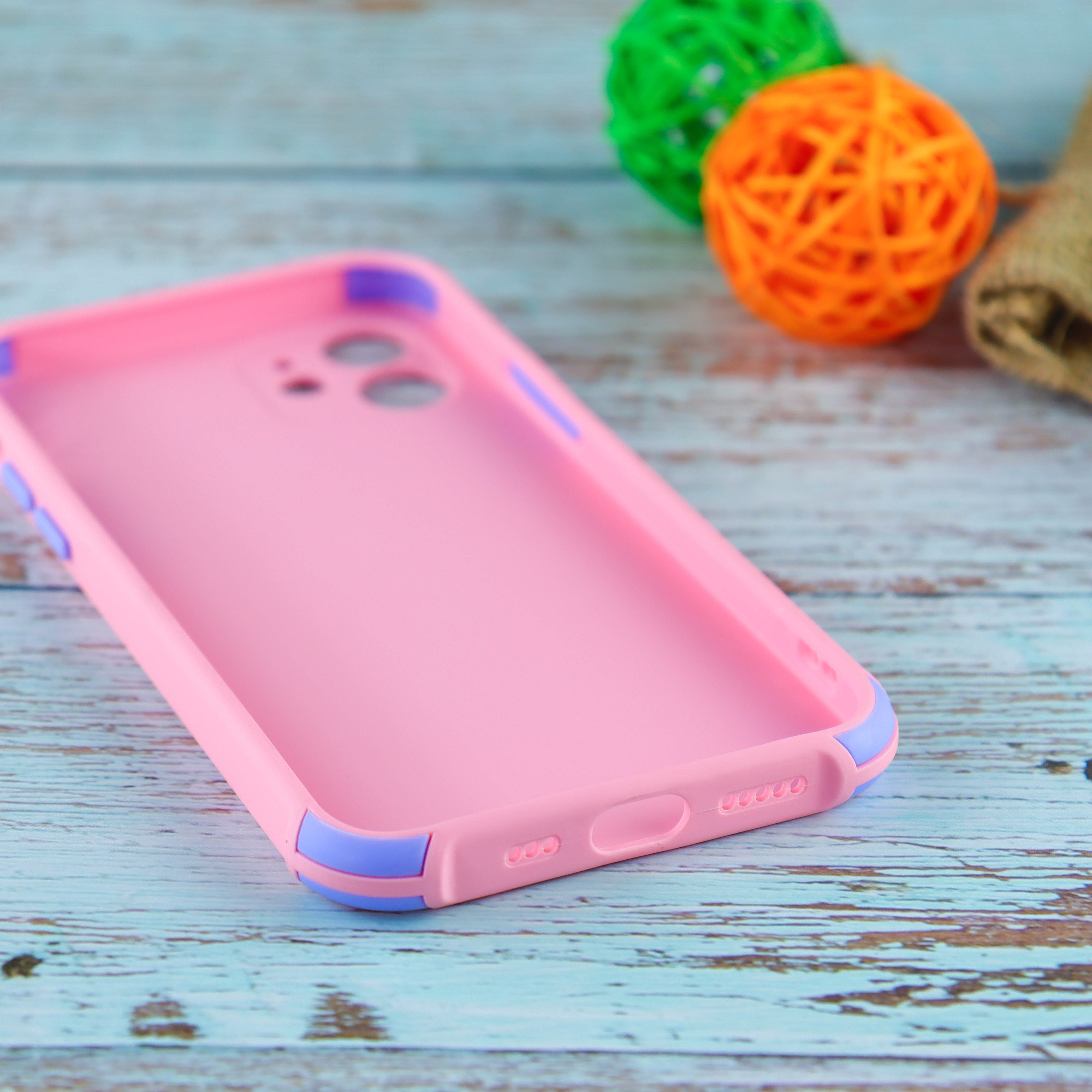 Чехол накладка силикон для iPhone 12 цветные углы и кнопки (012423) розовый