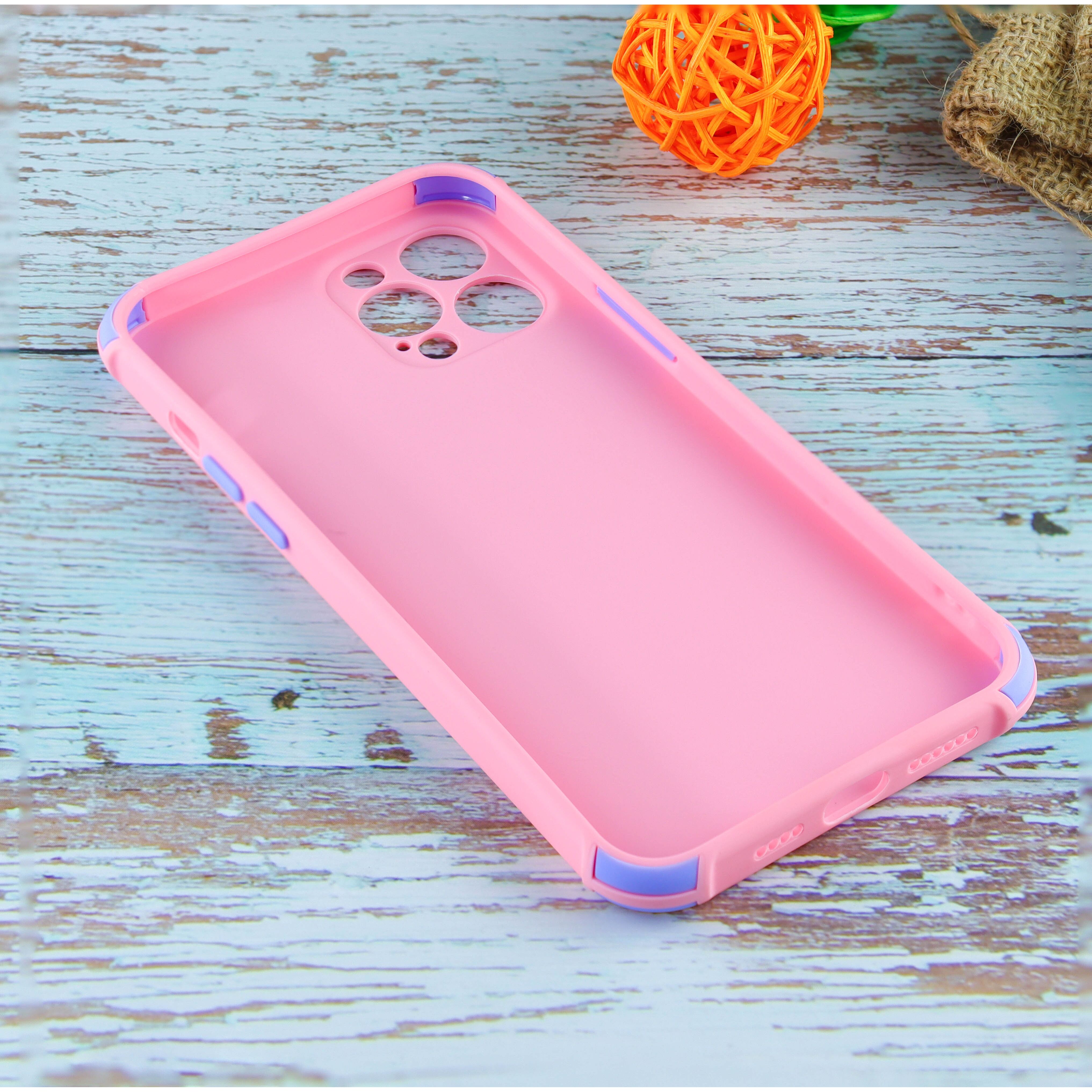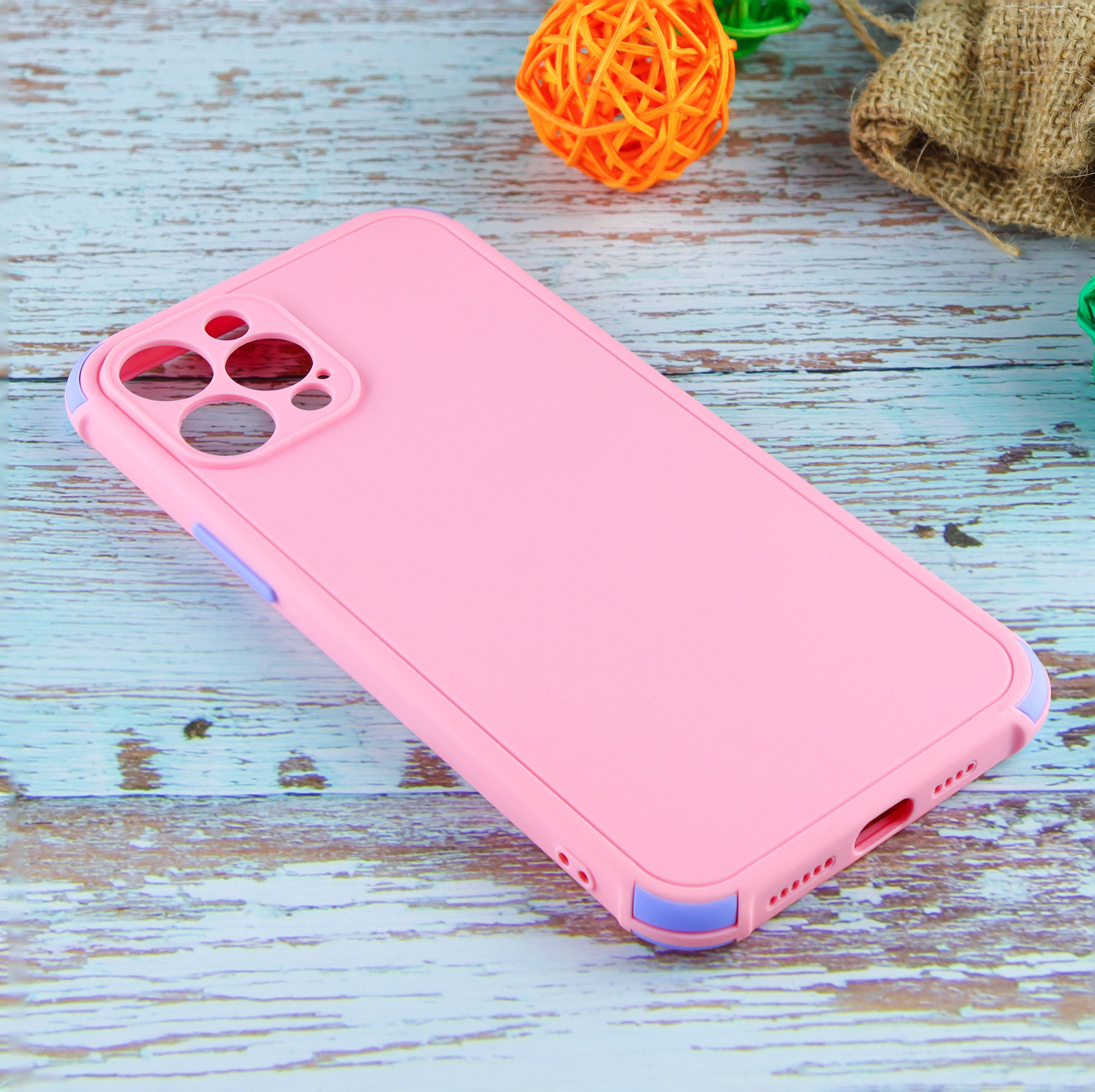 Чехол накладка силикон для iPhone 12 Pro Max цветные углы и кнопки (012423) розовый