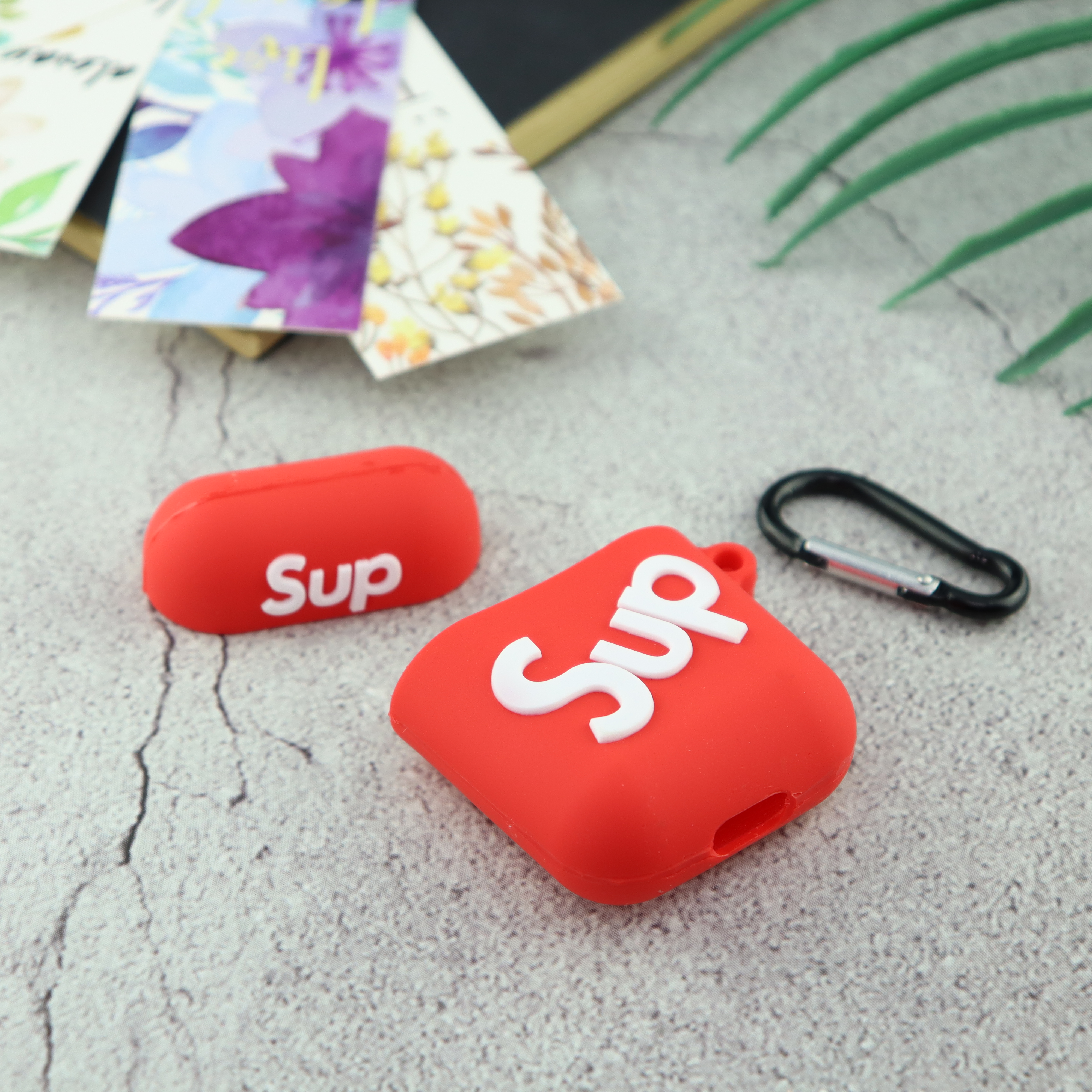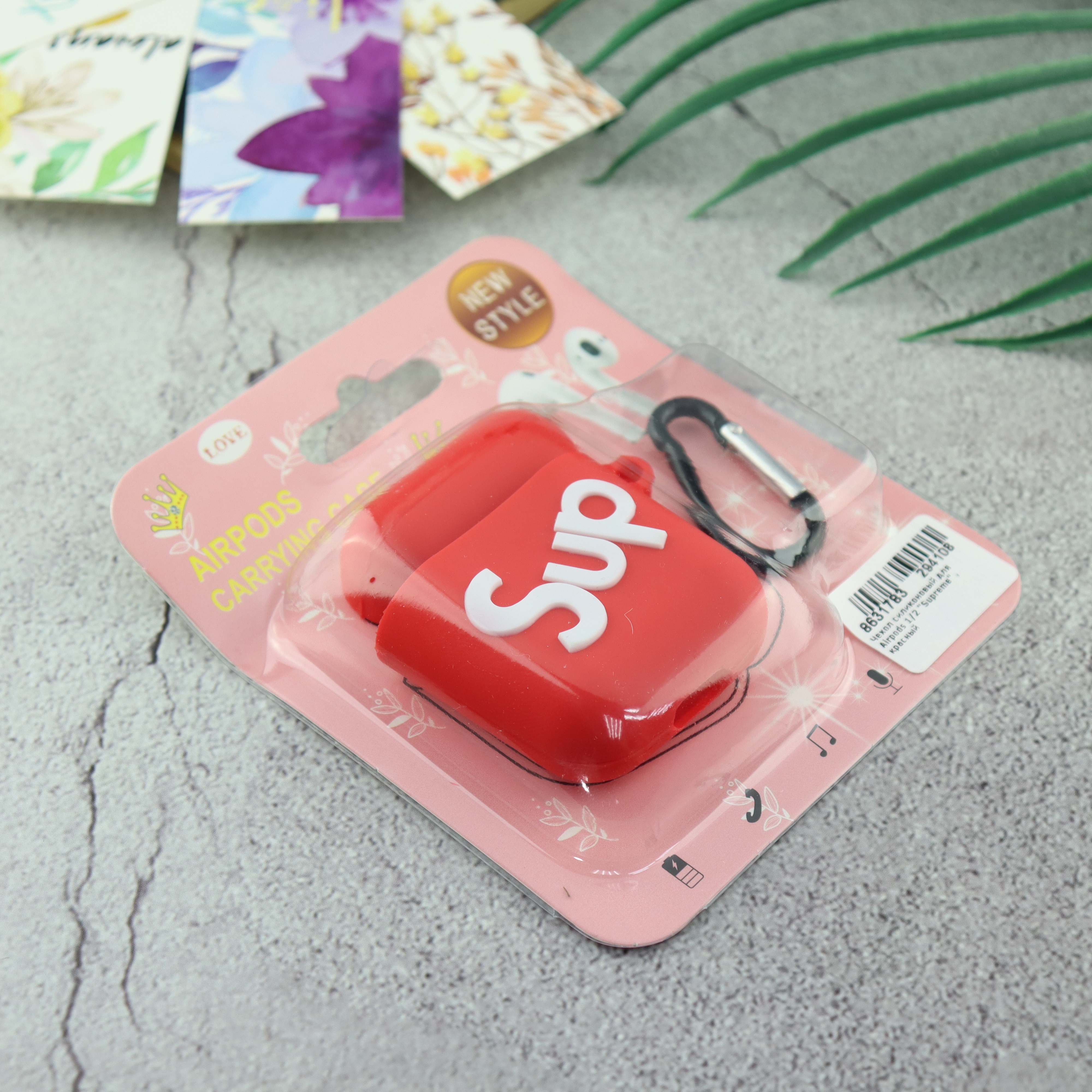 Чехол силиконовый для Airpods 1/2 "Supreme" , красный