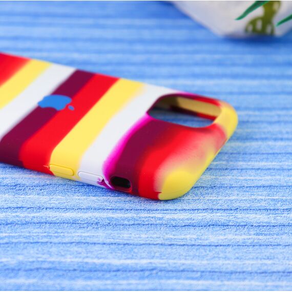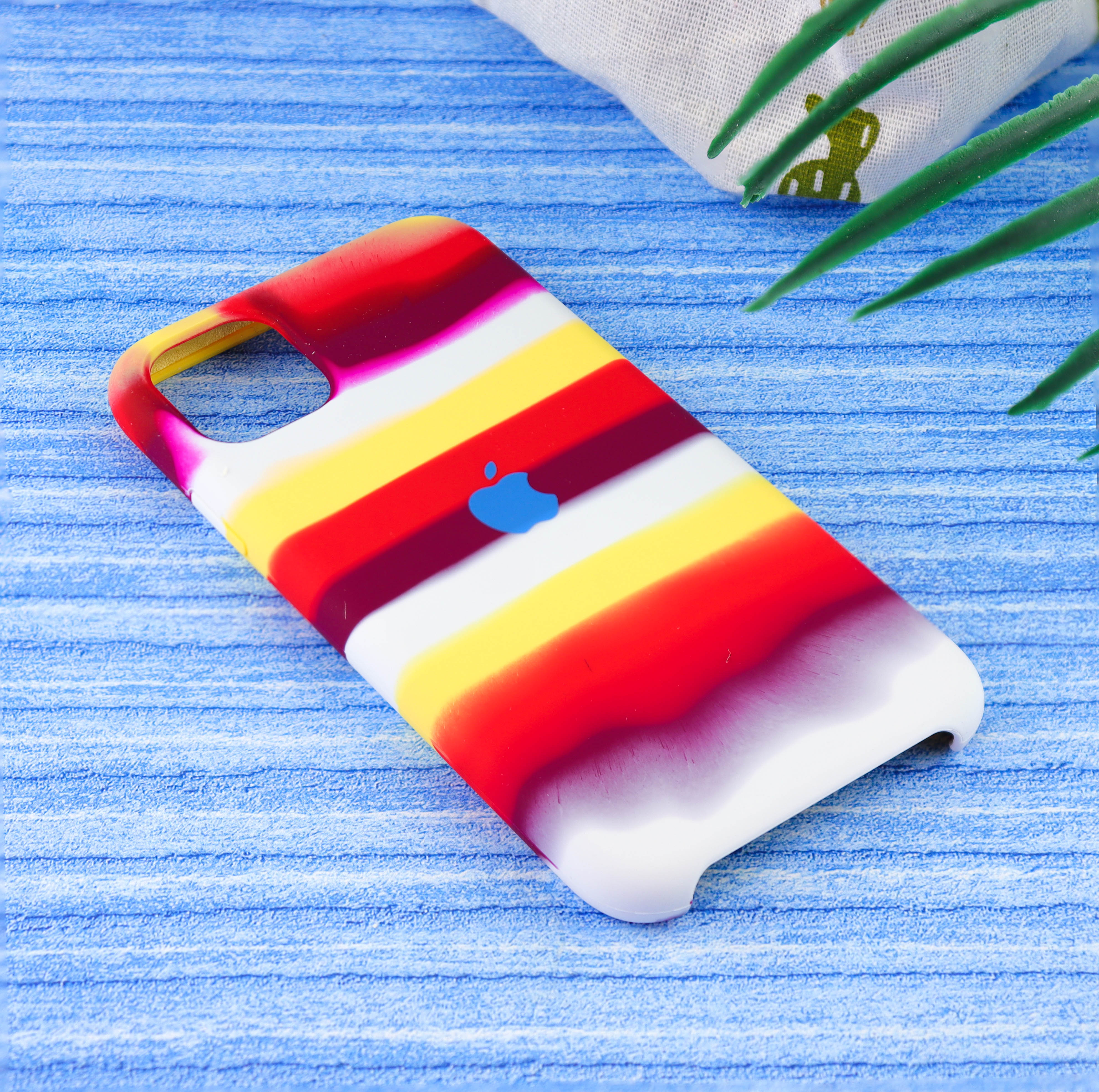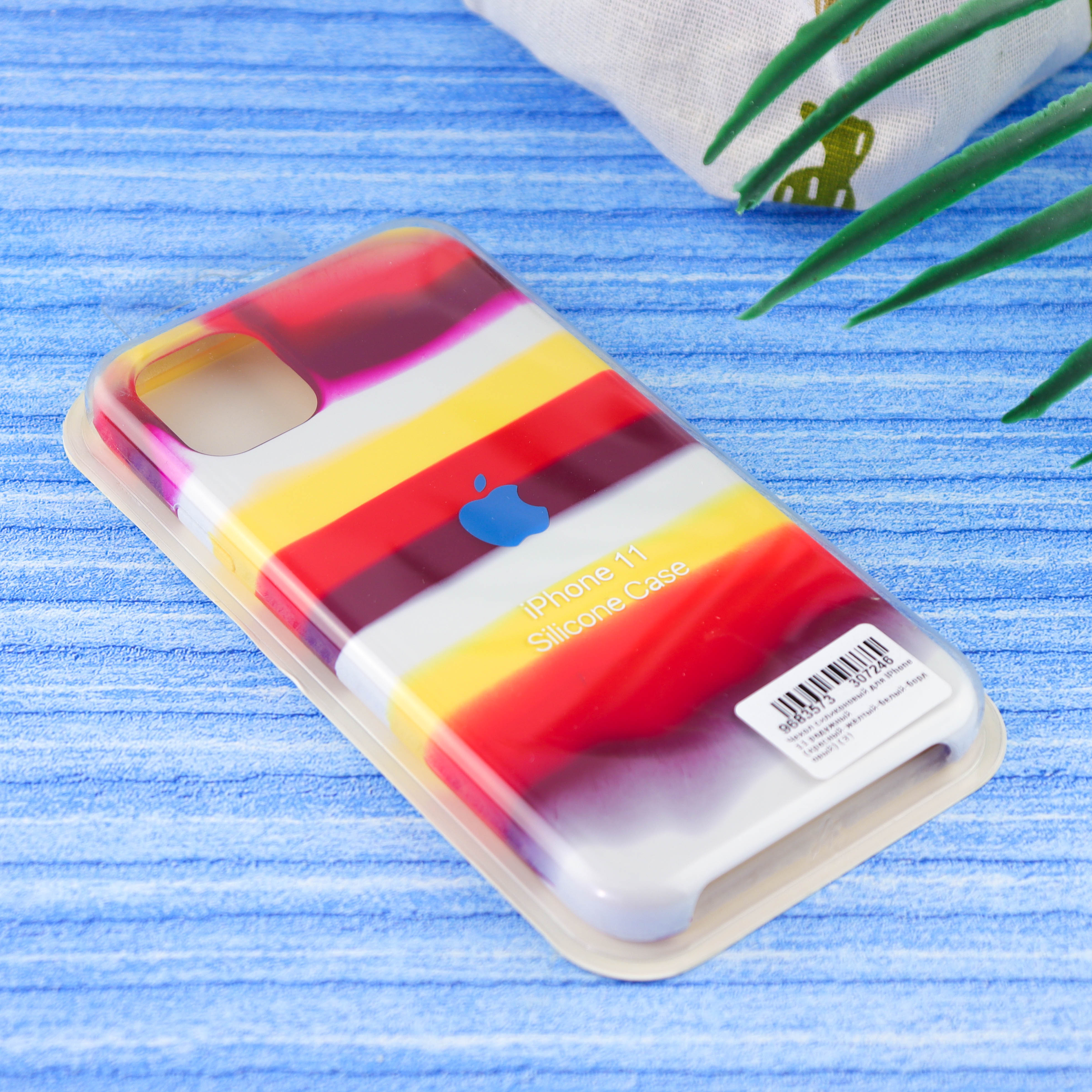Чехол силиконовый для iPhone 11 радужный (красный-жёлтый-белый-бордовый) (3)