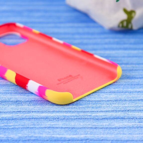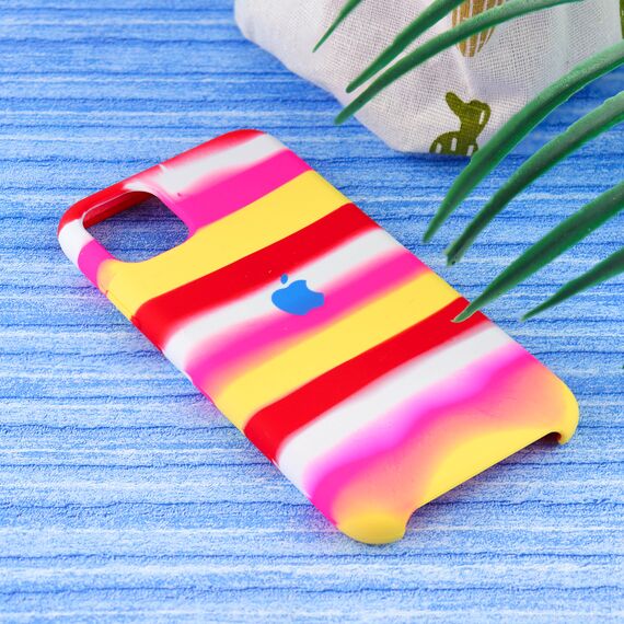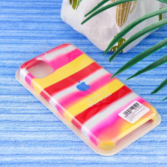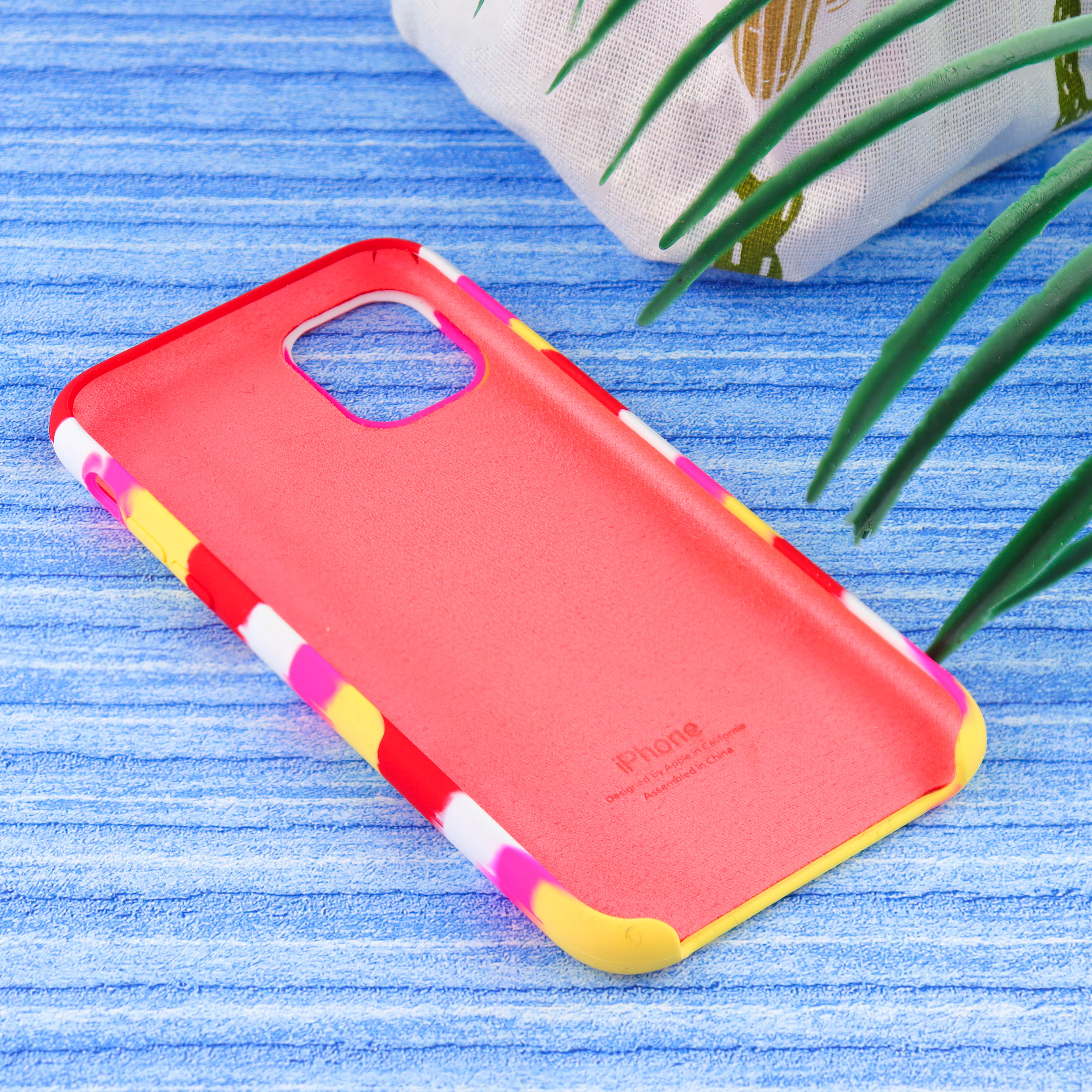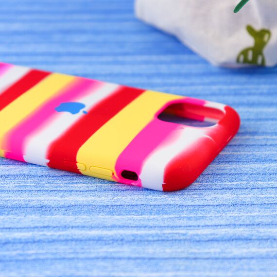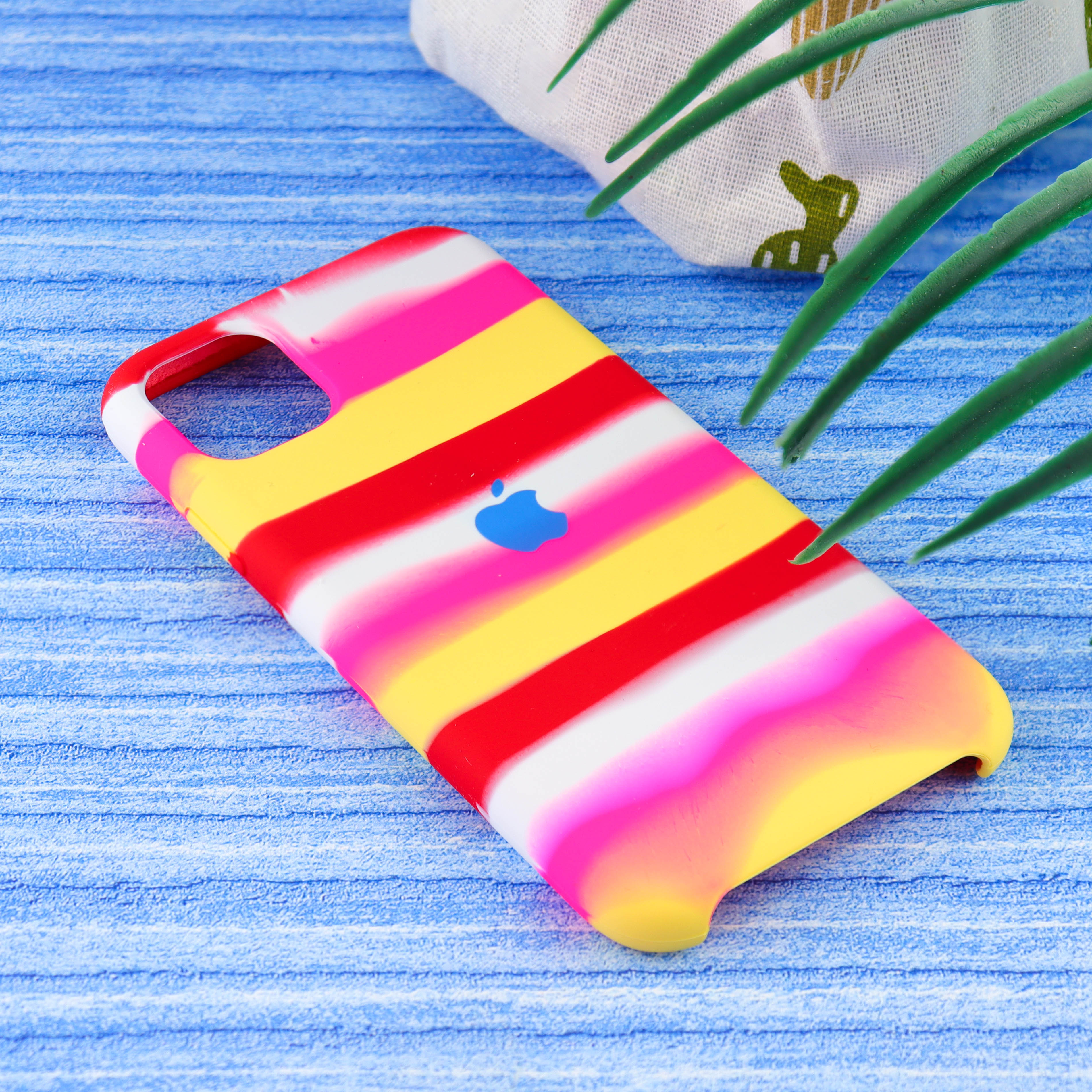 Чехол силиконовый для iPhone 11 радужный (красный-жёлтый-белый-розовый) (4)