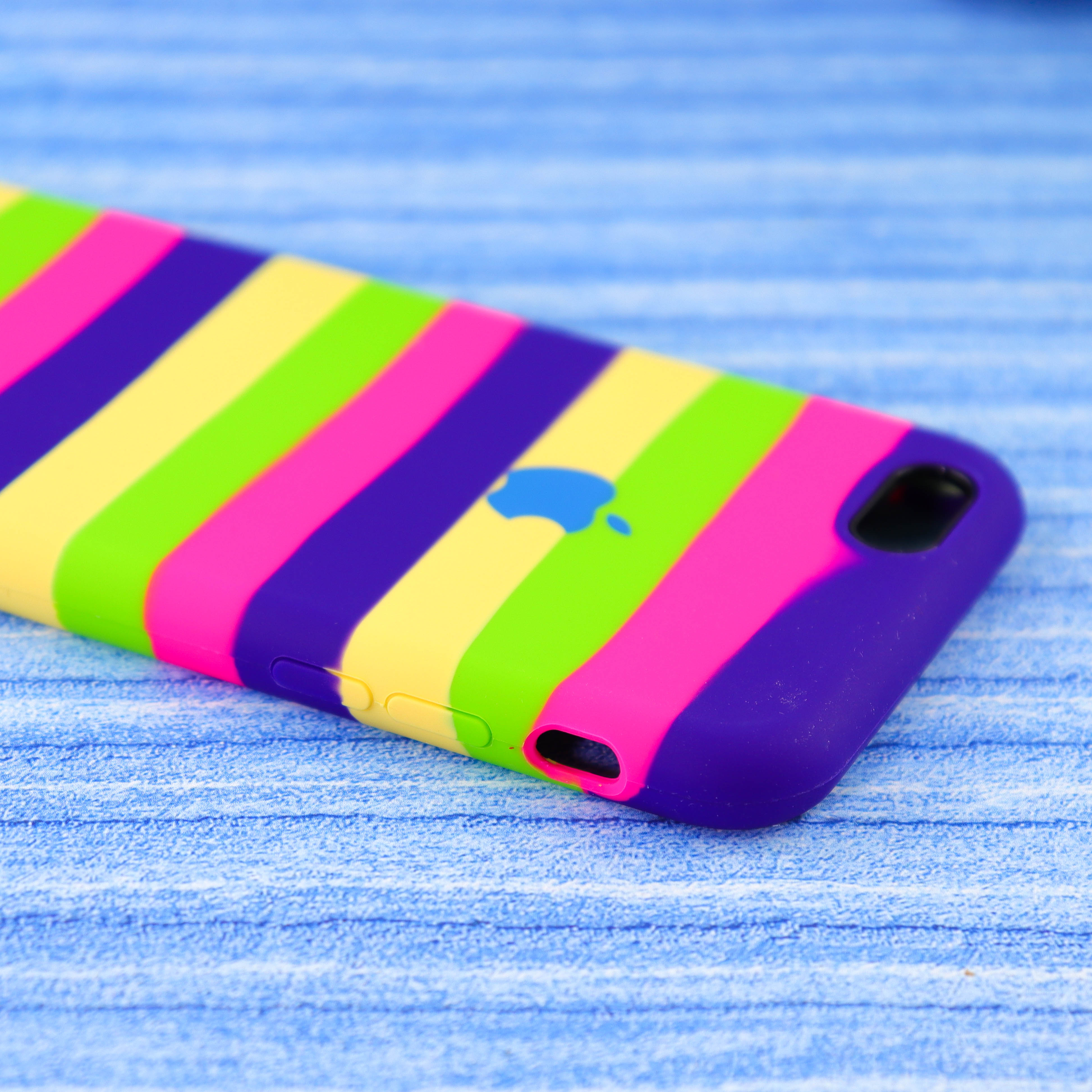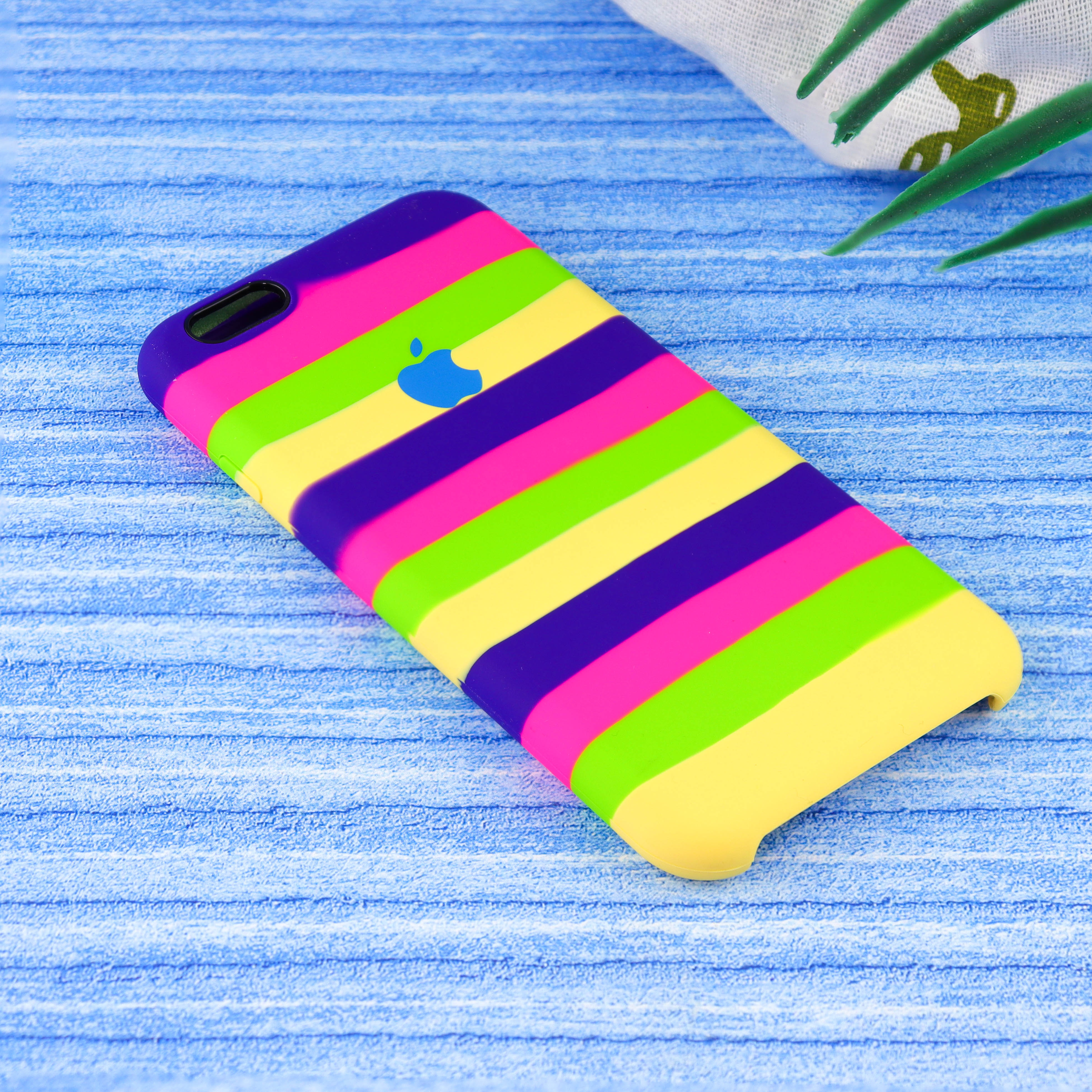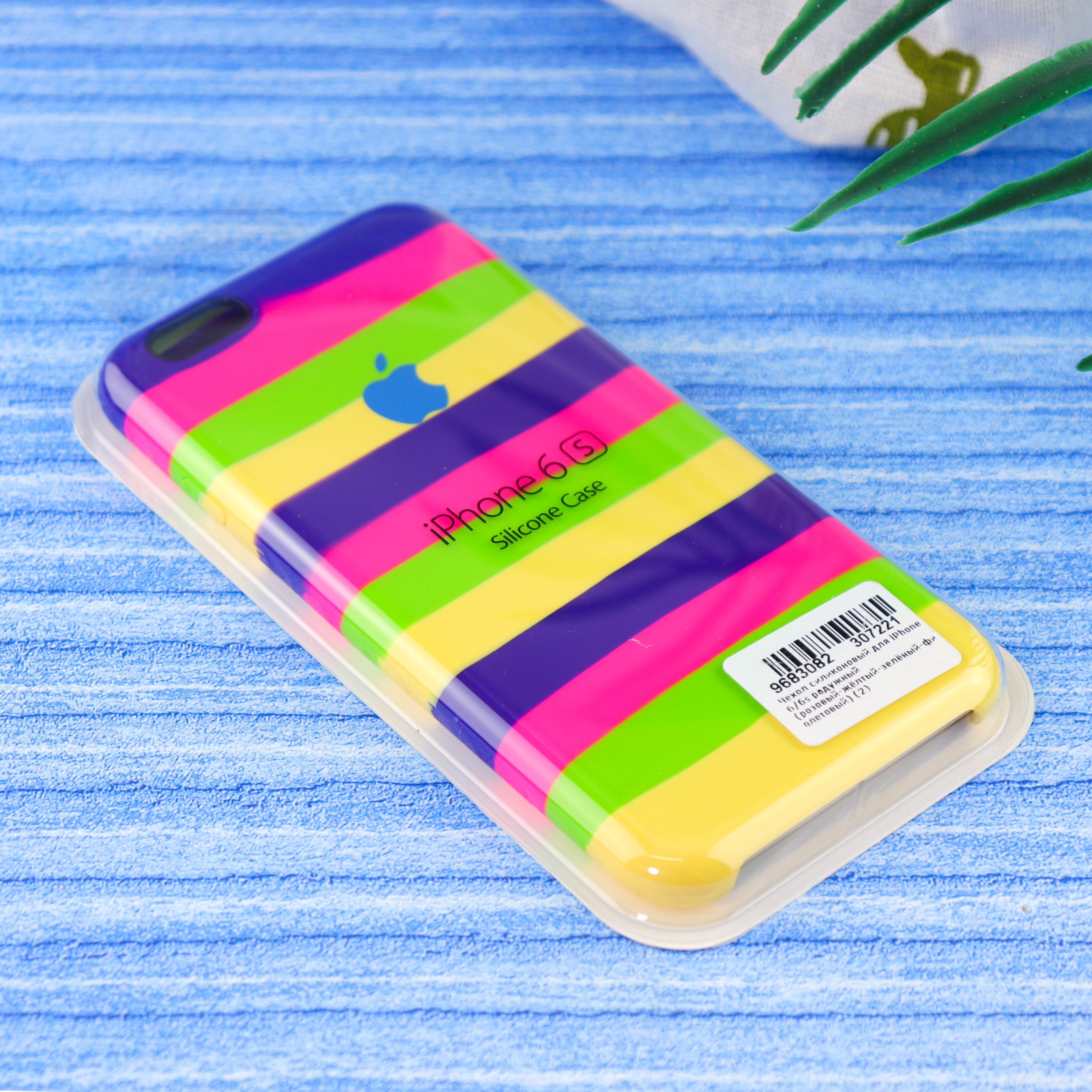 Чехол силиконовый для iPhone 6/6s радужный (розовый-жёлтый-зелёный-фиолетовый) (2)