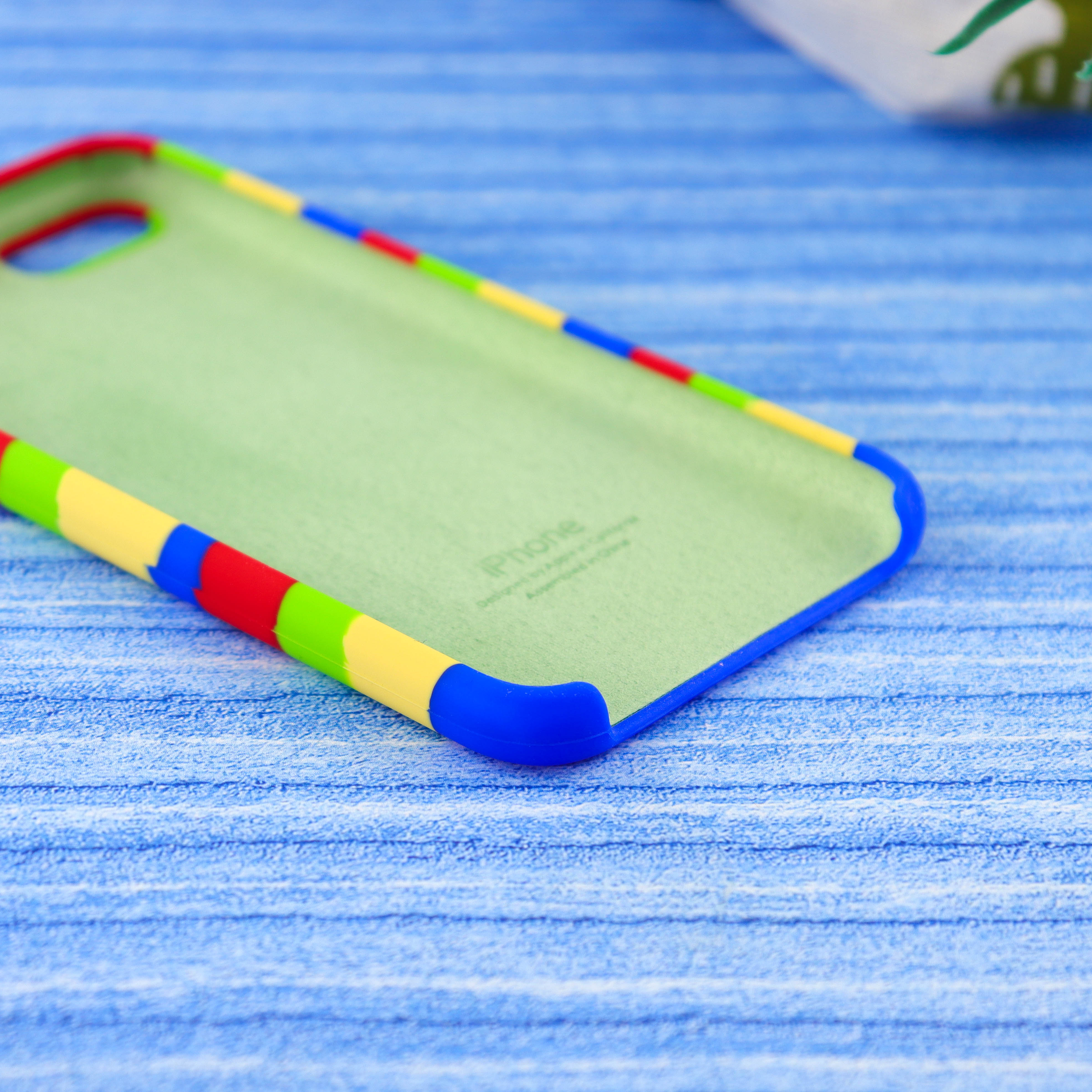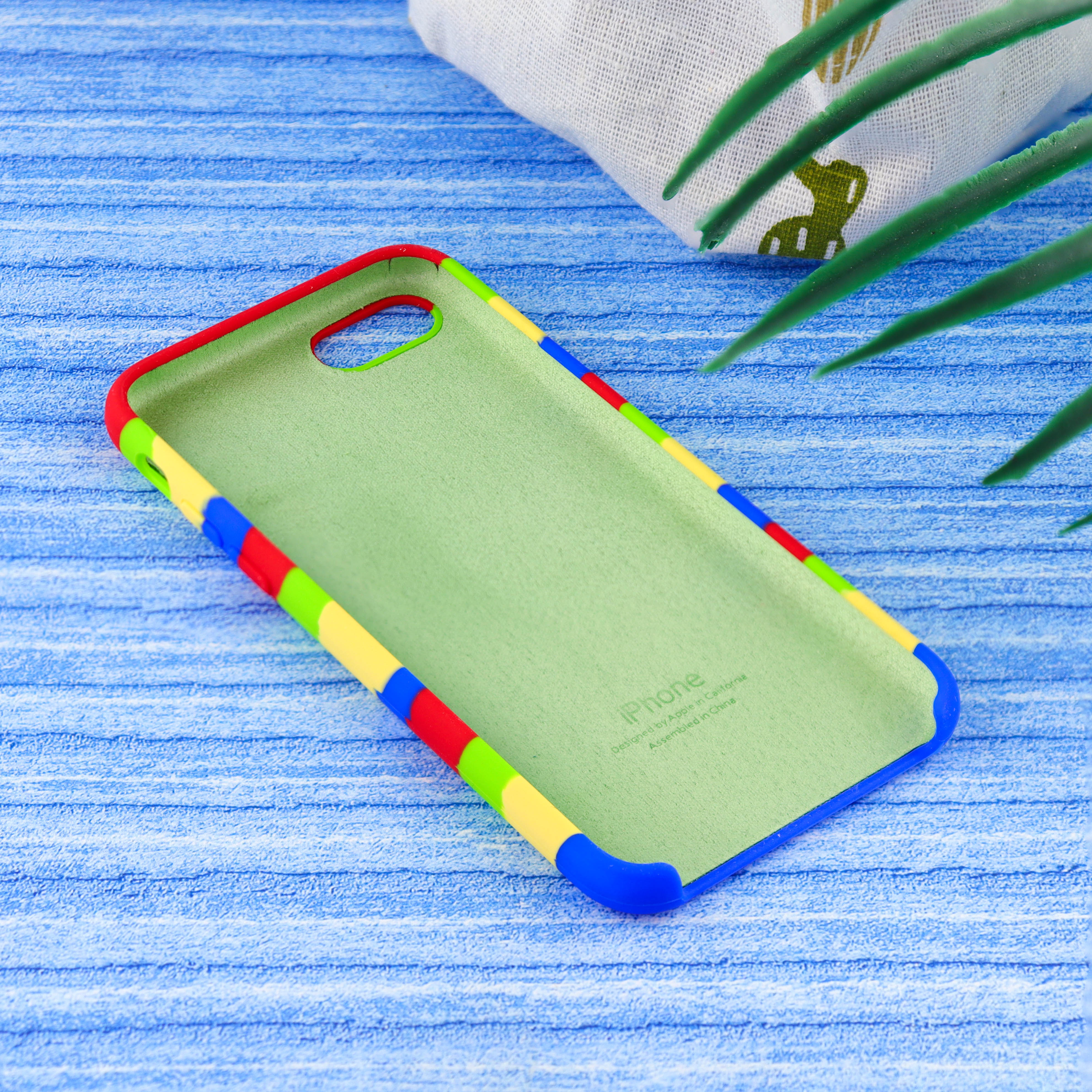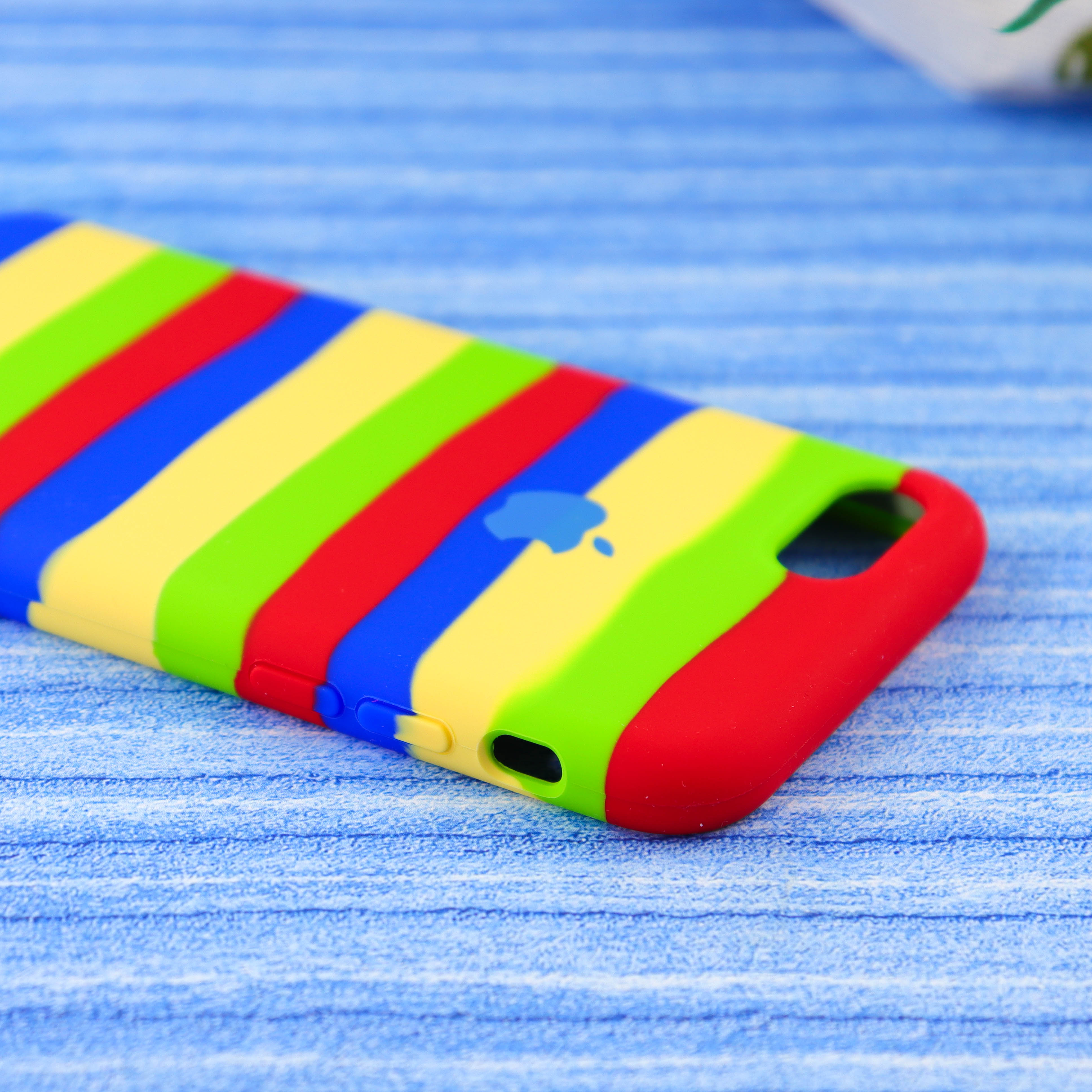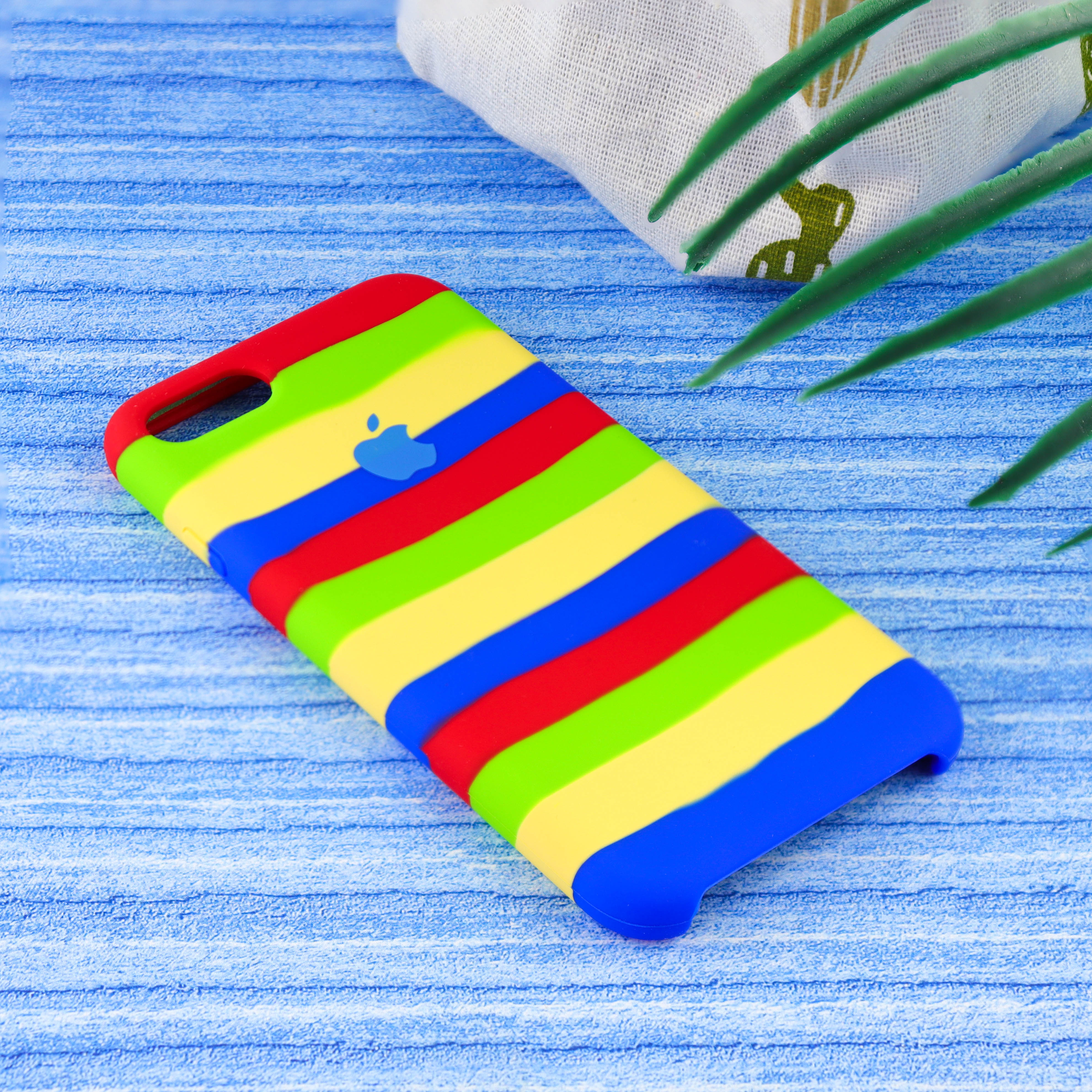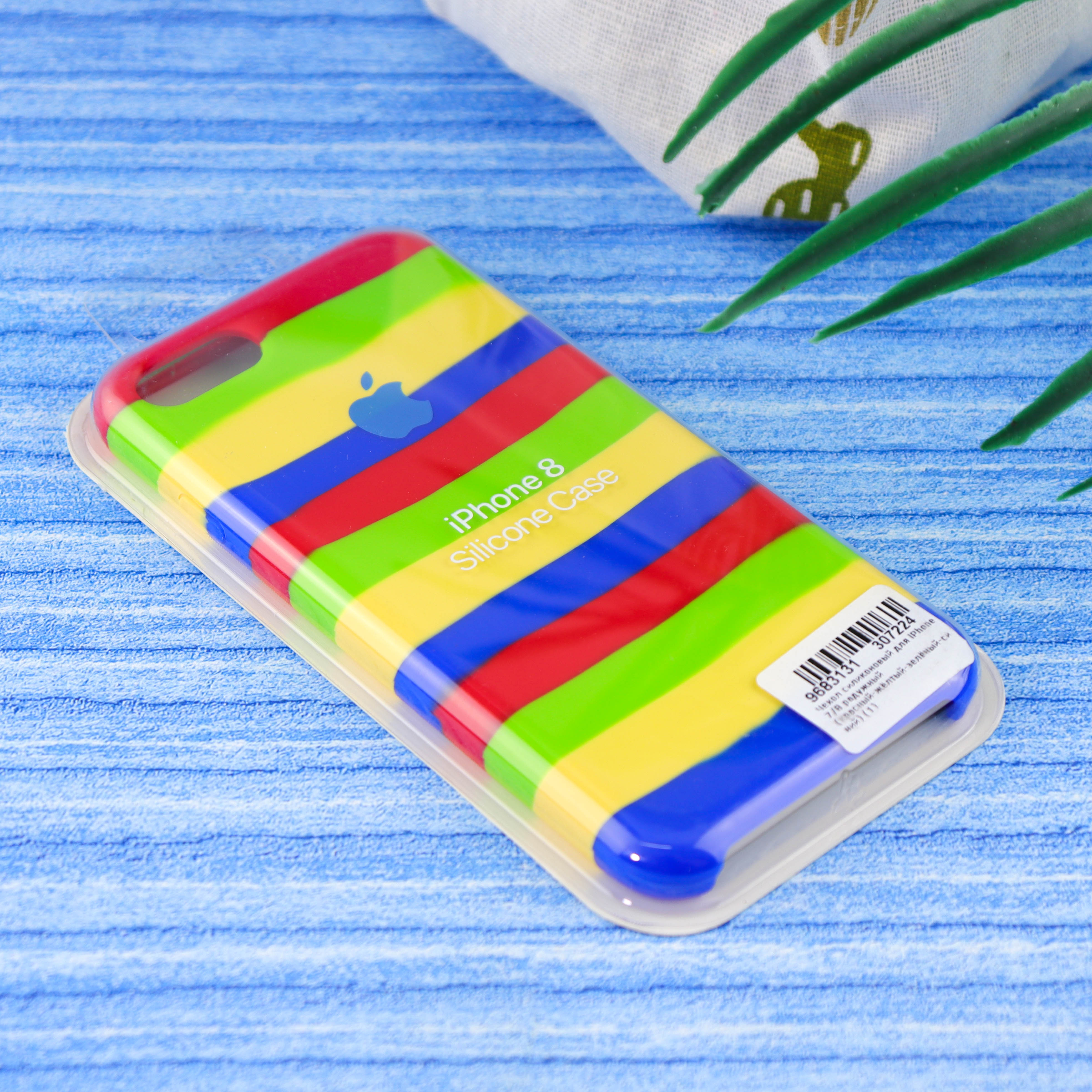 Чехол силиконовый для iPhone 7/8 радужный (красный-жёлтый-зелёный-синий) (1)