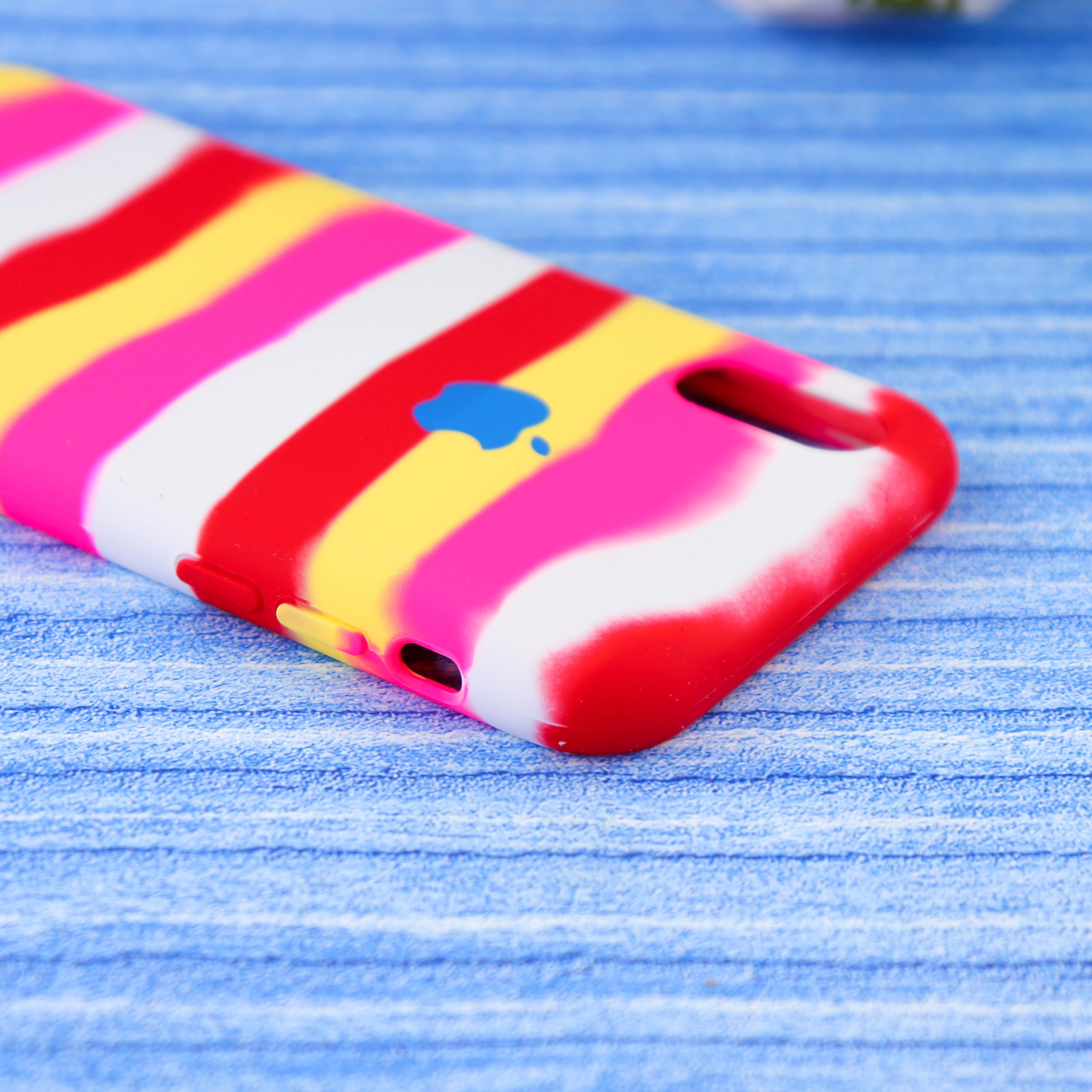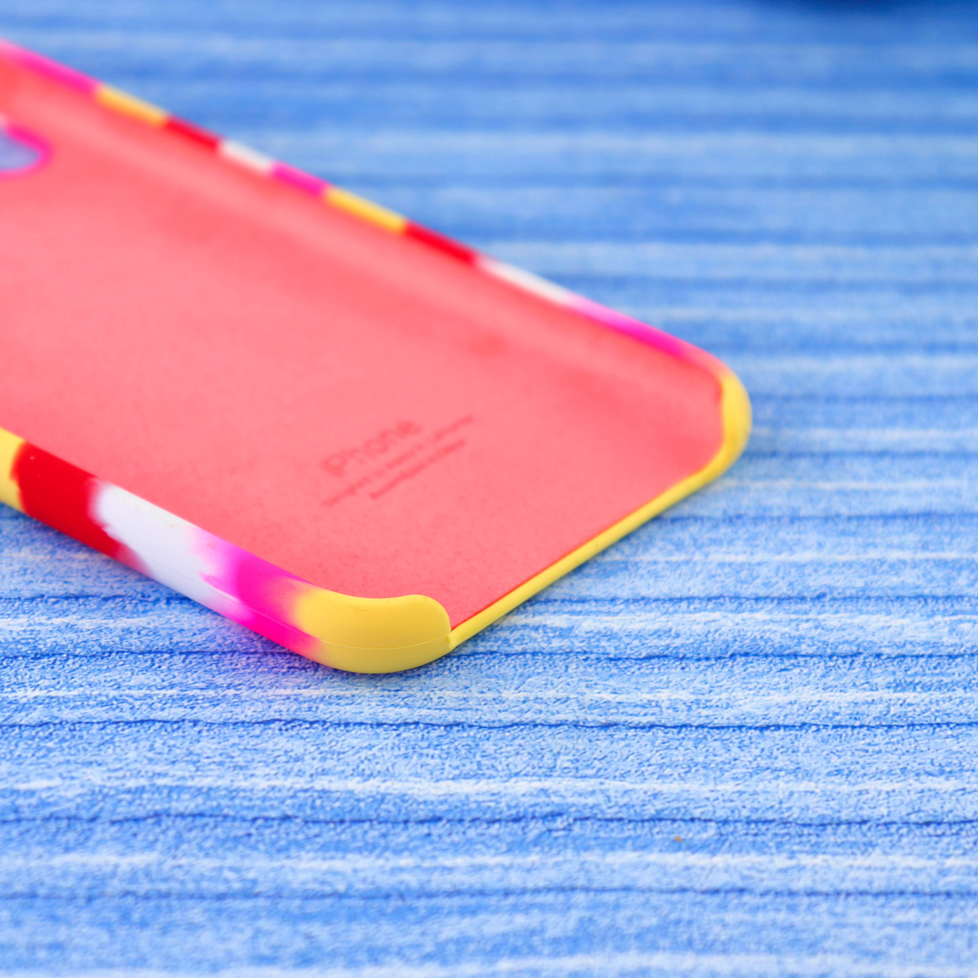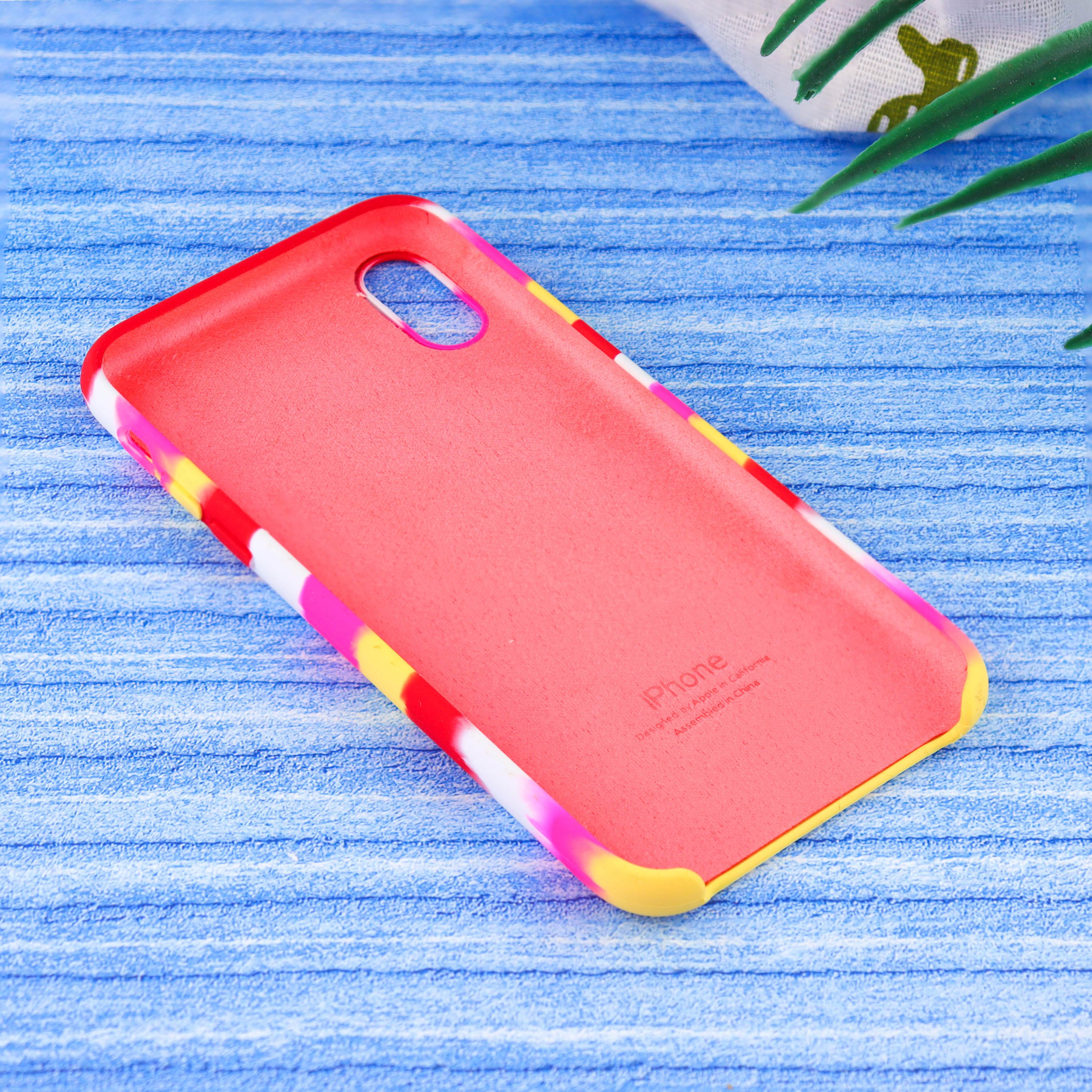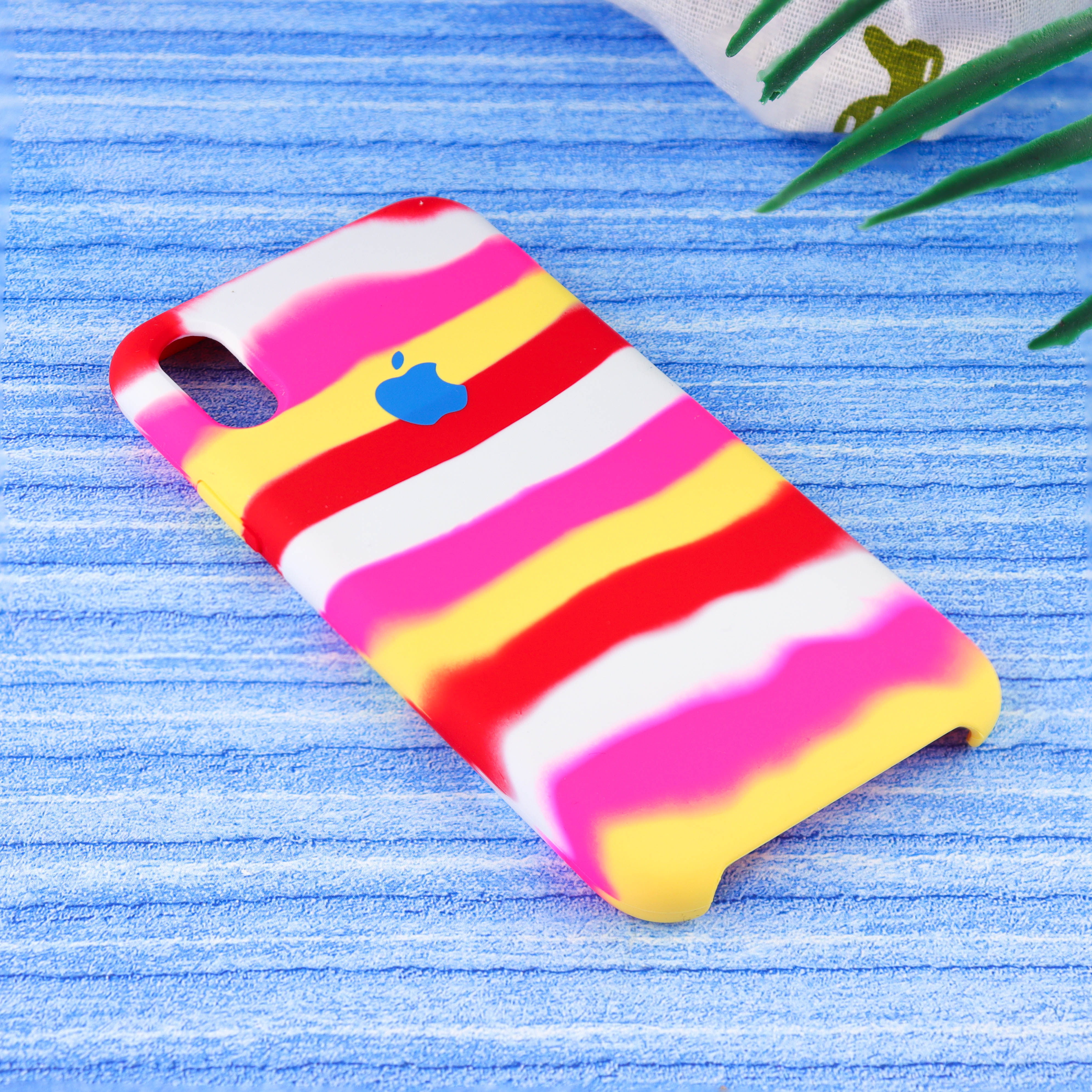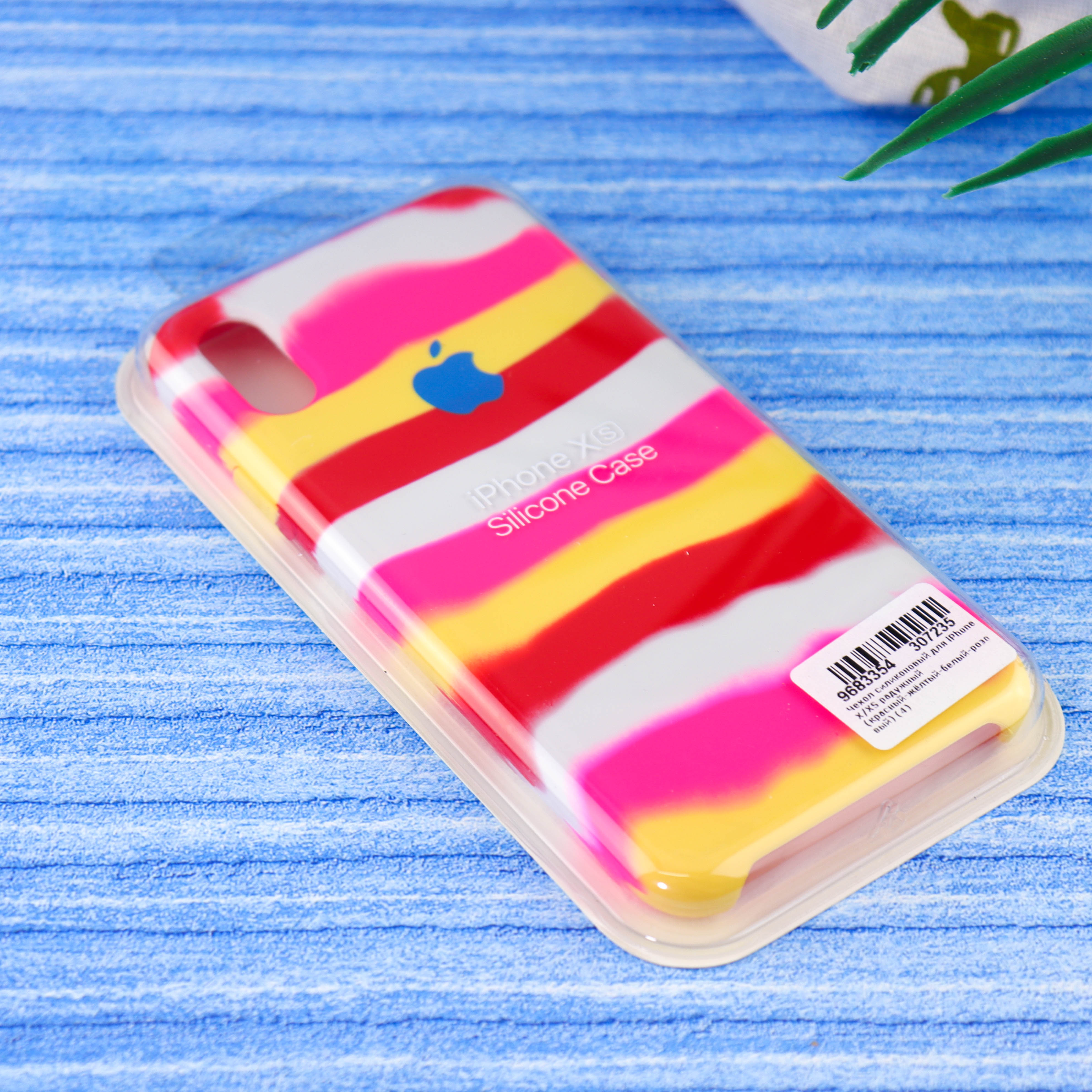 Чехол силиконовый для iPhone X/XS радужный (красный-жёлтый-белый-розовый) (4)