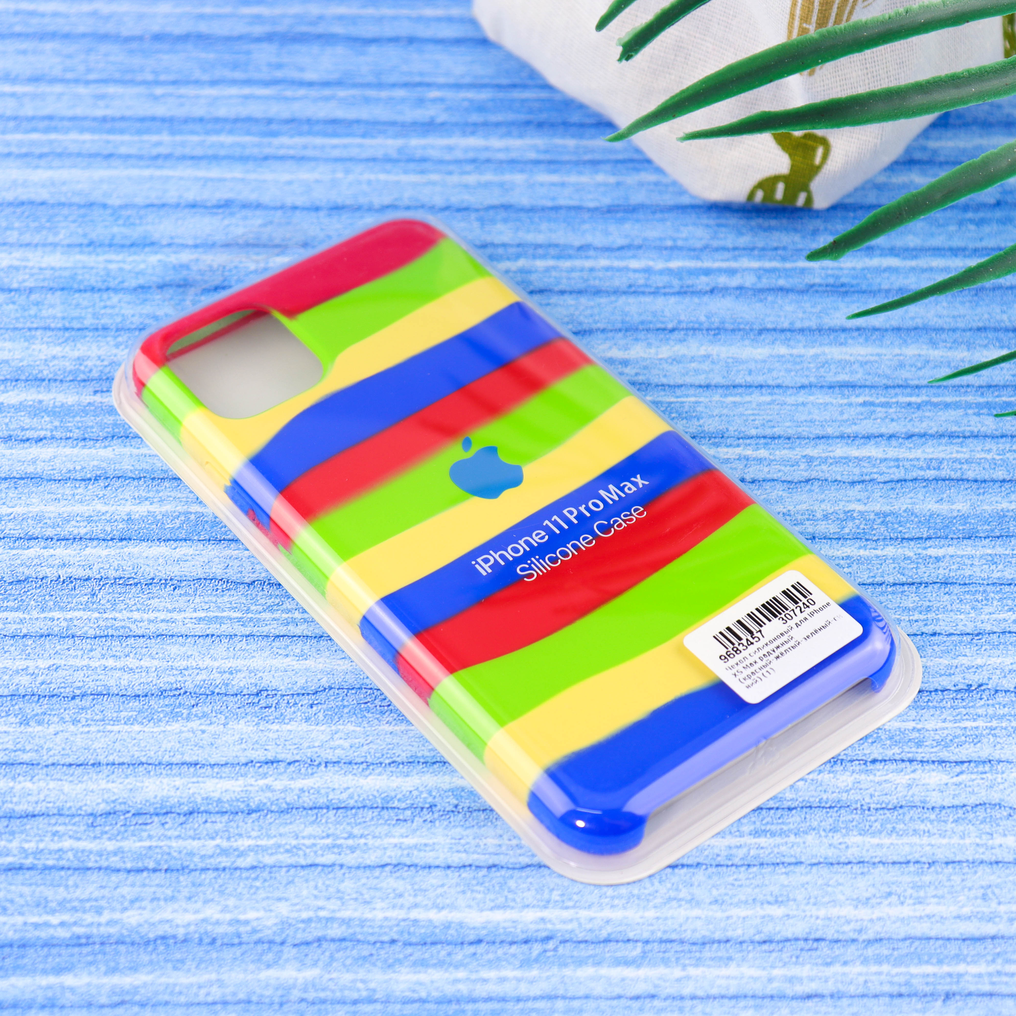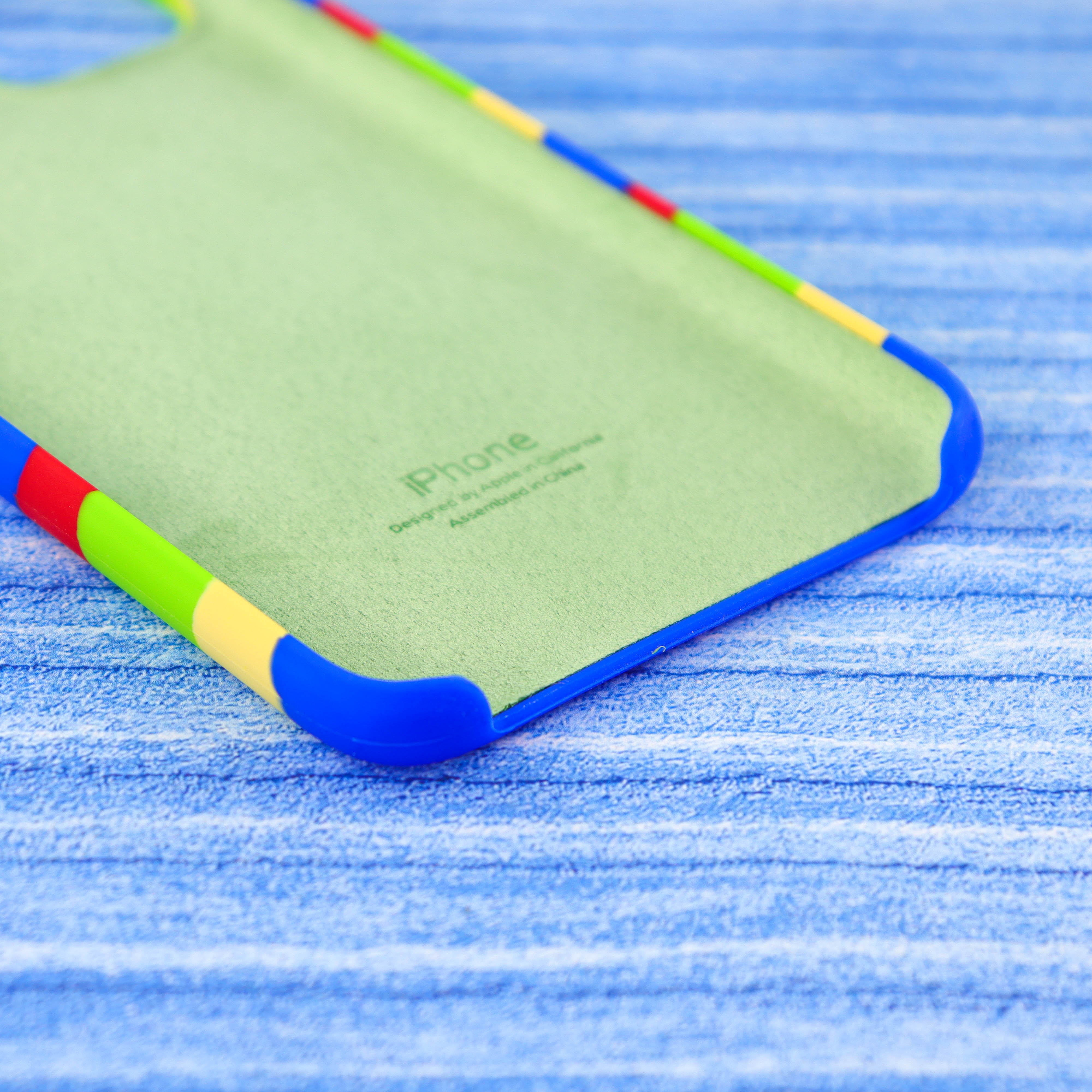 Чехол силиконовый для iPhone XS Max радужный (красный-жёлтый-зелёный-синий) (1)