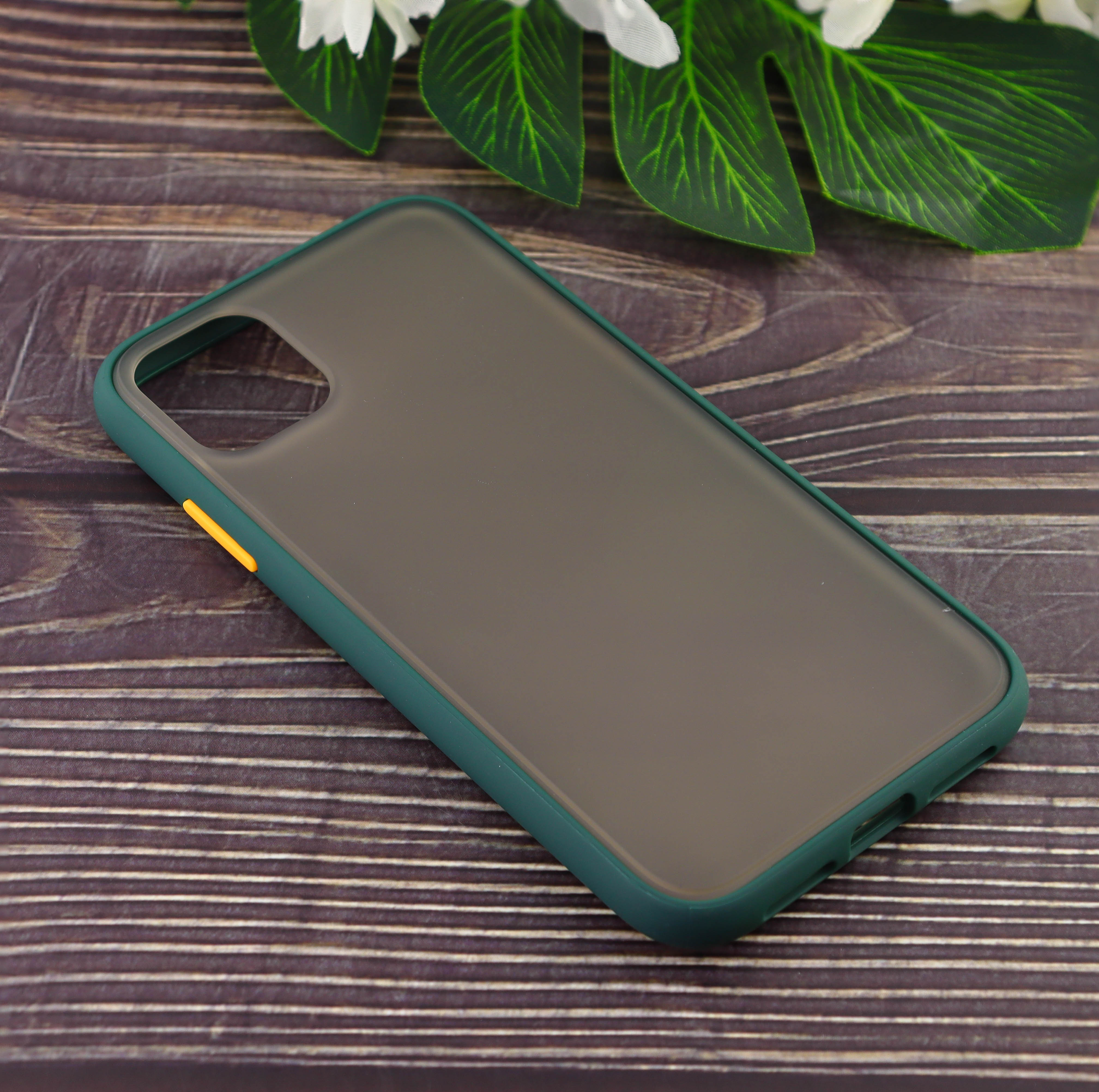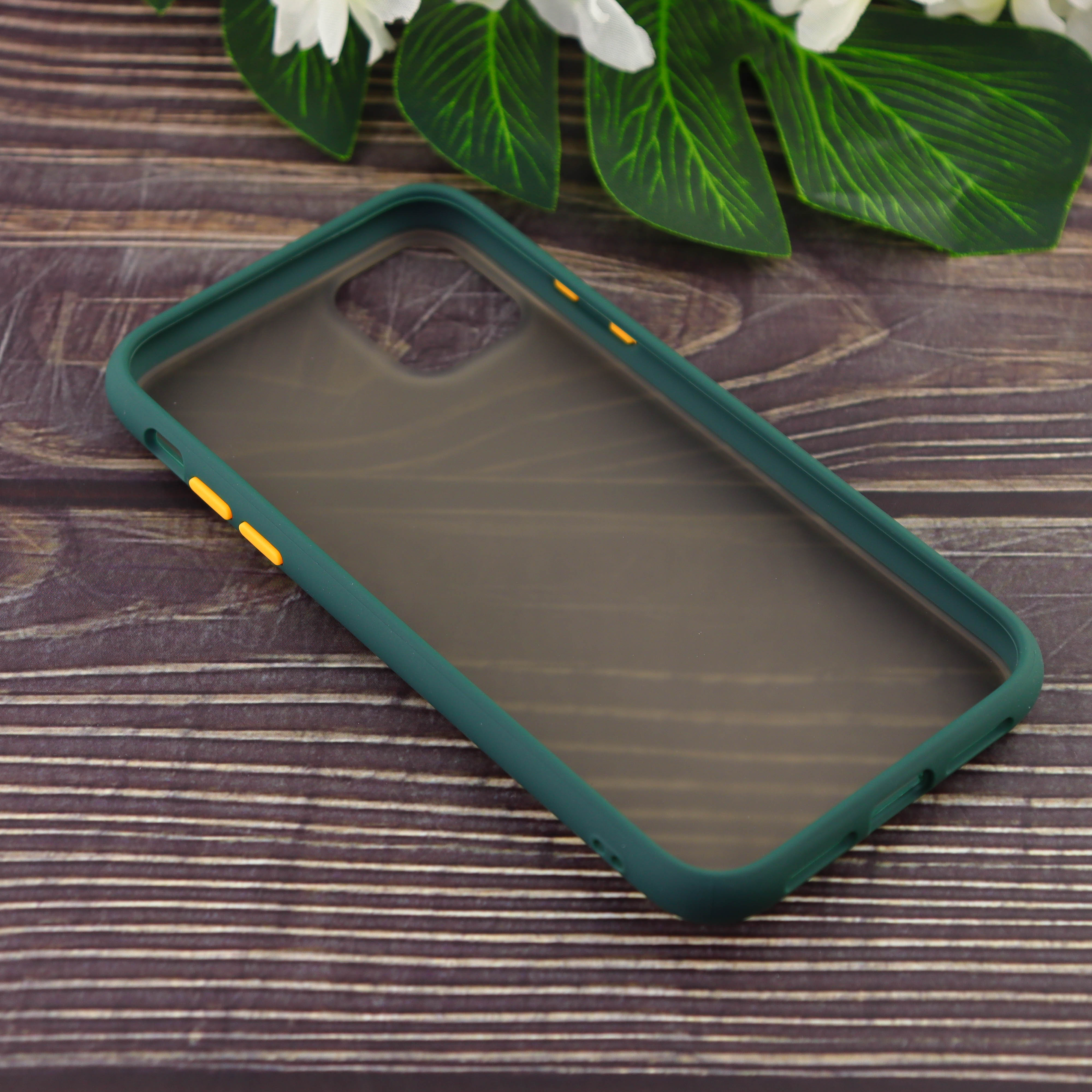 Чехол силиконовый с полупрозрачной матовой задней крышкой для iPhone 11 тёмно зелёный