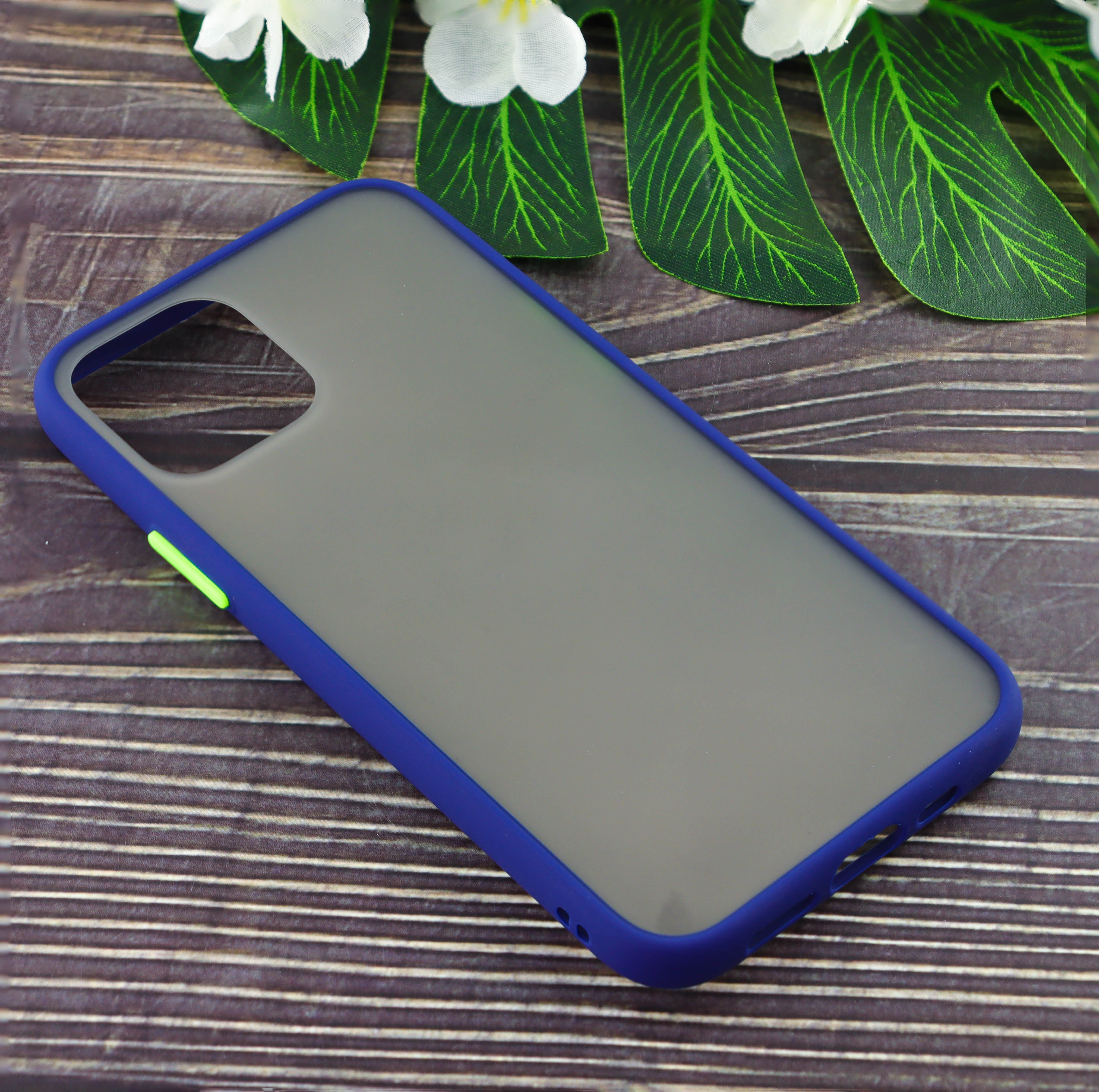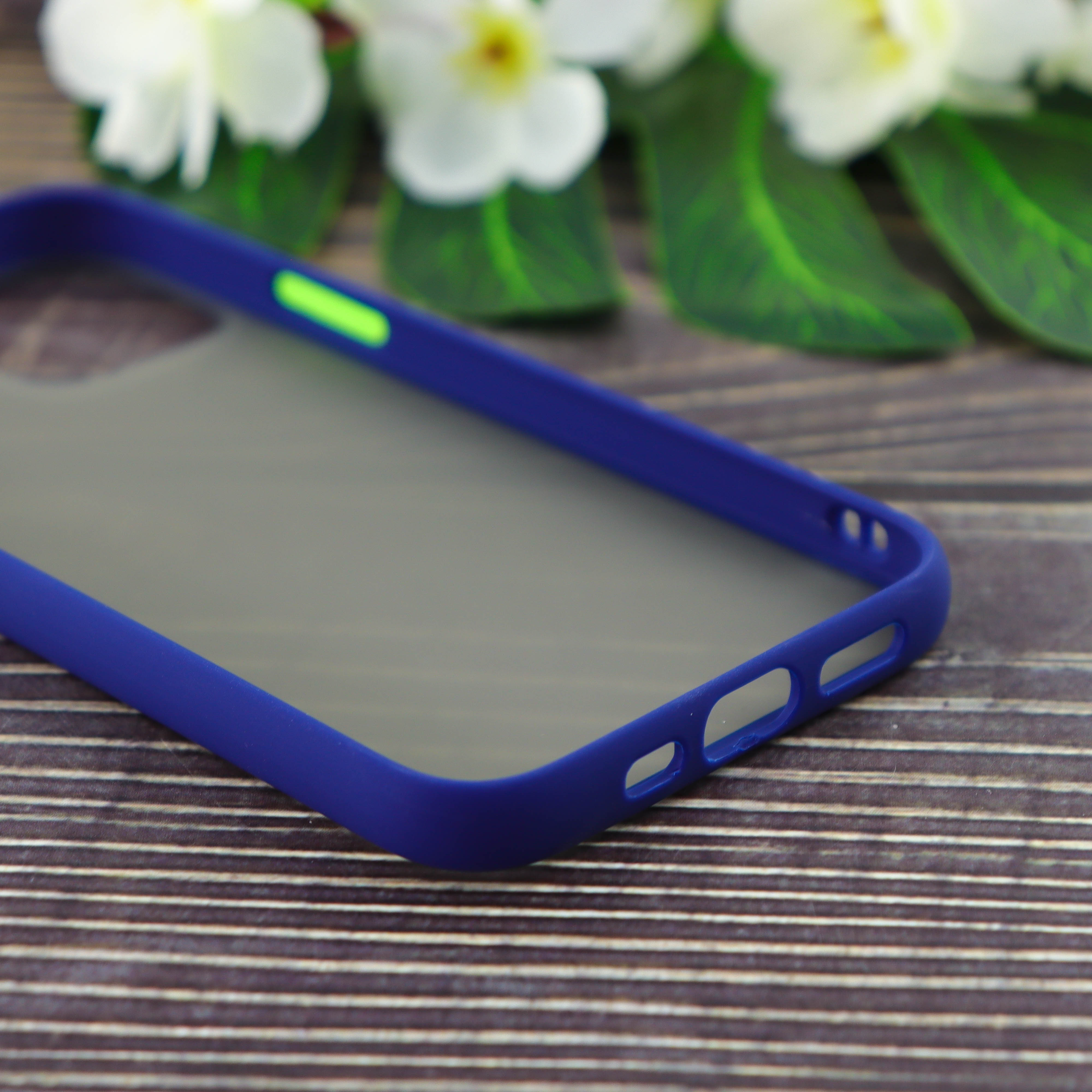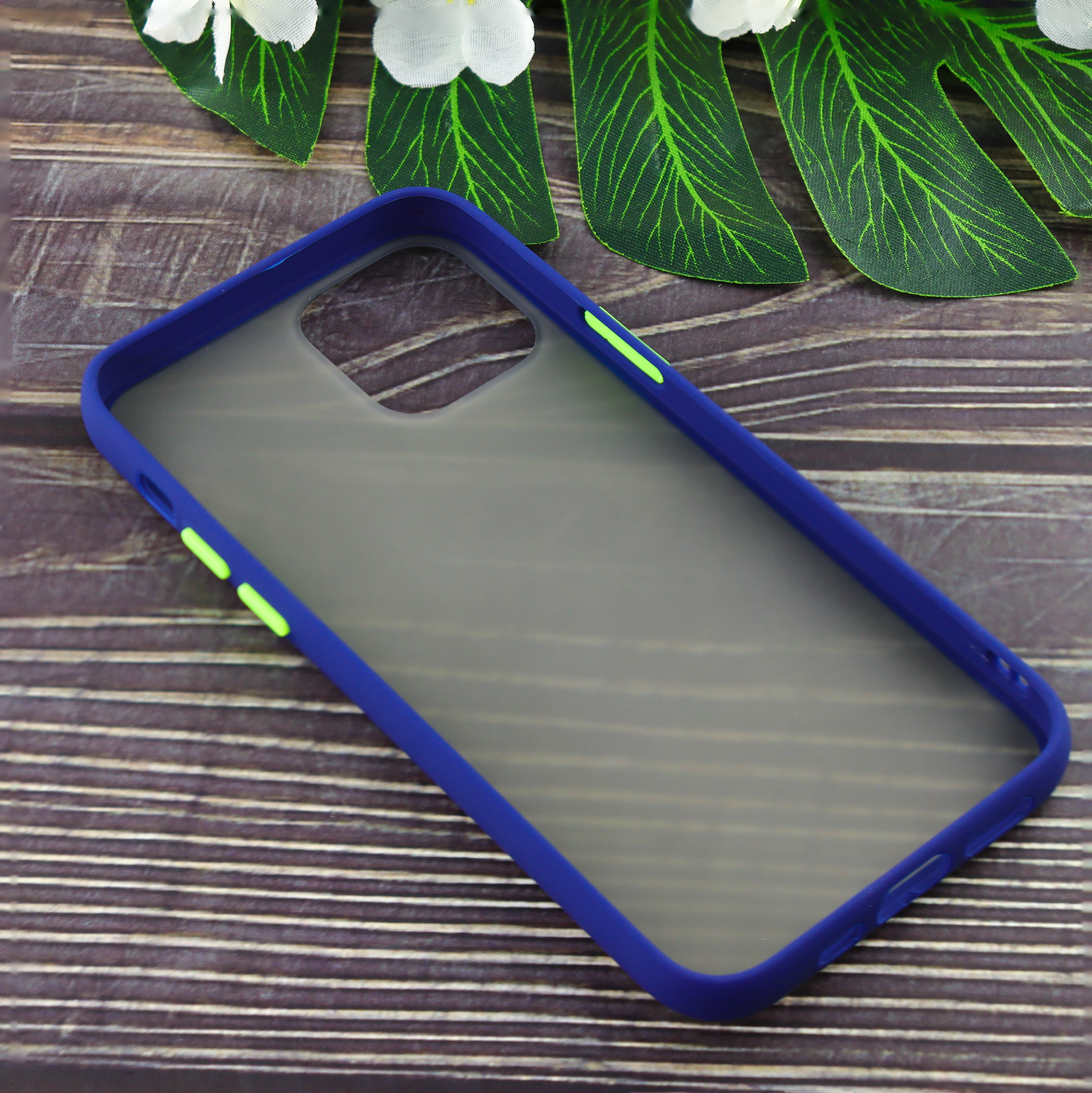 Чехол силиконовый с полупрозрачной матовой задней крышкой для iPhone 12/12 Pro синий