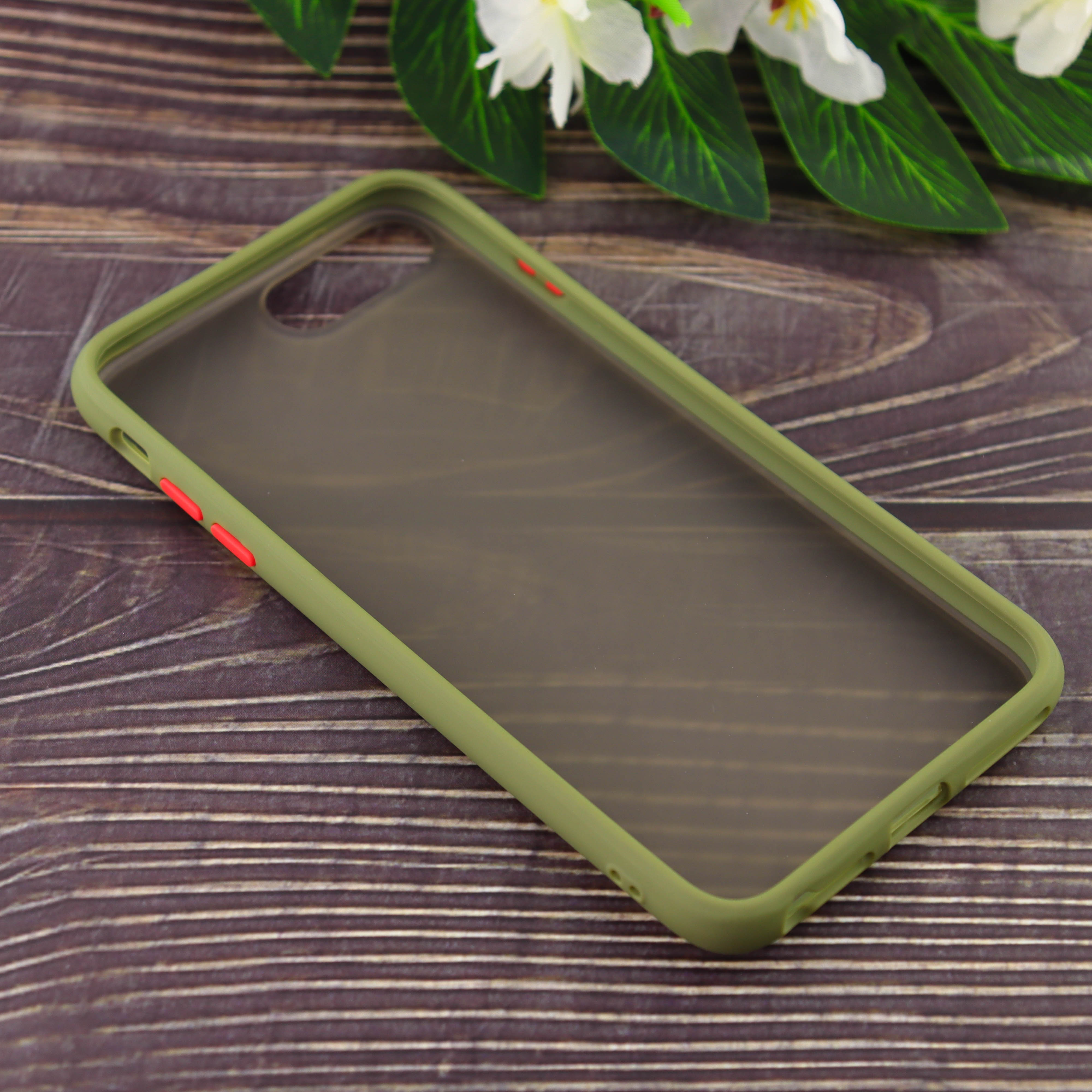 Чехол силиконовый с полупрозрачной матовой задней крышкой для iPhone 7/8 Plus оливковый