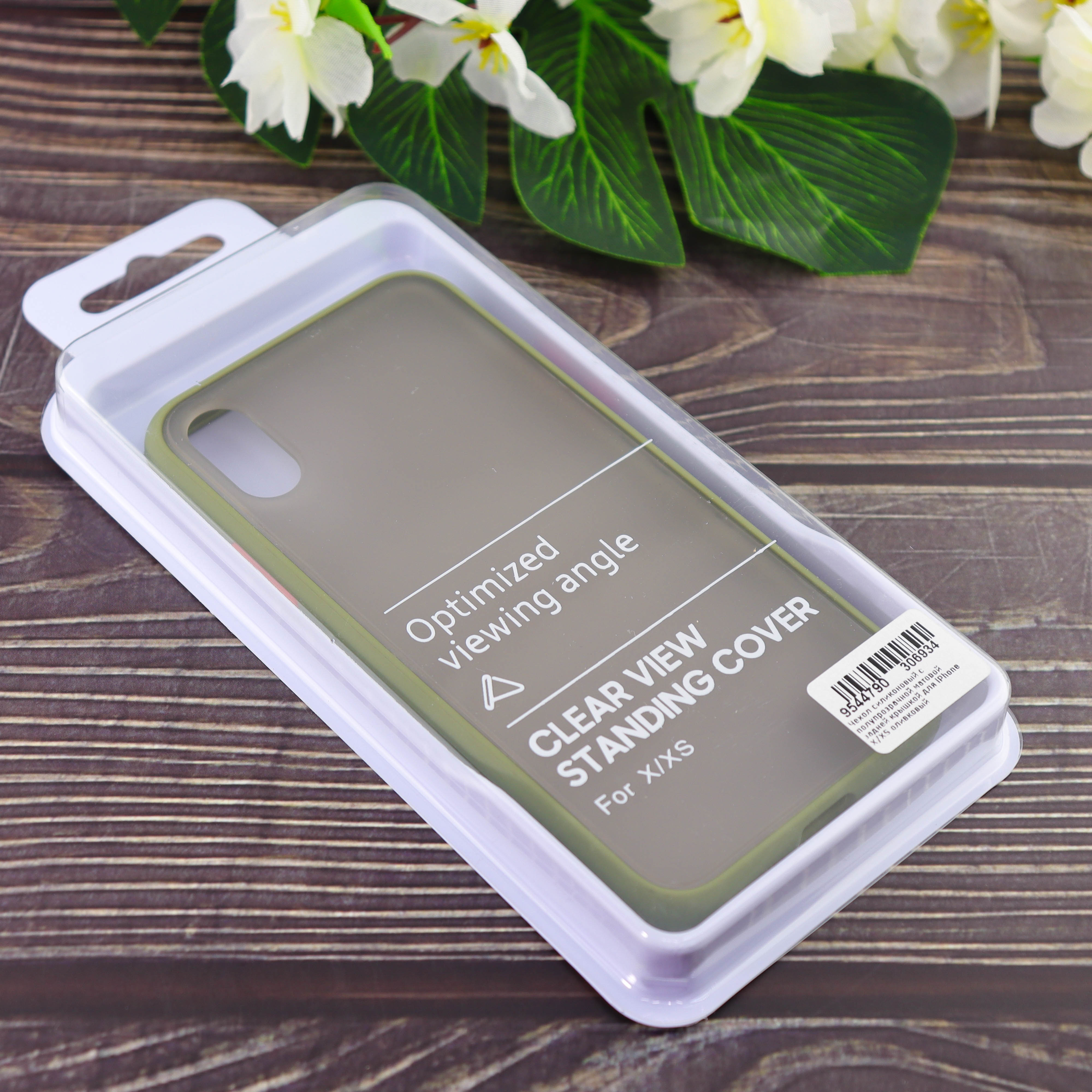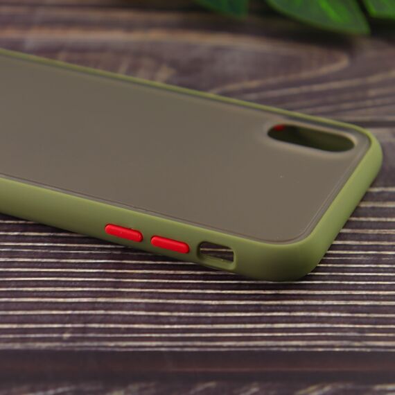 Чехол силиконовый с полупрозрачной матовой задней крышкой для iPhone X/XS оливковый