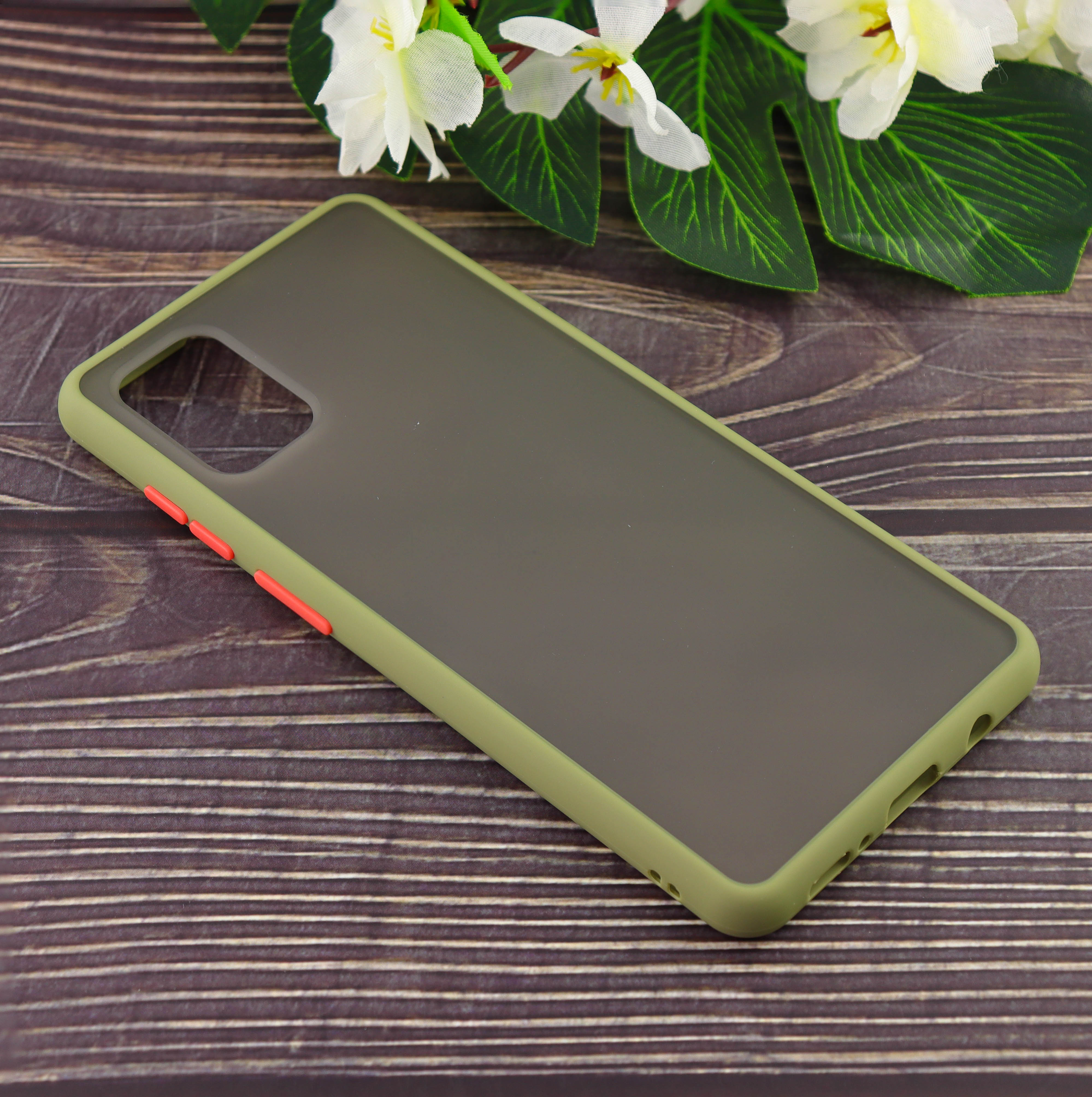 Чехол силиконовый с полупрозрачной матовой задней крышкой для Samsung A71 2020 оливковый