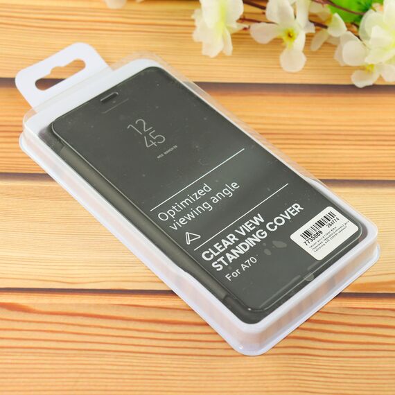 Чехол-книга Clear View /крышка-зеркало,силикон/ для Samsung A70 (2019) черный
