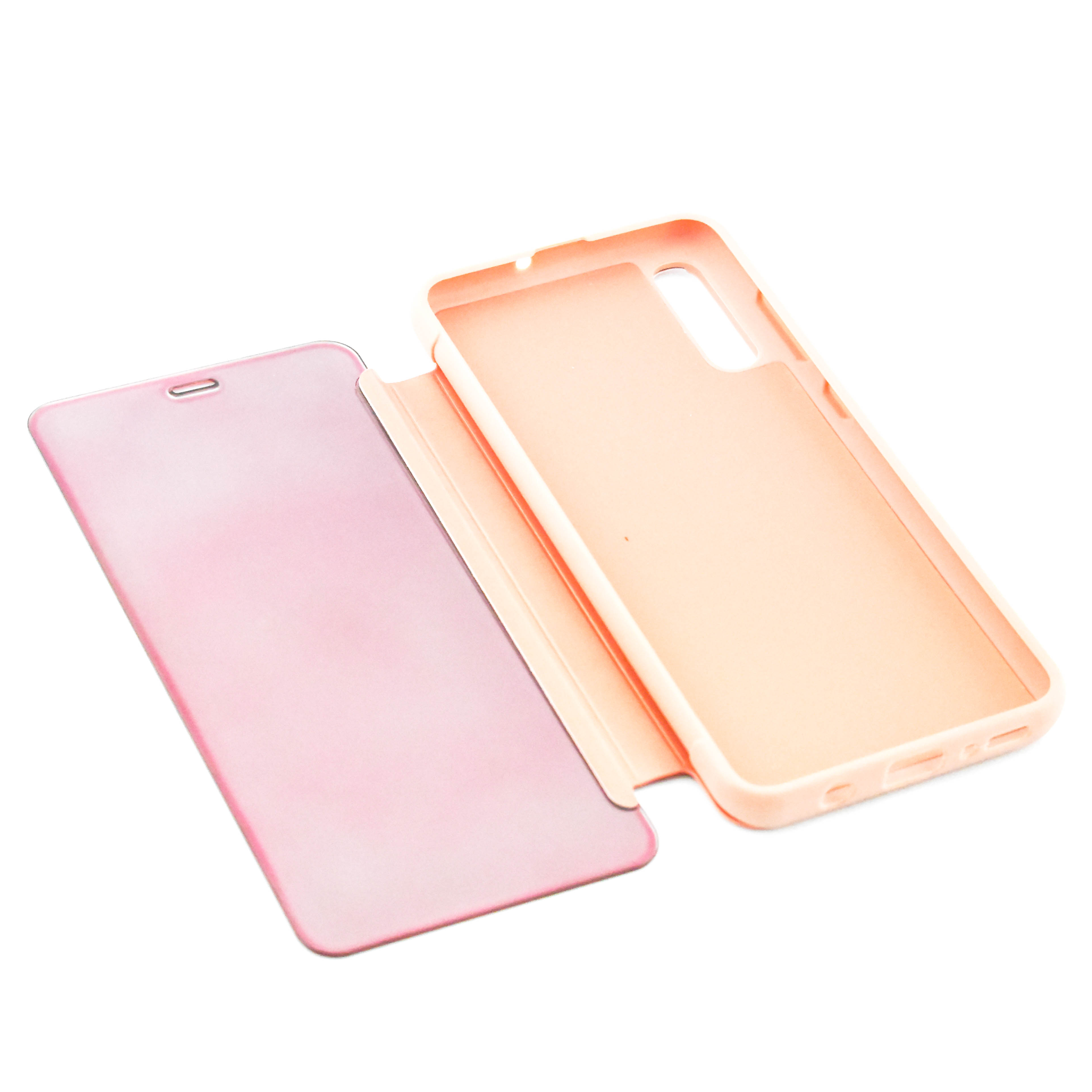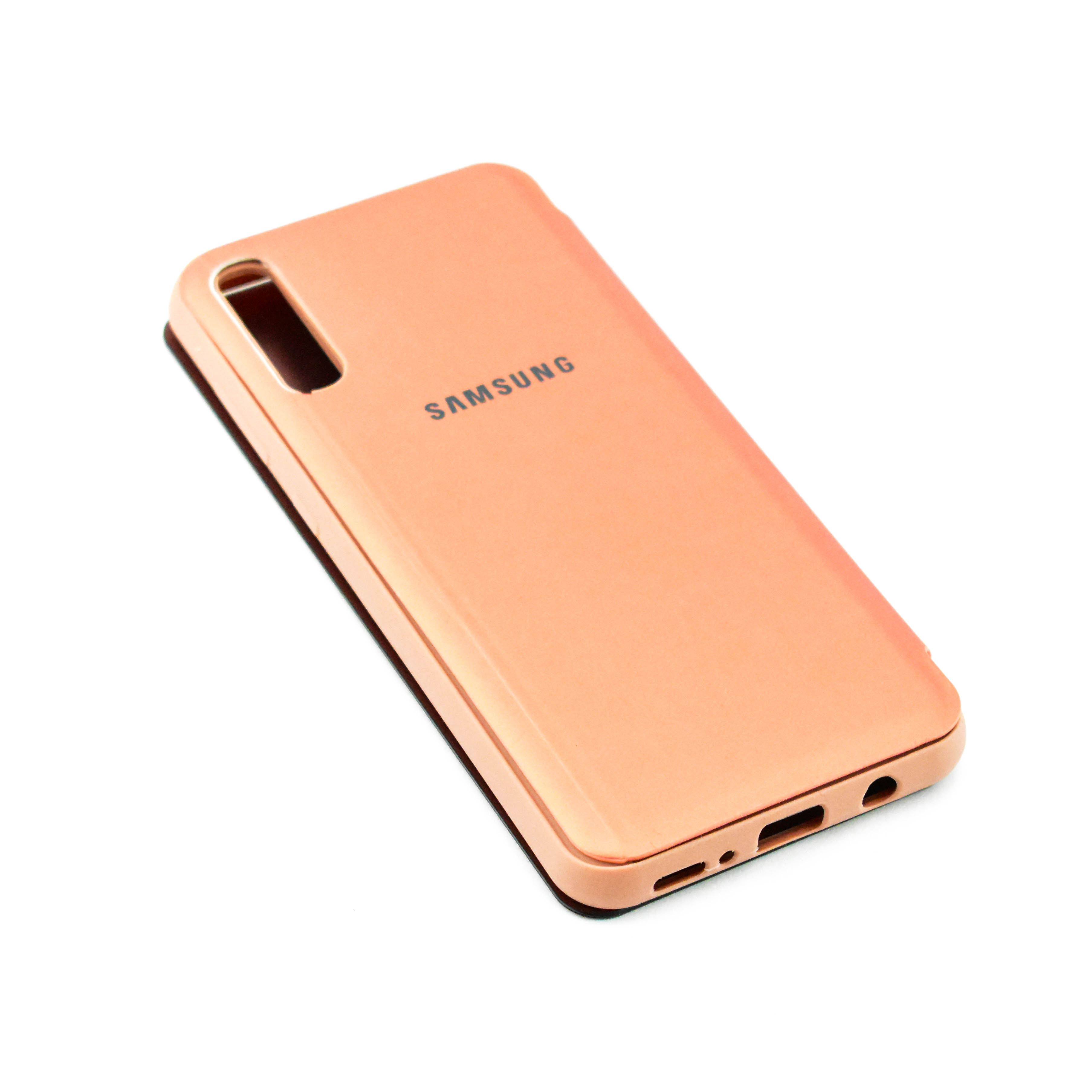 Чехол-книга Clear View /крышка-зеркало,силикон/ для Samsung A70 (2019) розовое-золото