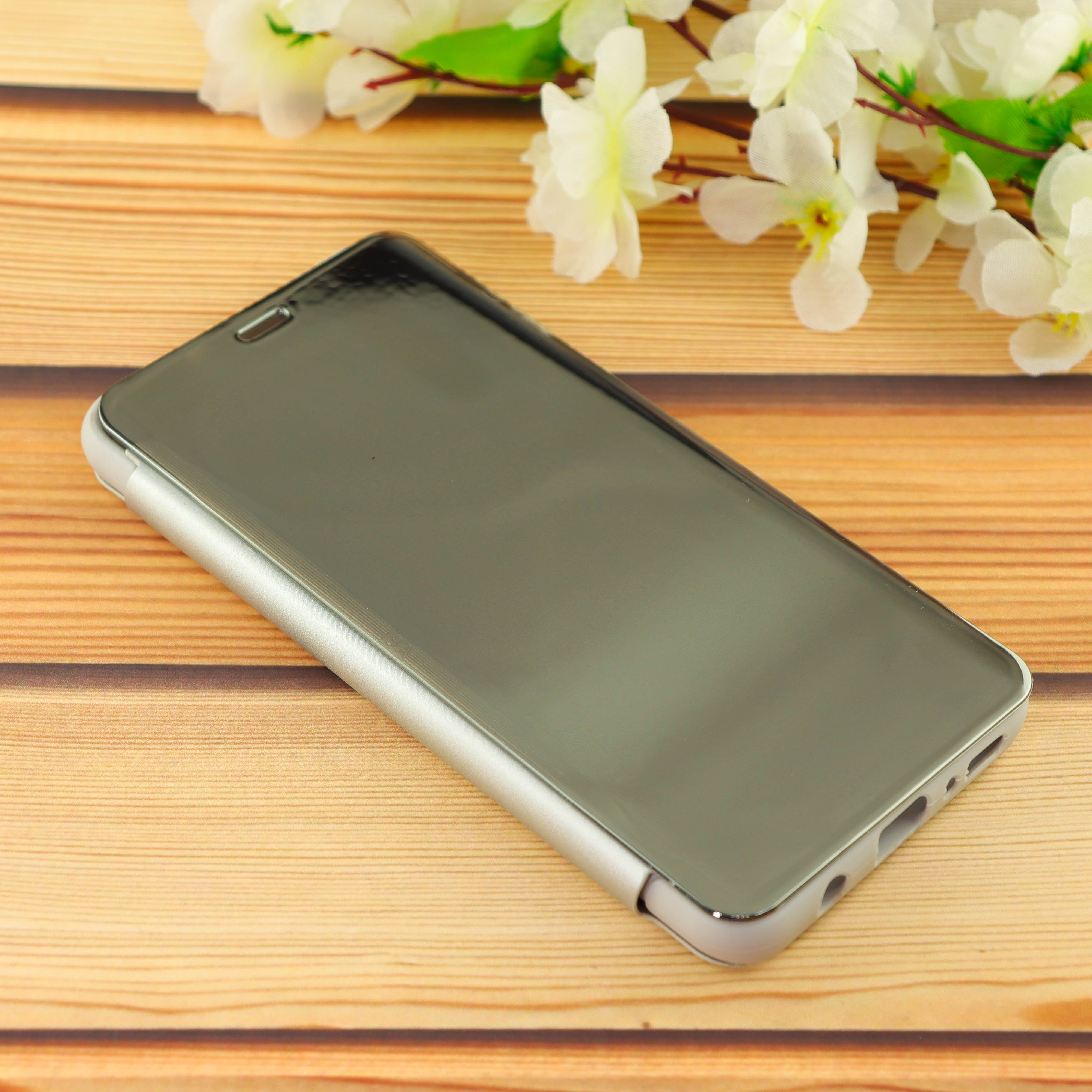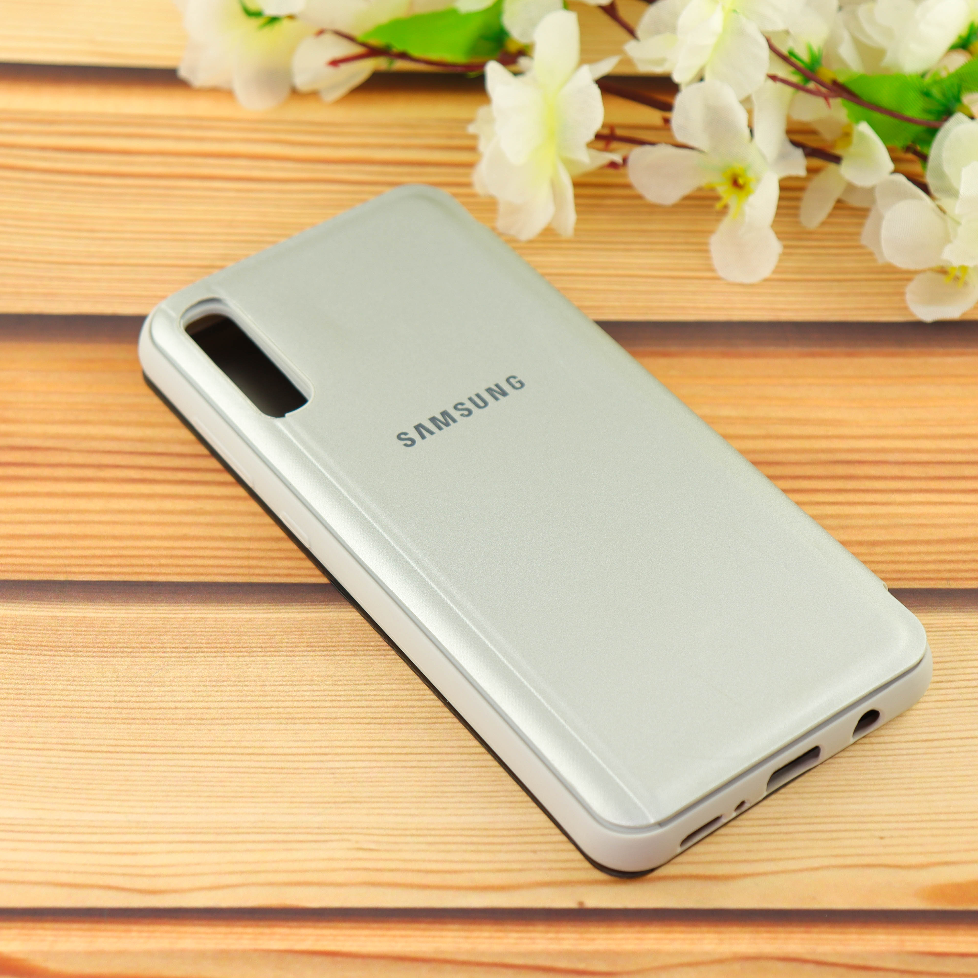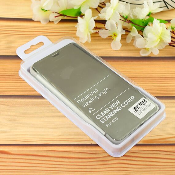 Чехол-книга Clear View /крышка-зеркало,силикон/ для Samsung A70 (2019) серебро
