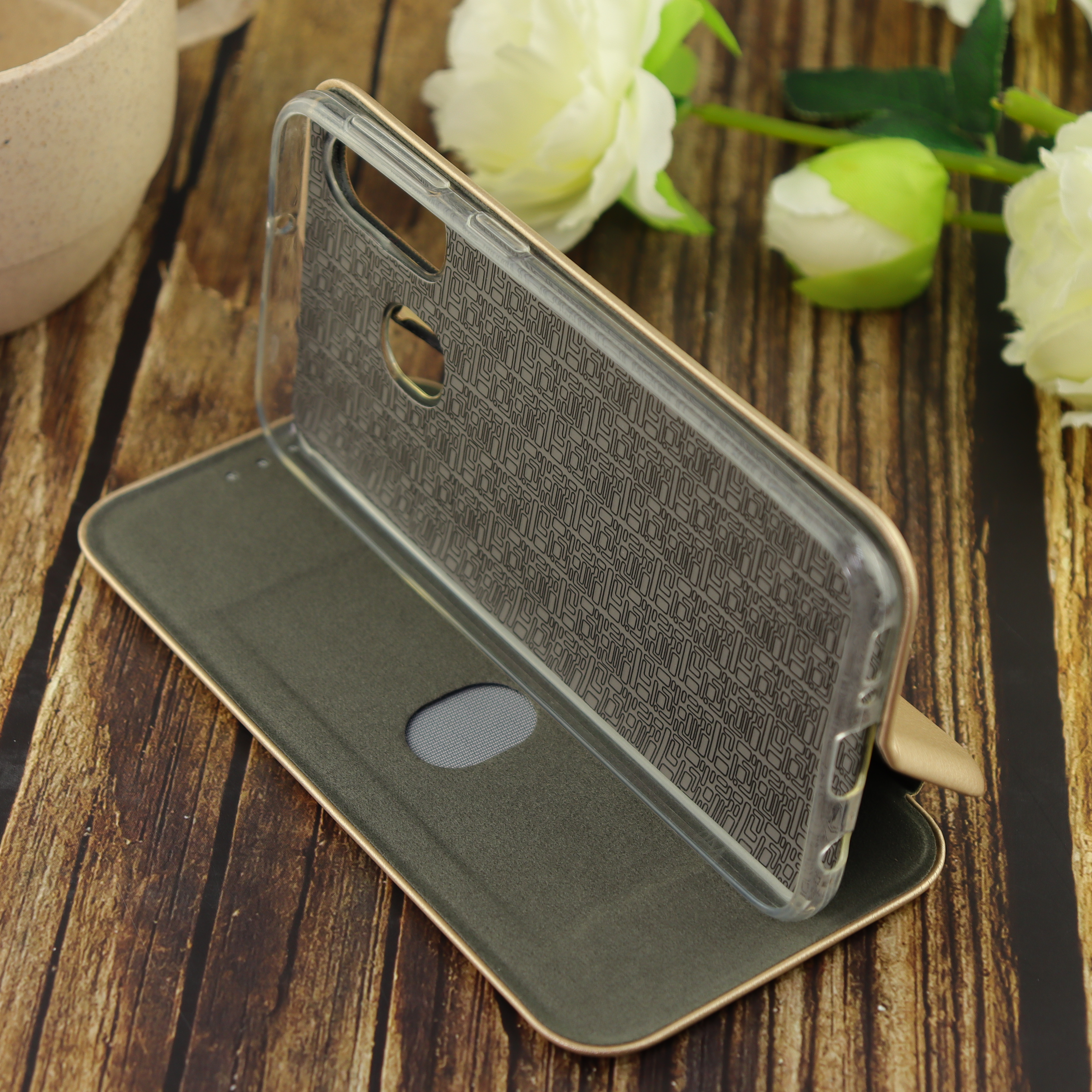 Чехол-книга для Samsung A405 (2019)/отдел под пластик.карту,силикон/ золото