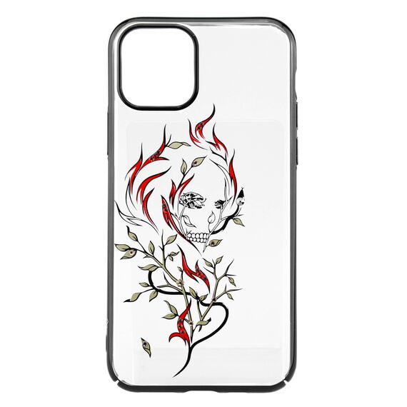 Чехол-накладка Kingxbar со стразами Swarovski для iPhone 11 Pro череп с цветами (чёрный)