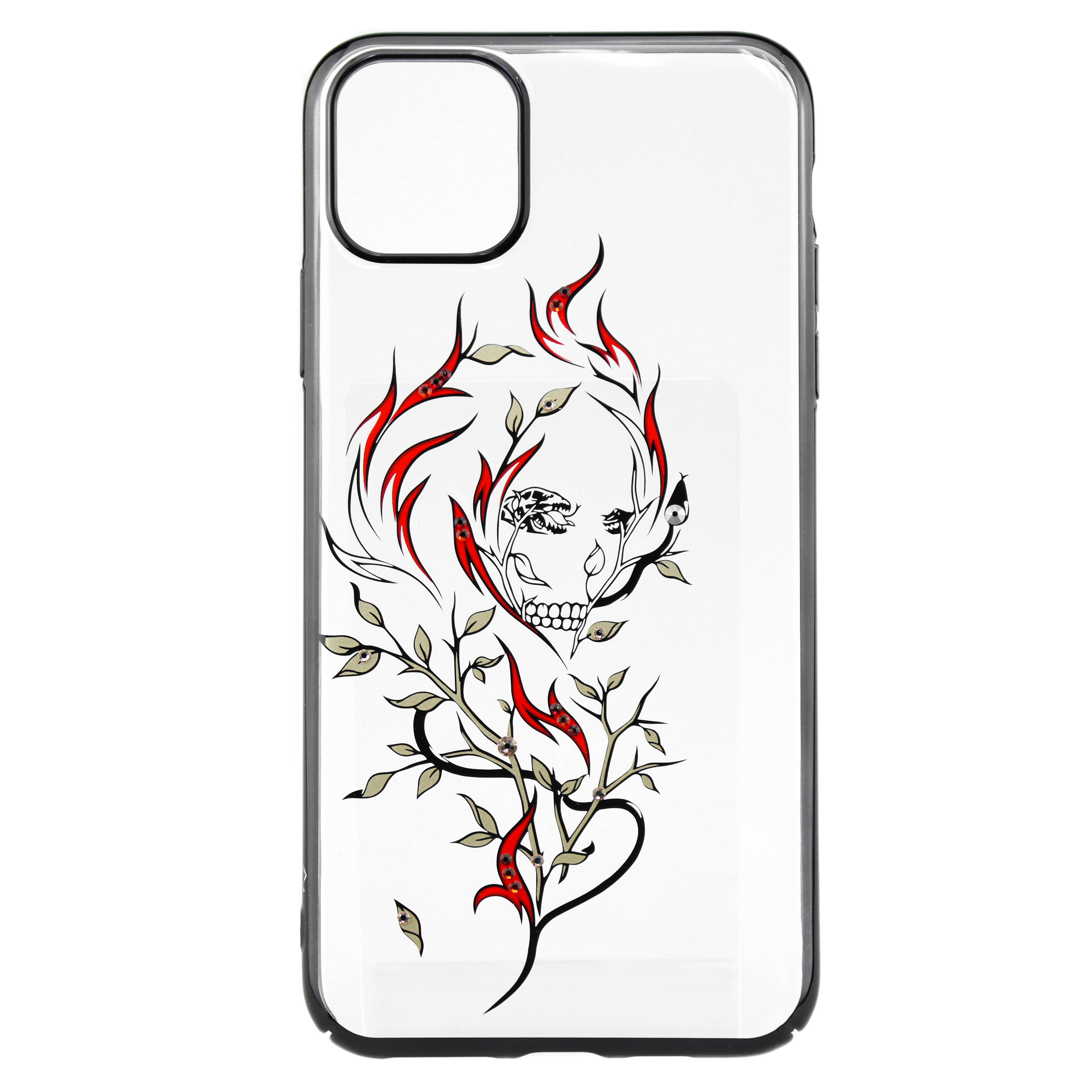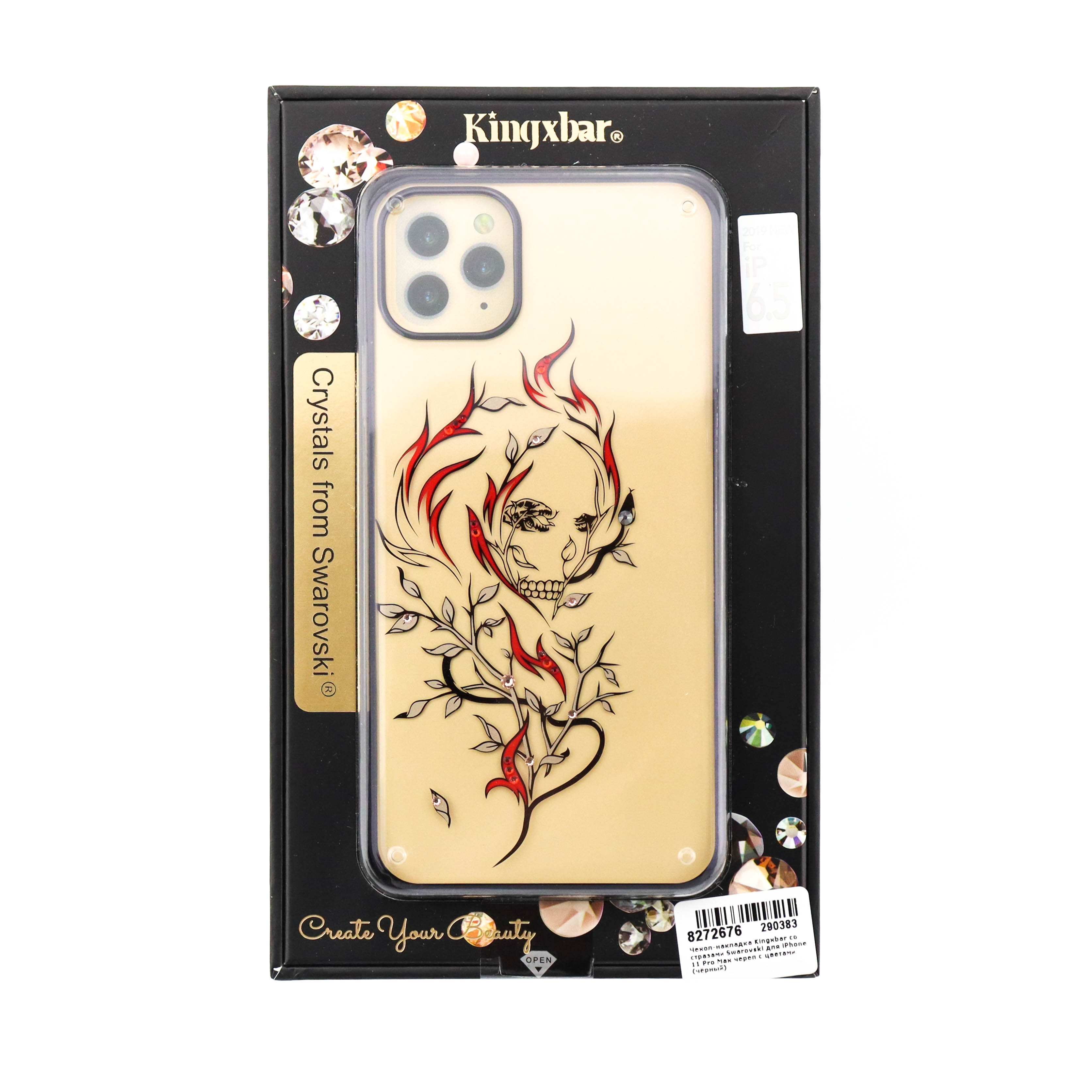 Чехол-накладка Kingxbar со стразами Swarovski для iPhone 11 Pro Max череп с цветами (чёрный)