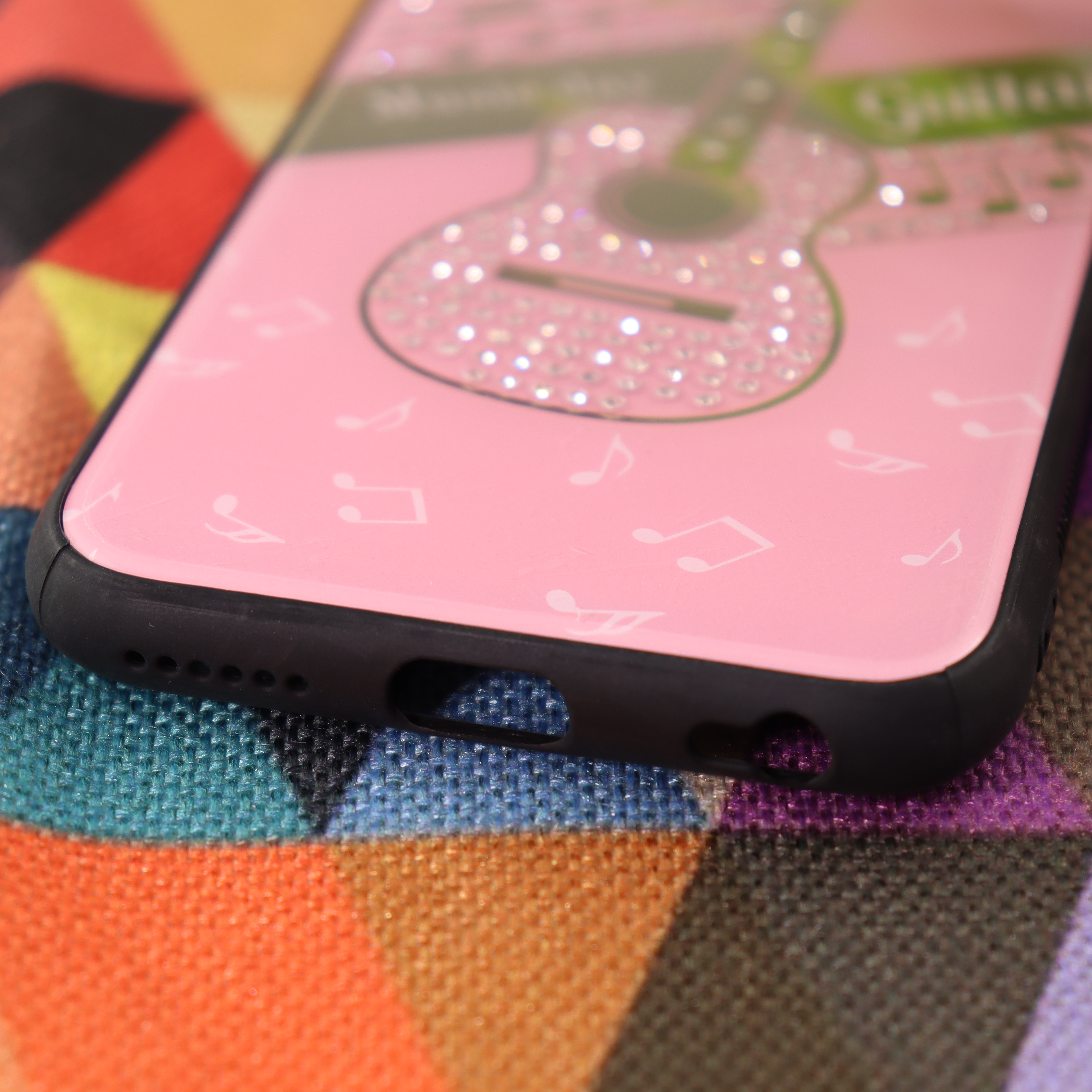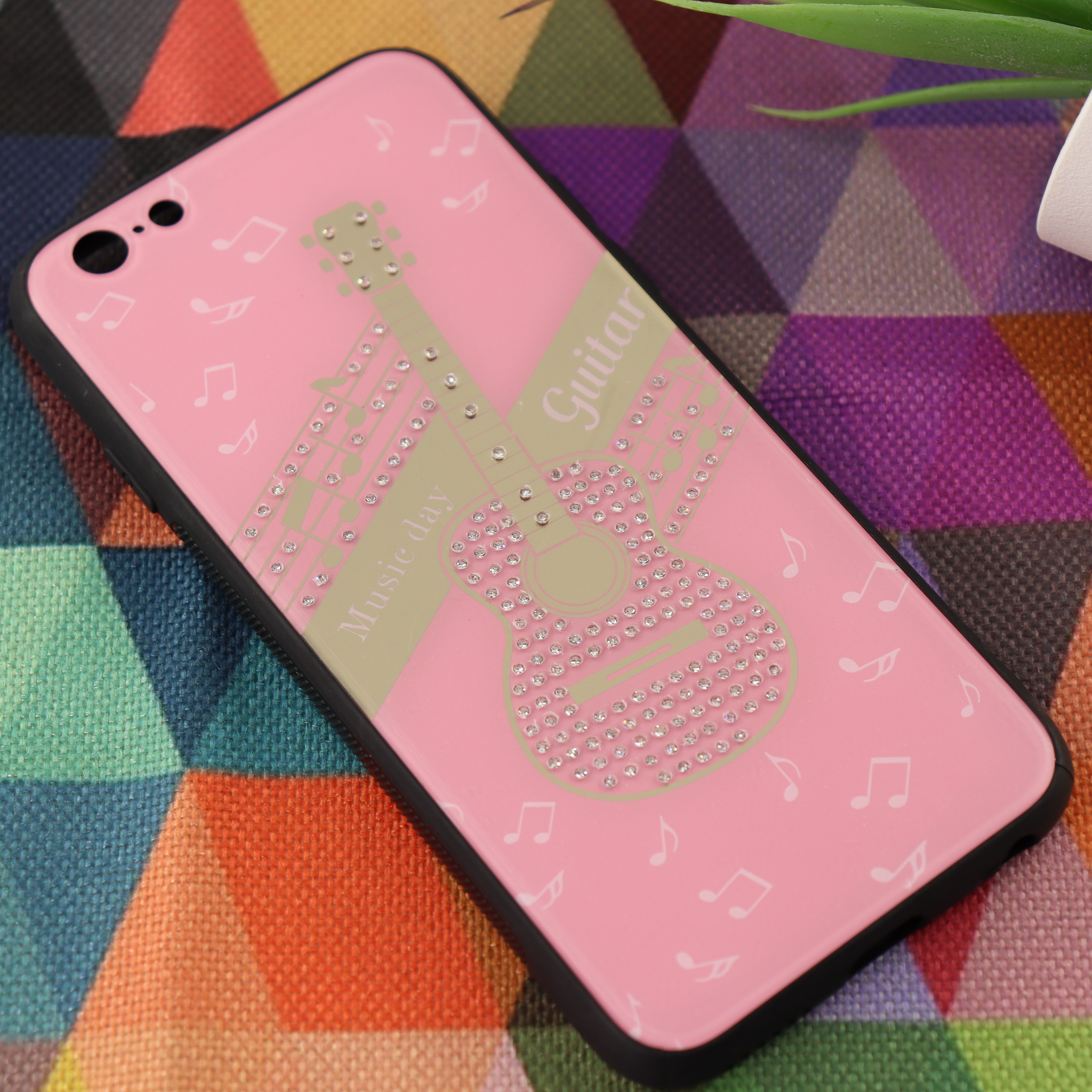 Чехол Оргстекло Стразы для iPhone 6/6S гитара розовый